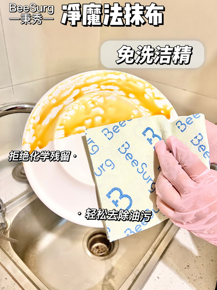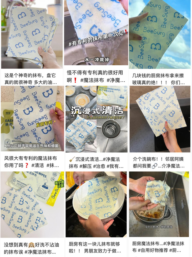 对比普通抹布:降维打击,谁用谁夸❗ 普通抹布需要搭配洗洁精,费钱又费力 用3天就发臭滋生细菌 擦完还掉毛留痕造成二次污染 频繁更换反而隐性成本高 而秉秀净魔法抹布免洗洁精,一年省几百 抗菌周抛能用7-10天不发臭 不起毛不掉絮,擦完锃光瓦亮 日均几毛钱的成本 性价比直接甩普通抹布几条街!