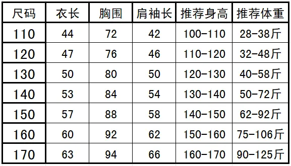 尺码110-170,现货直发