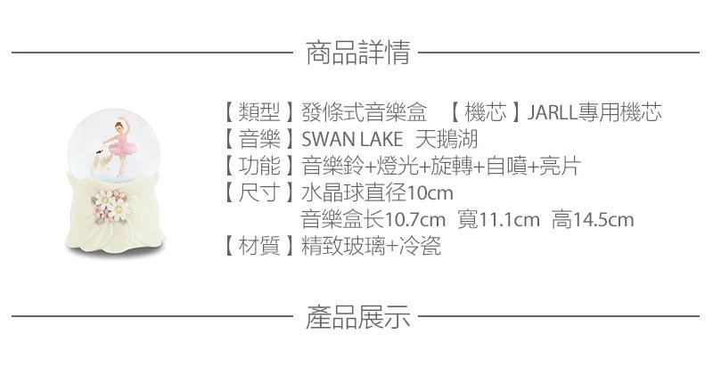 JARLL 100MM 芭蕾小公主与天鹅水球