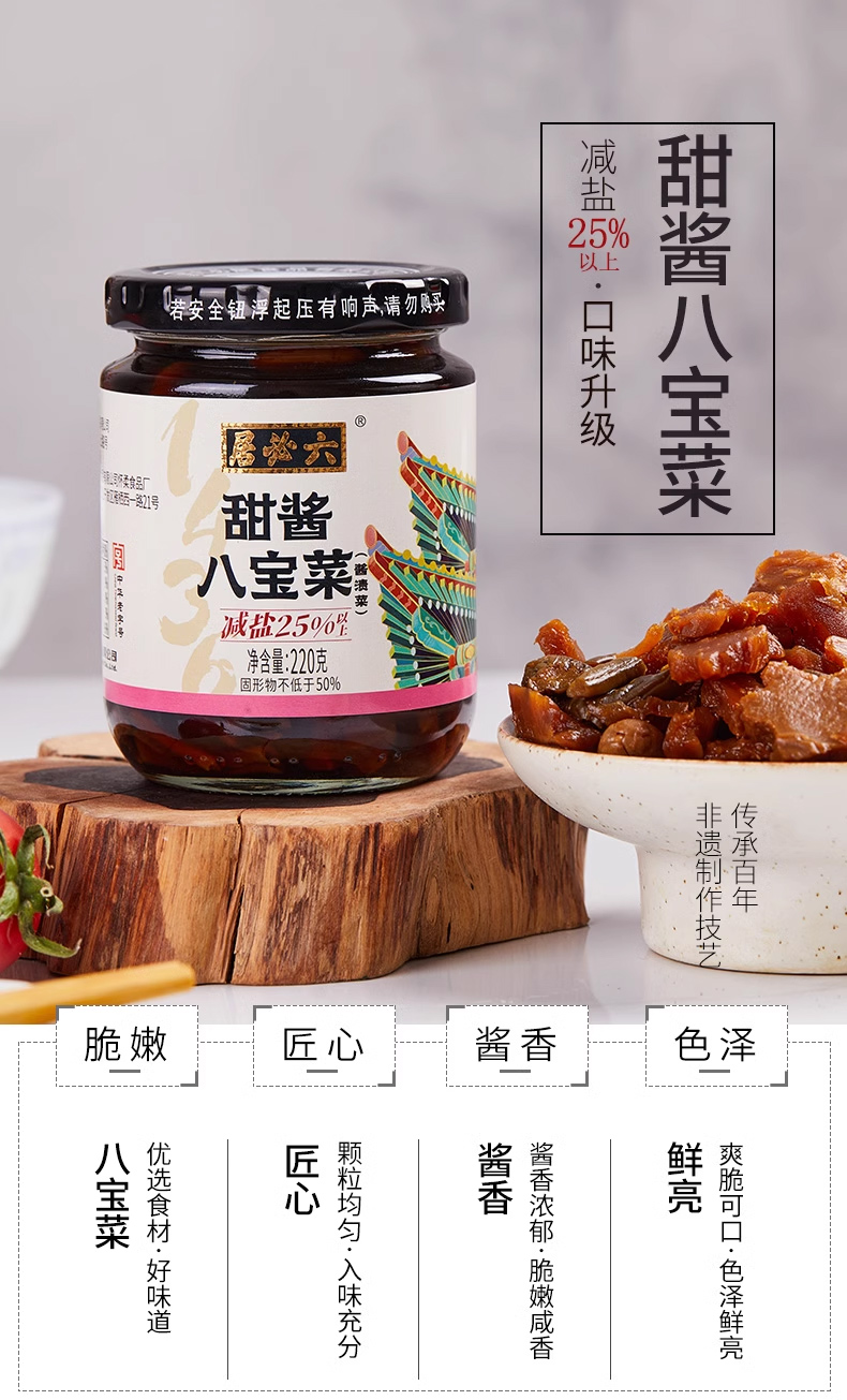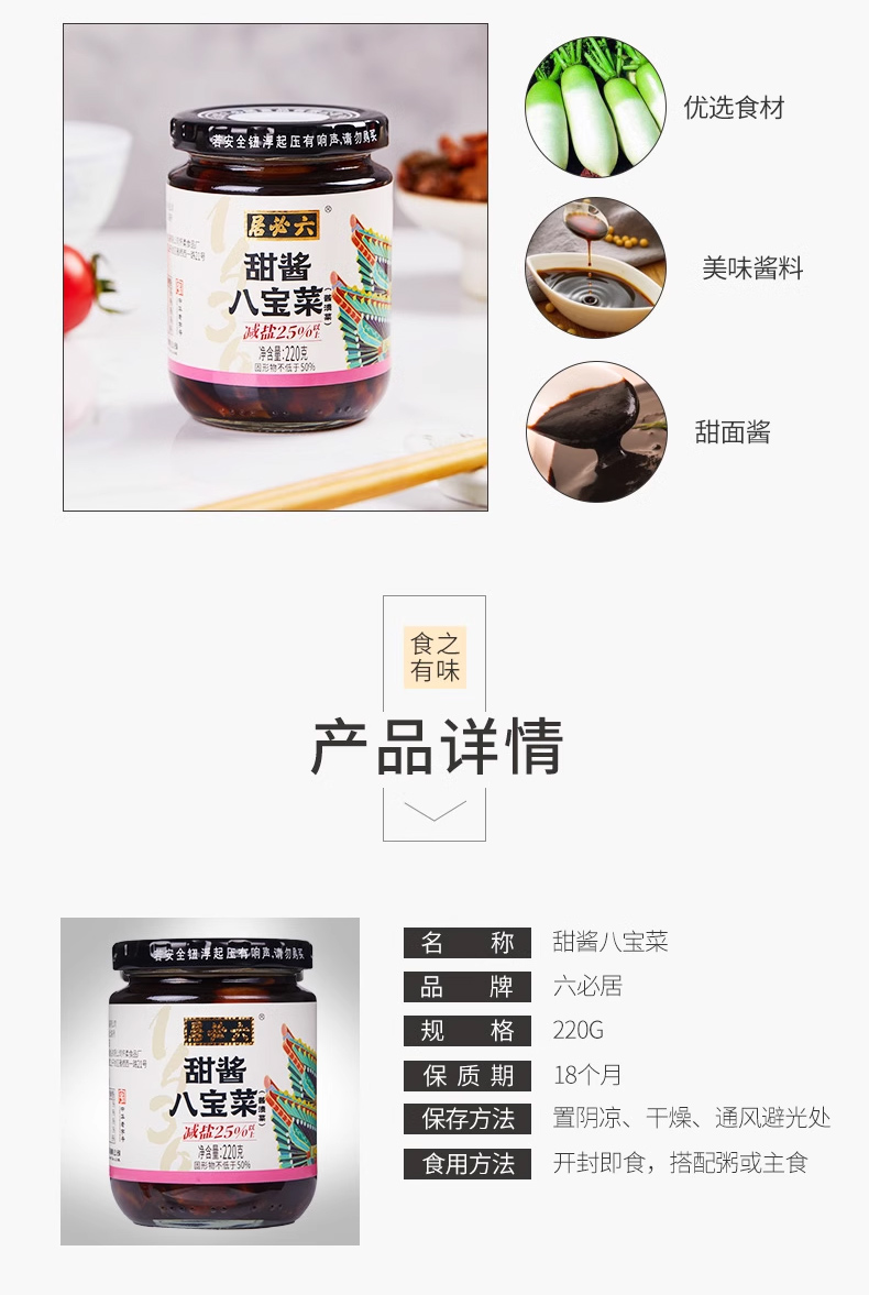 【中国农垦】六必居 甜酱八宝菜220g*4瓶