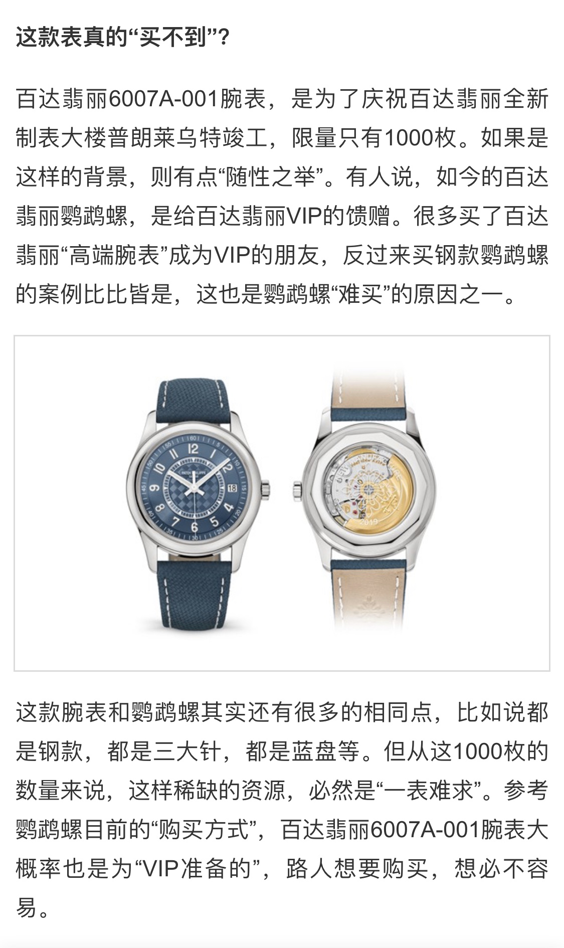 ZF优雅之作 再攀钢表新高峰 百达翡丽新品——PP Ref.6007A-001(普朗菜乌特制表大楼纪念款)