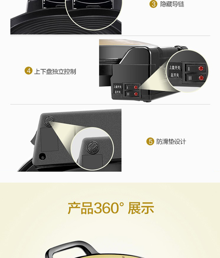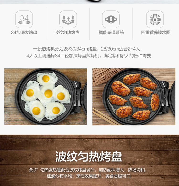美的(Midea)(509262)电饼铛家用1500W大功率多功能双面加热智能感温煎饼机加深烤盘煎烤机JHN34Q