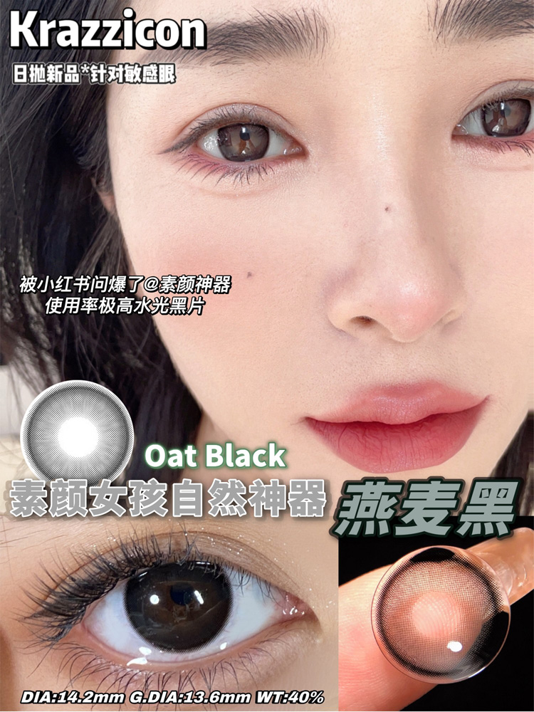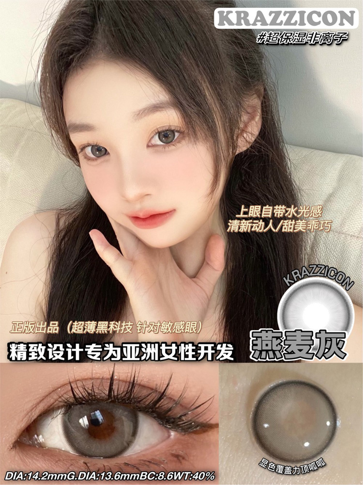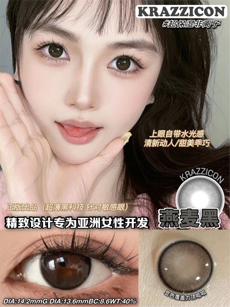 Krazzicon 日抛燕麦棕/燕麦灰/燕麦黑 「168」直径14.2mm 着色13.6mm