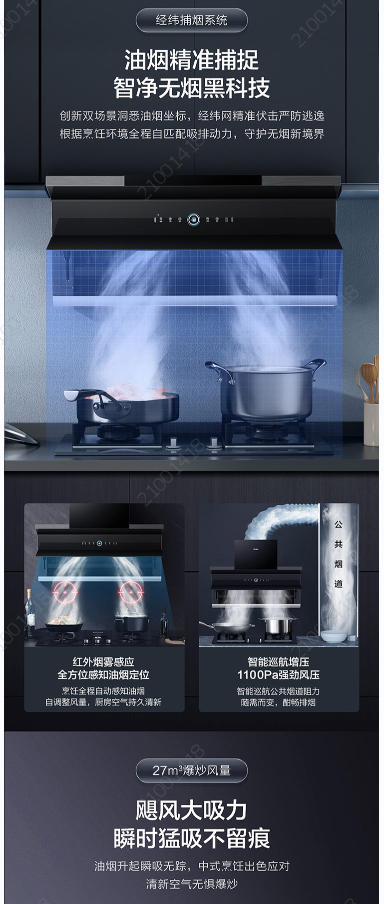 海尔油烟机(509861 ) 侧吸式3场景电子触摸按键吸油烟机 CXW-258-C8702 自清洁强劲风压触控面板大风量