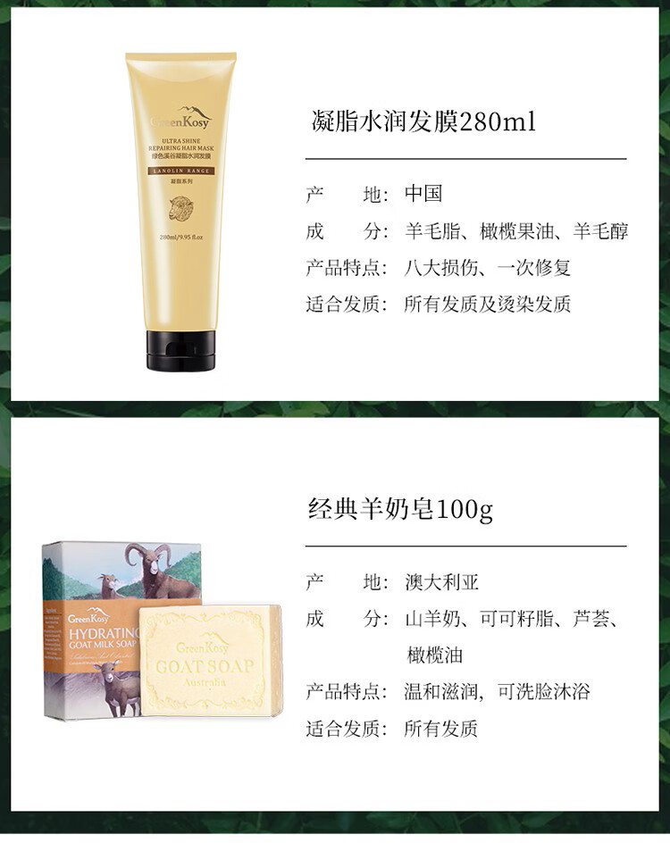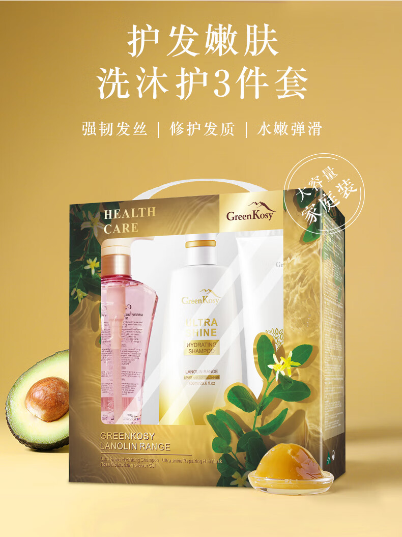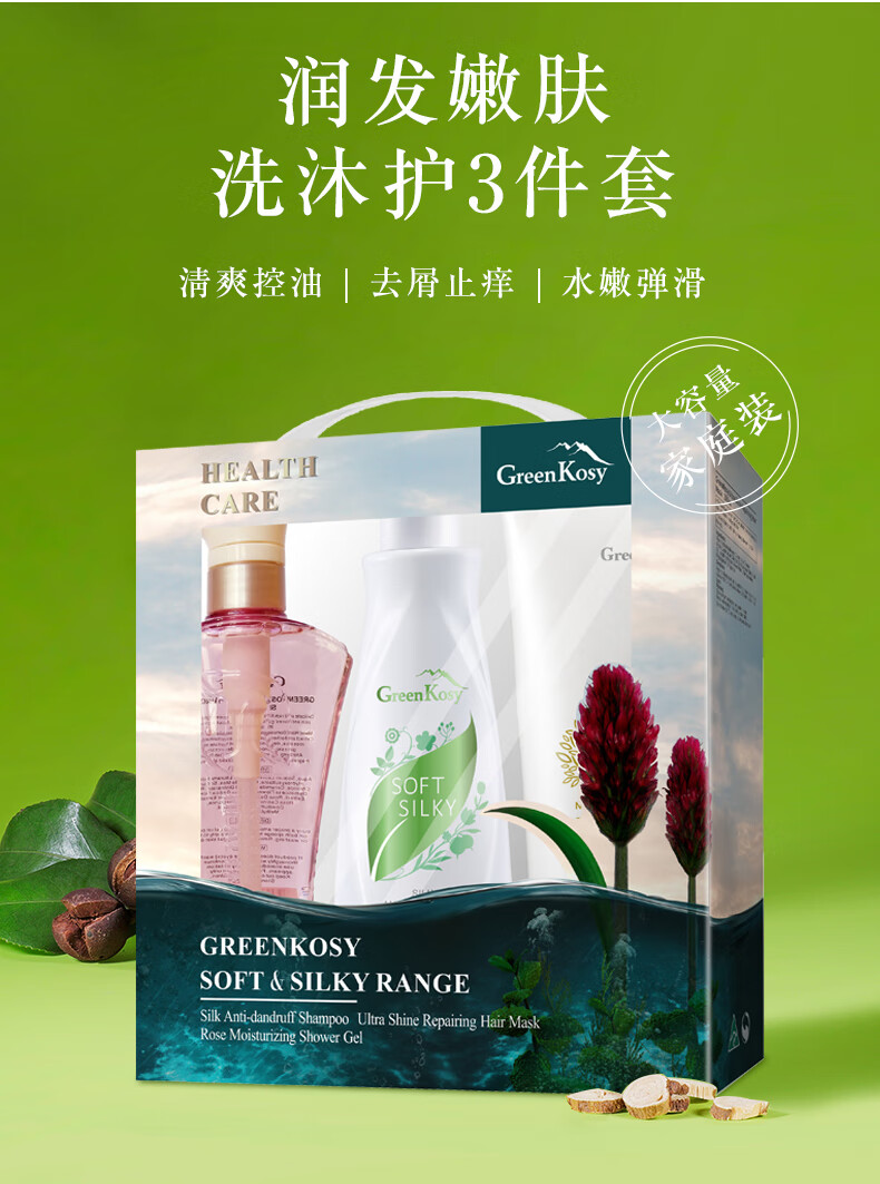 绿色溪谷洗护沐礼盒三件套装(洗发乳700ml+发膜280ml+沐浴露500g)