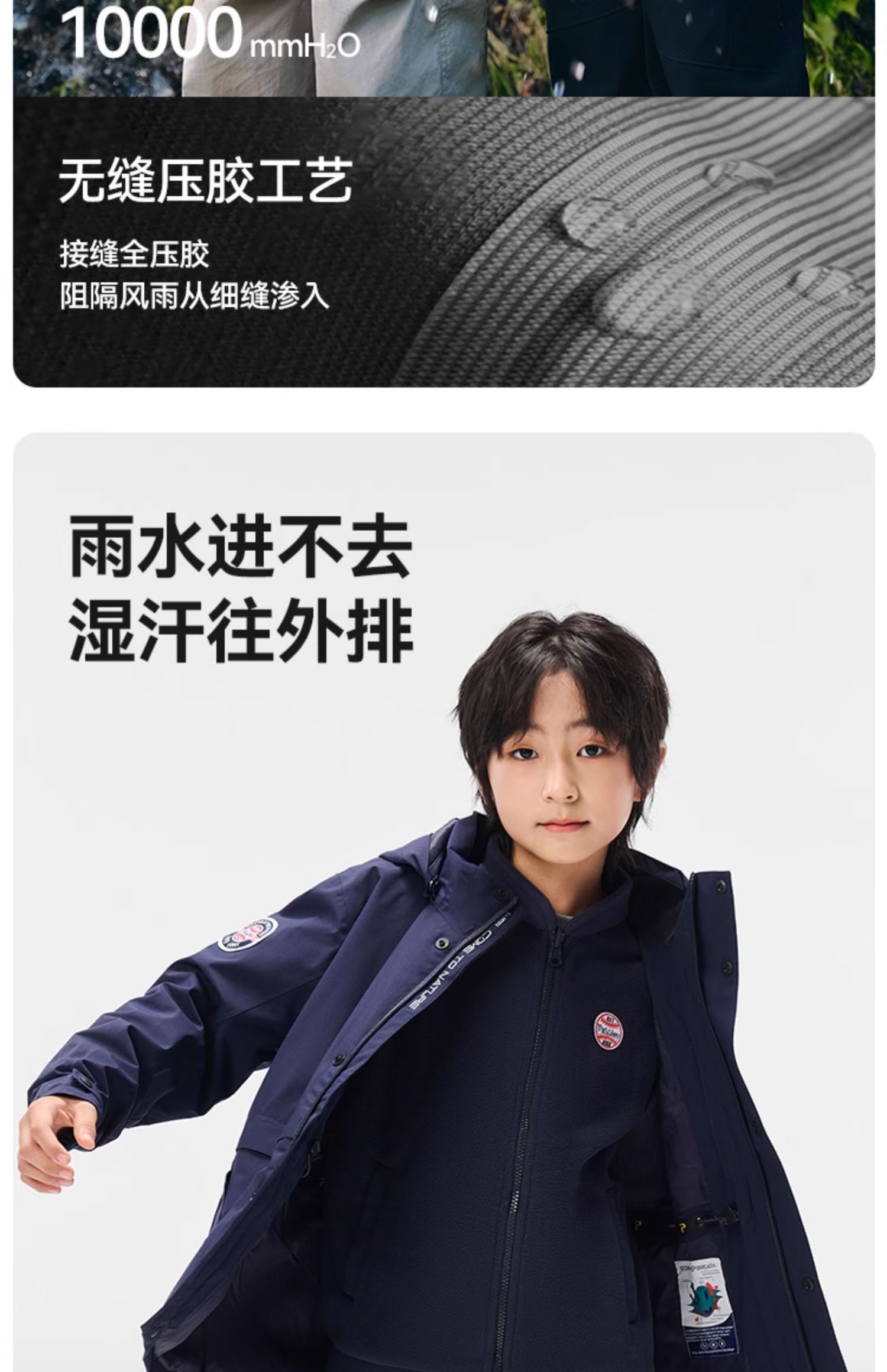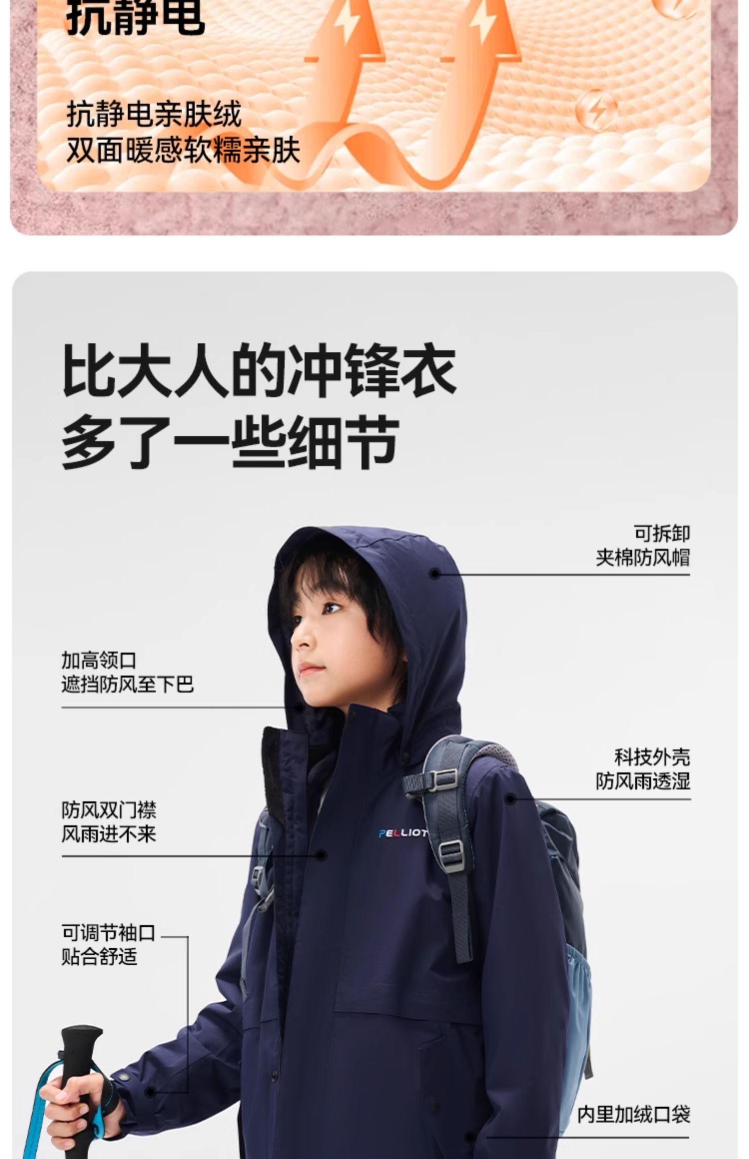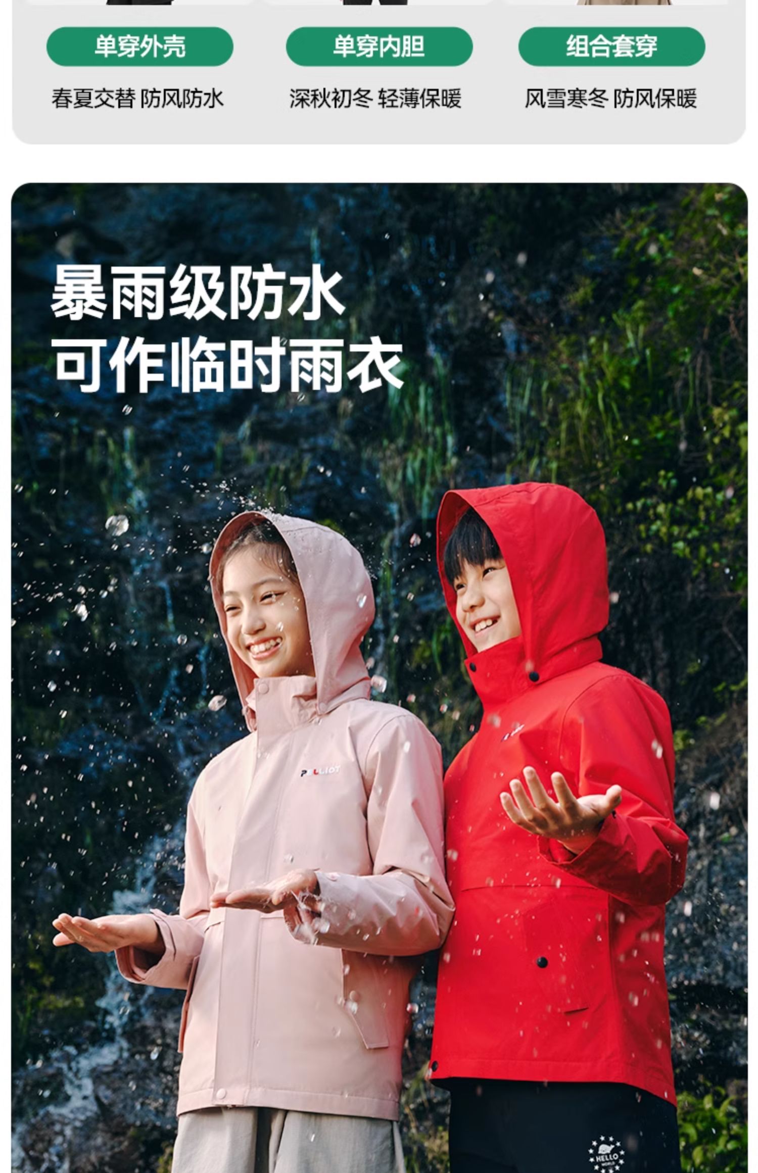 【经典2.0】伯希和户外儿童冲锋衣男童女童新款登山服三合一外套