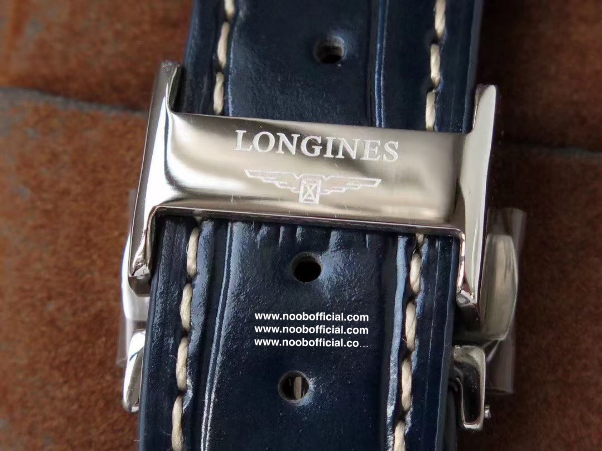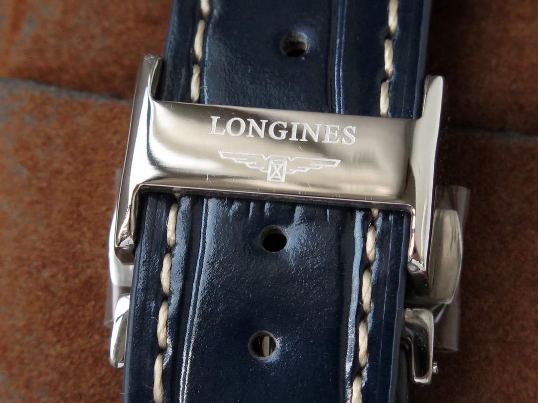 意大利小牛皮表带搭配浪琴经典蝴蝶式精钢表扣。