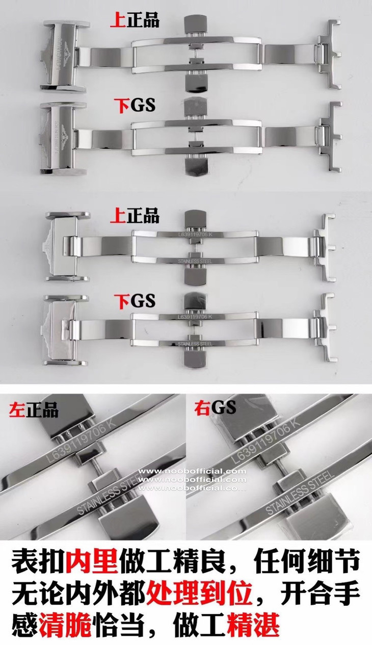 【表带扣】意大利小牛皮表带搭配浪琴经典蝴蝶式精钢表扣。
