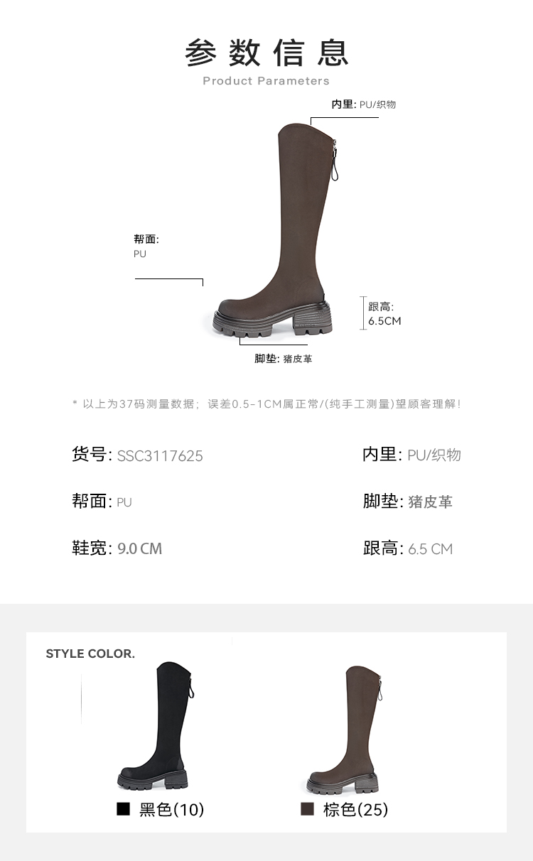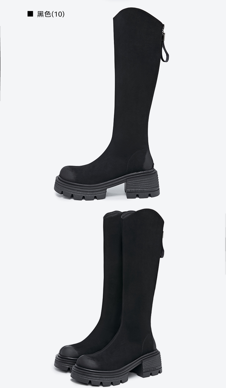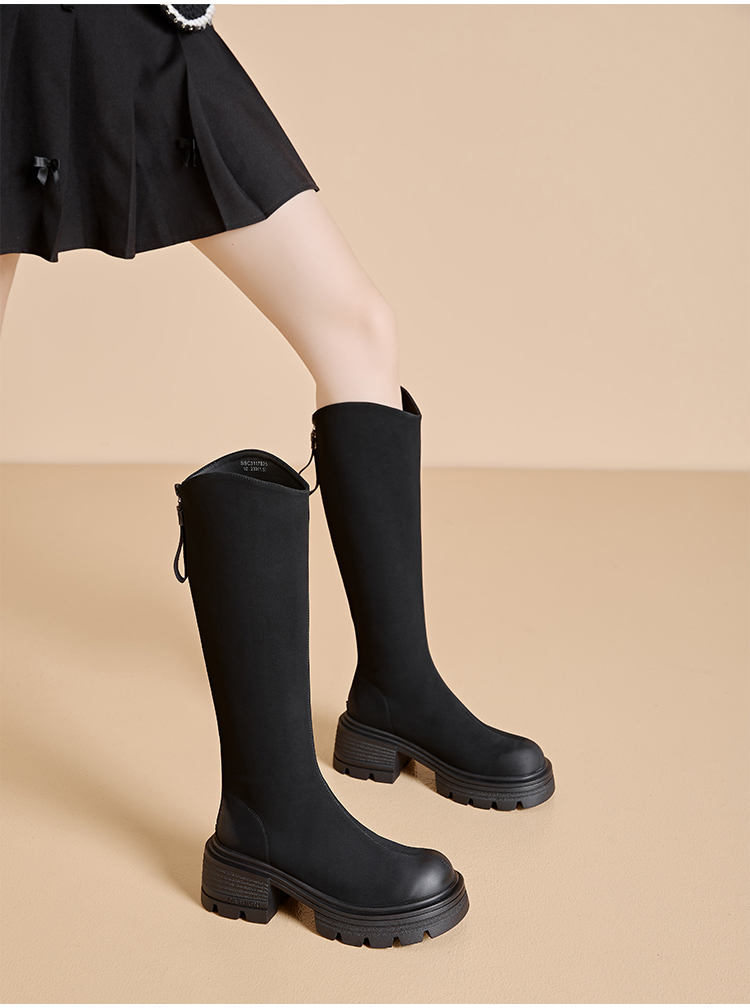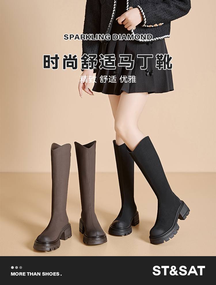 星期六简约百搭V口美腿粗跟长靴SSC3117625