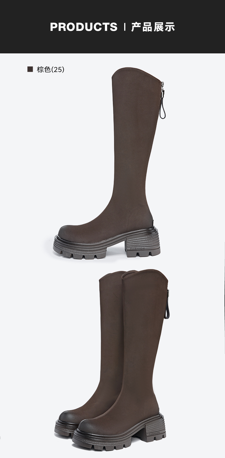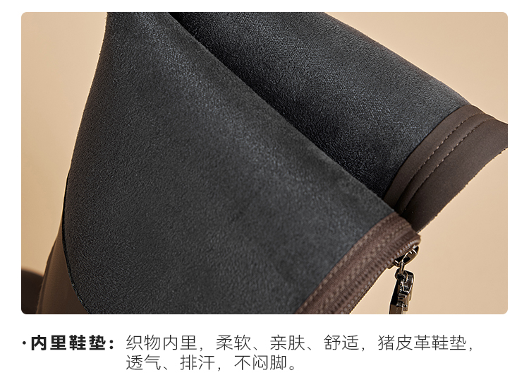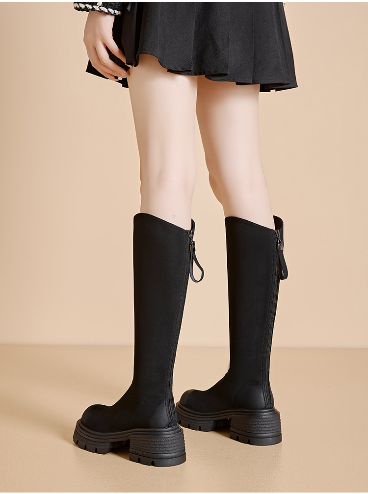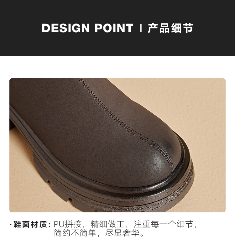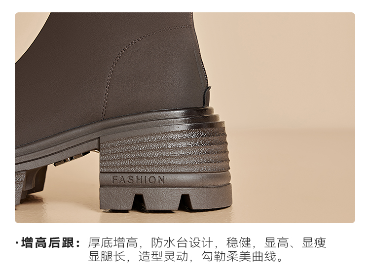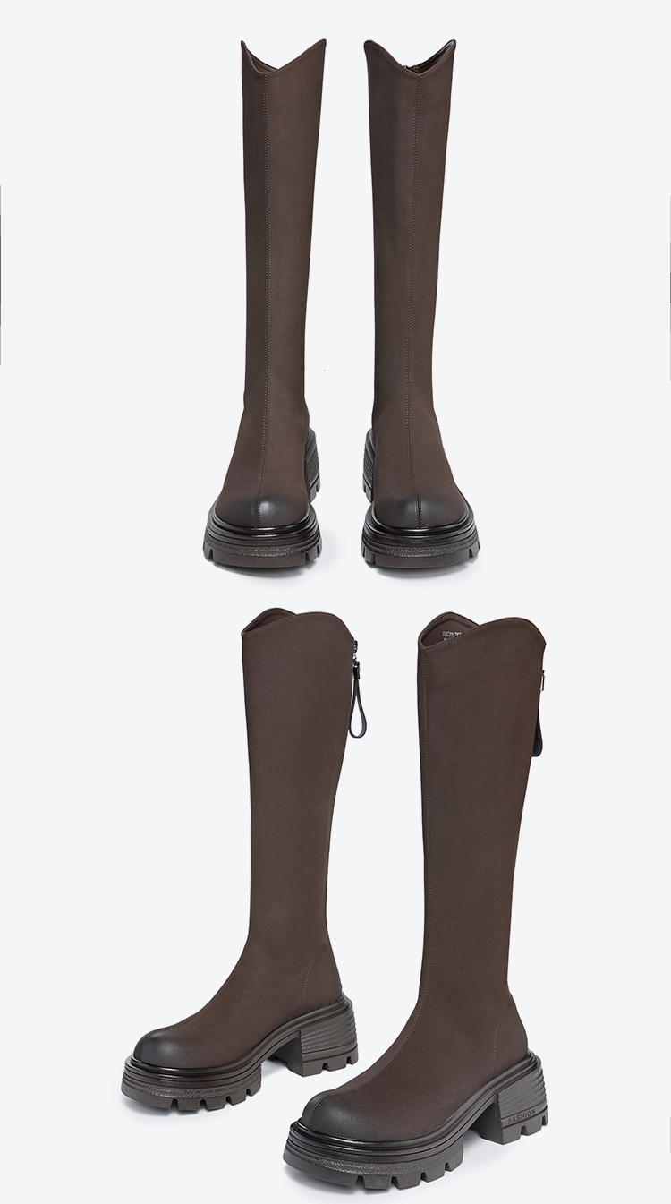 星期六简约百搭V口美腿粗跟长靴SSC3117625