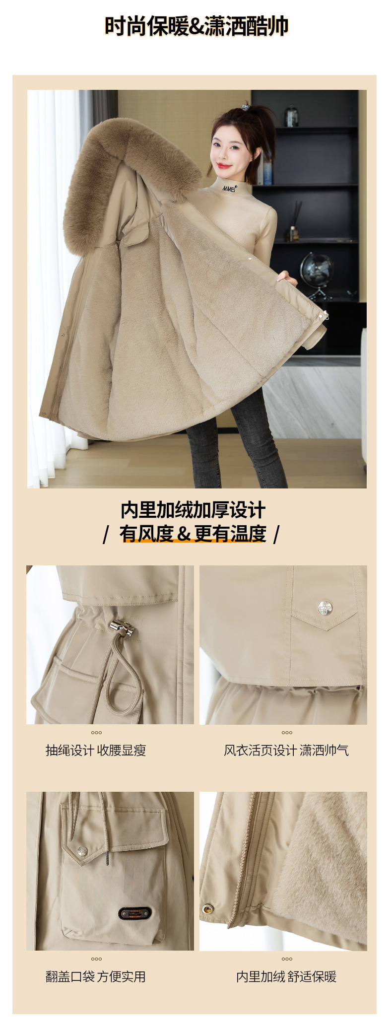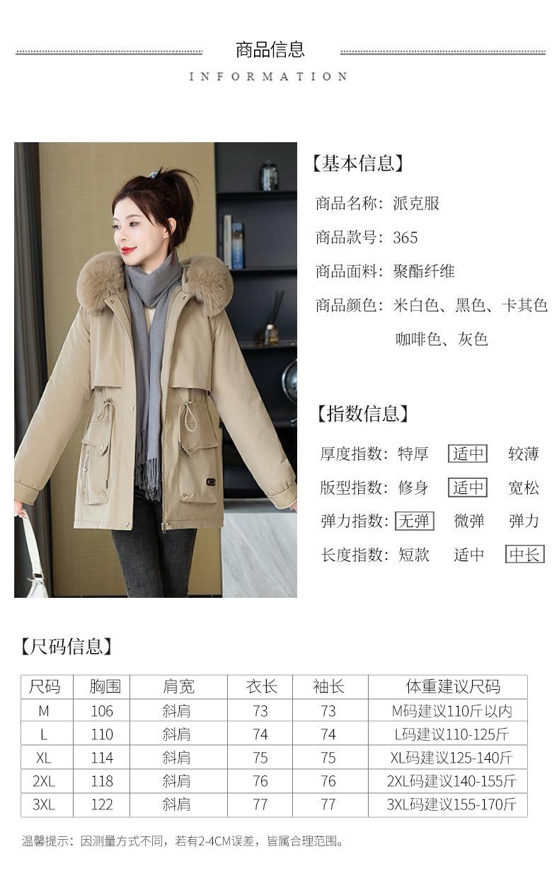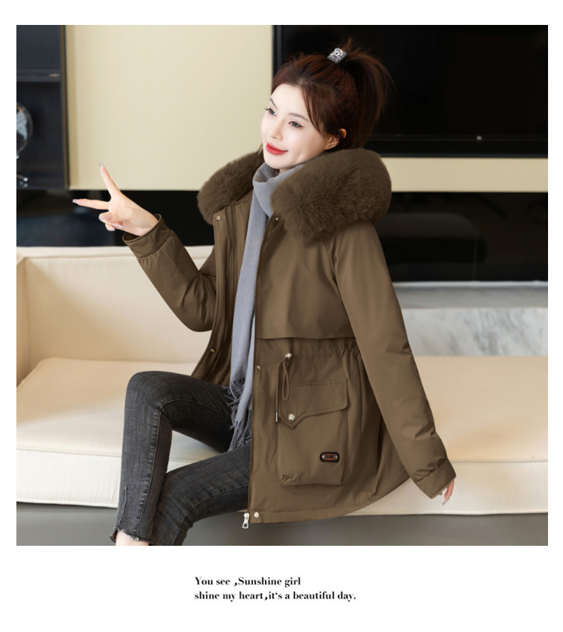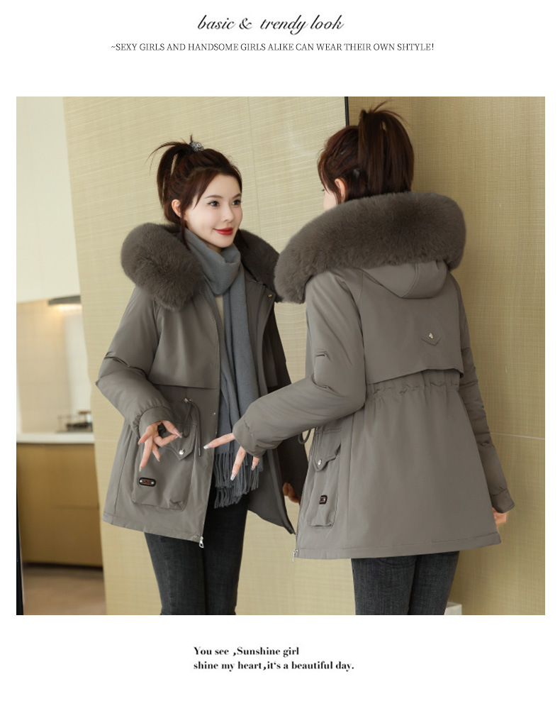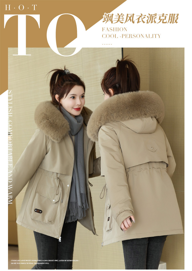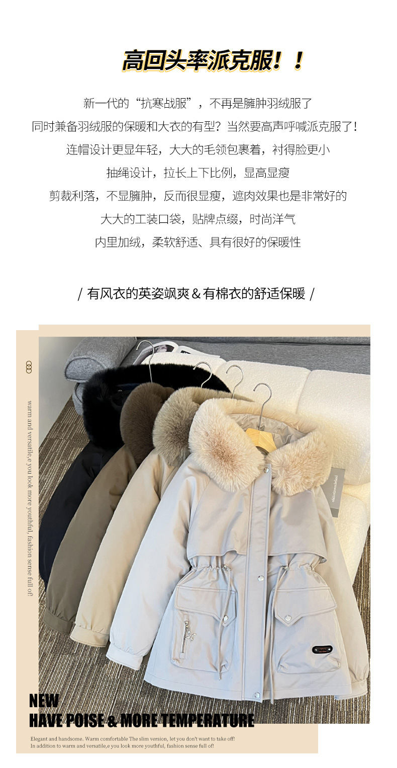 派克服女新款冬季时尚百搭棉服加绒连帽外套大毛领保暖棉衣女