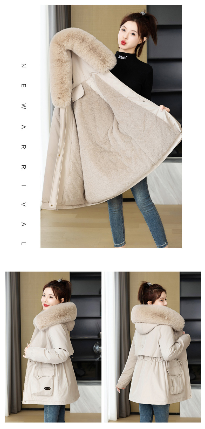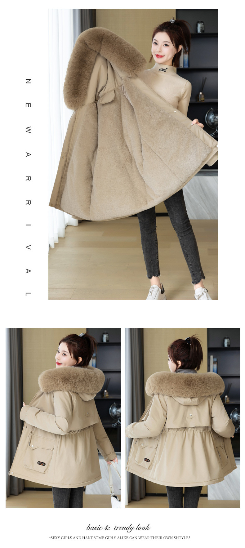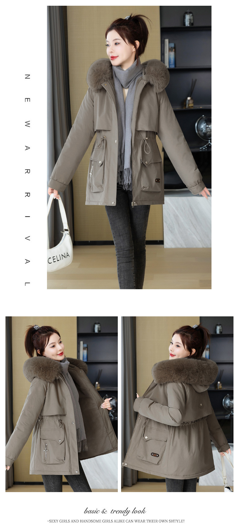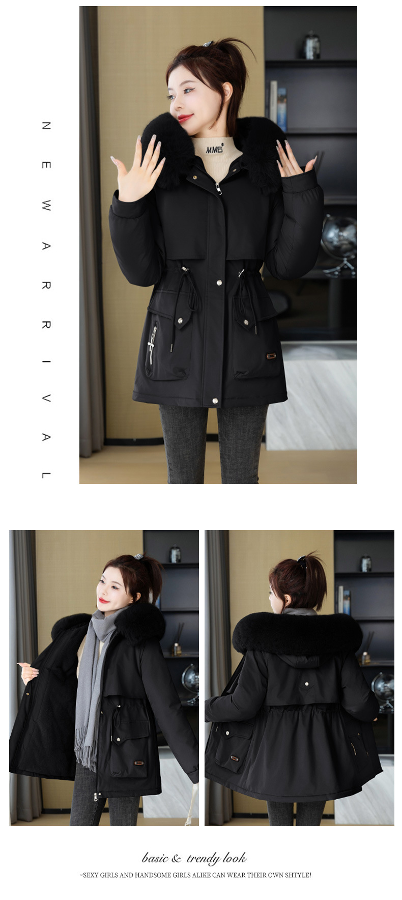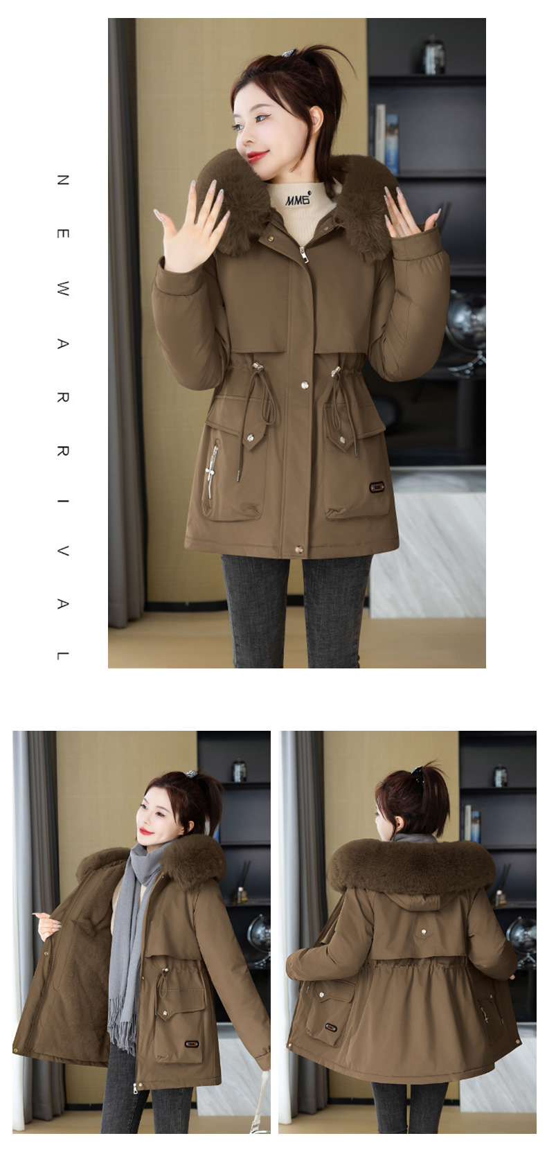 派克服女新款冬季时尚百搭棉服加绒连帽外套大毛领保暖棉衣女