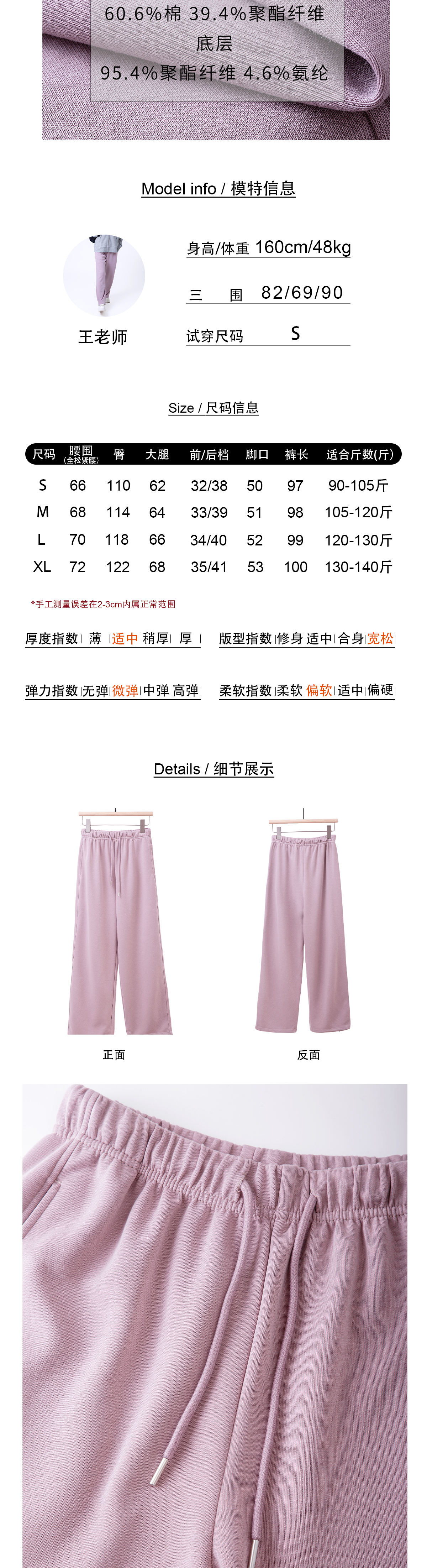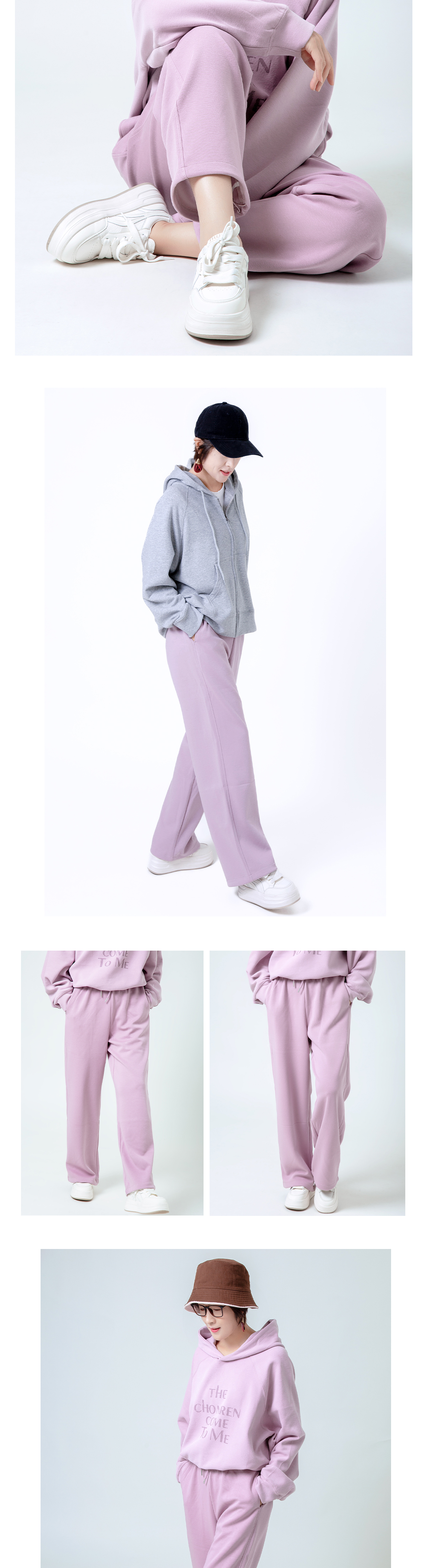雾霾紫松紧腰休闲裤