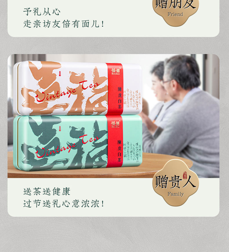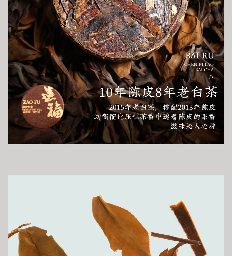 佰儒 福鼎白茶 陈皮白茶老寿眉茶叶256g*2盒