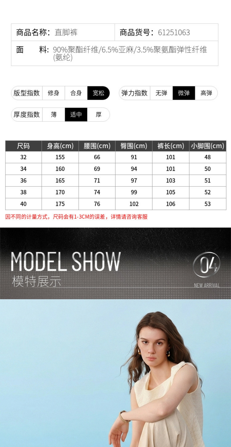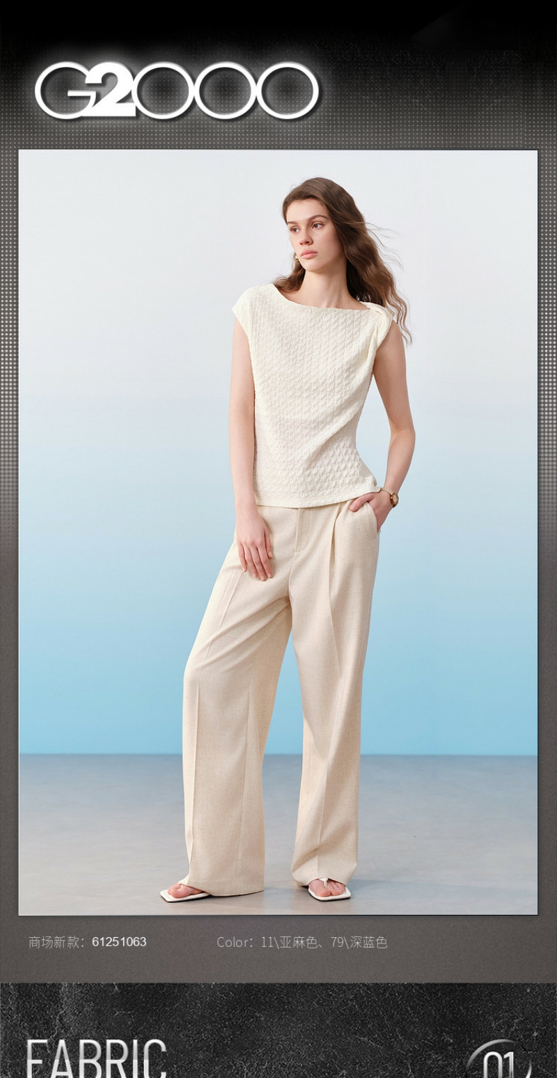 G2000女装SS26商场新款【可机洗/亚麻舒适棉】通勤宽松直脚西裤61251063