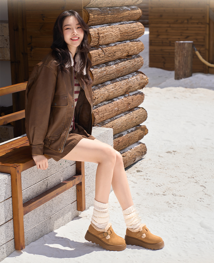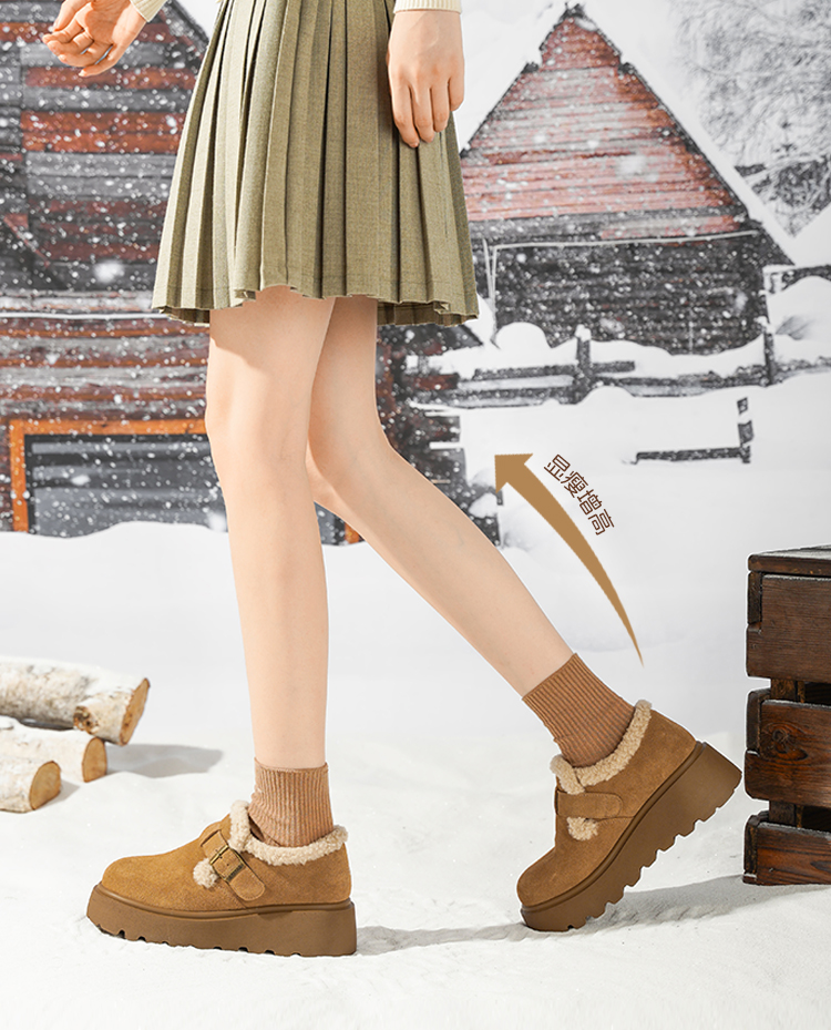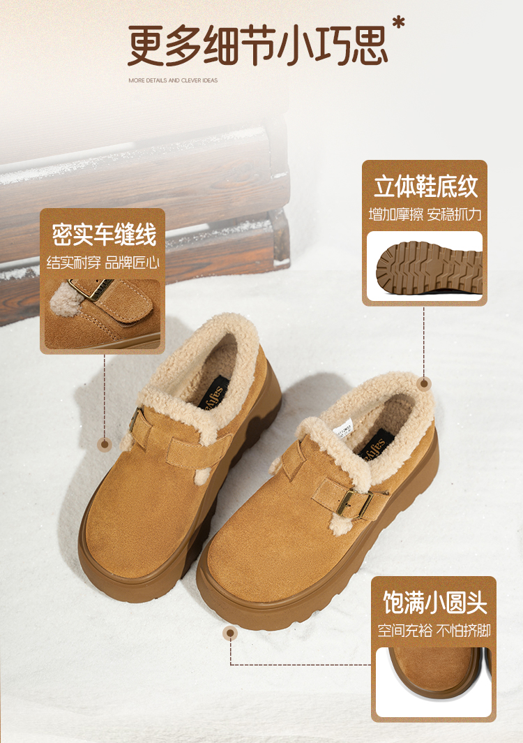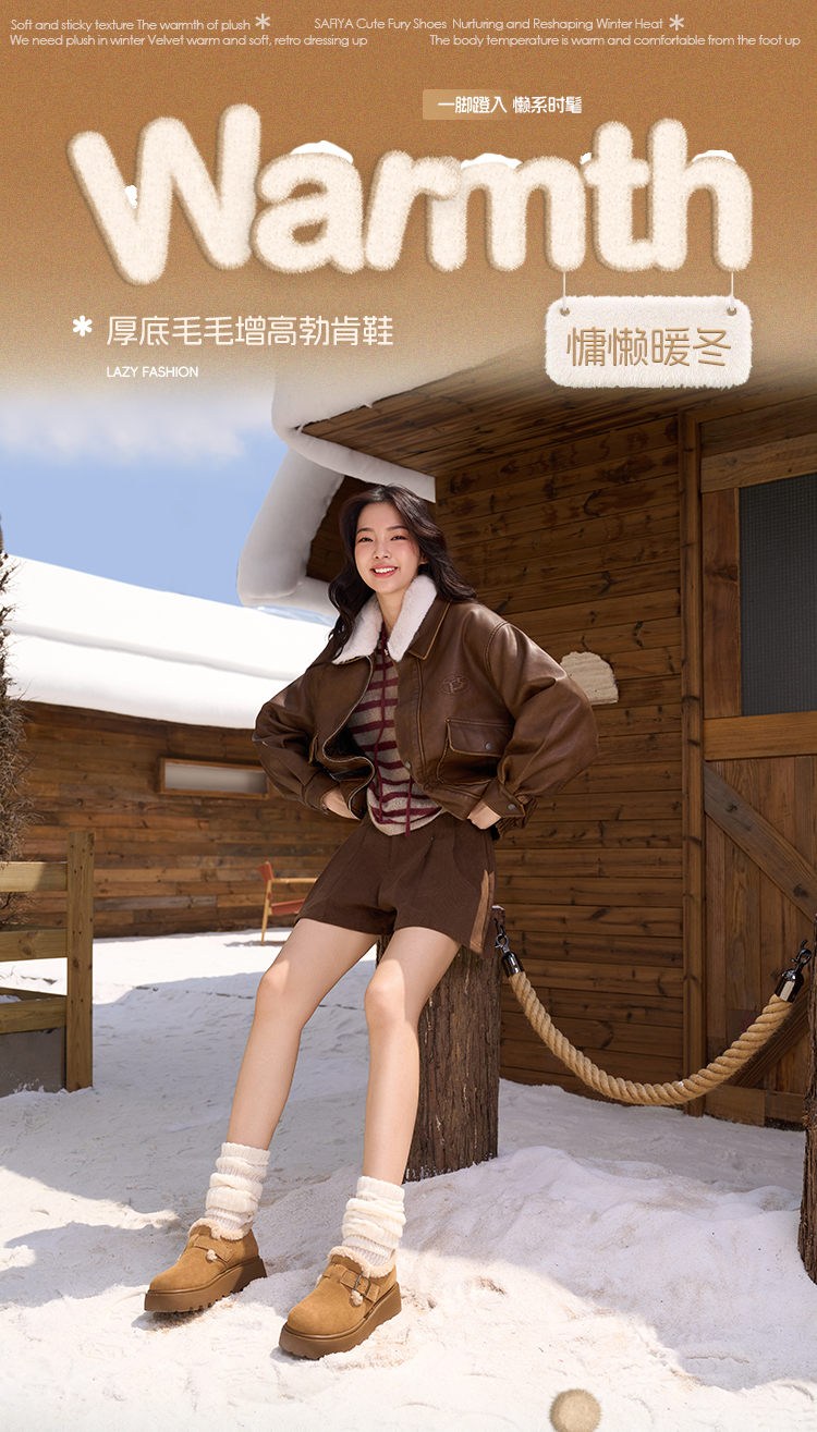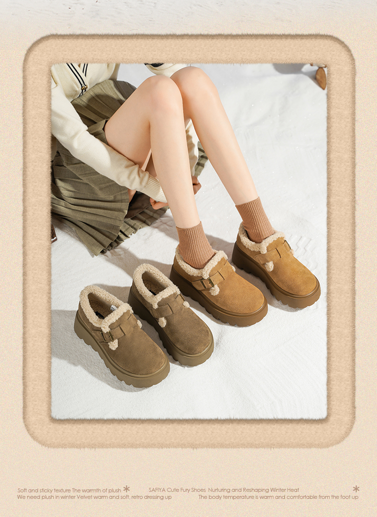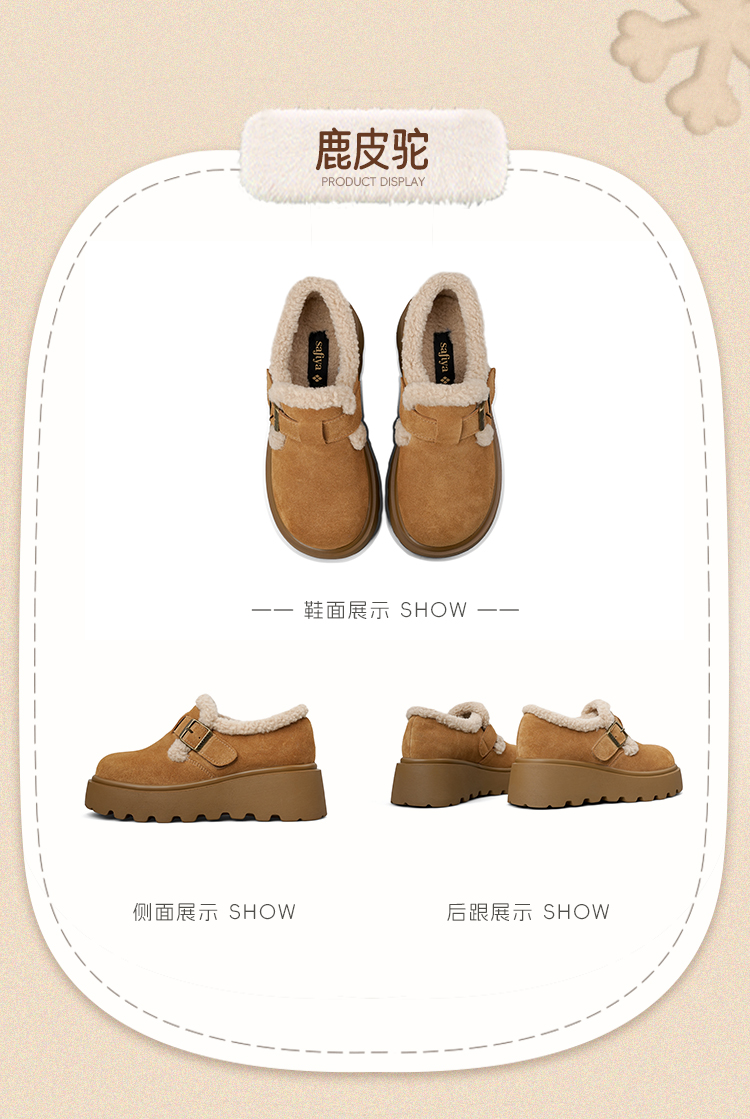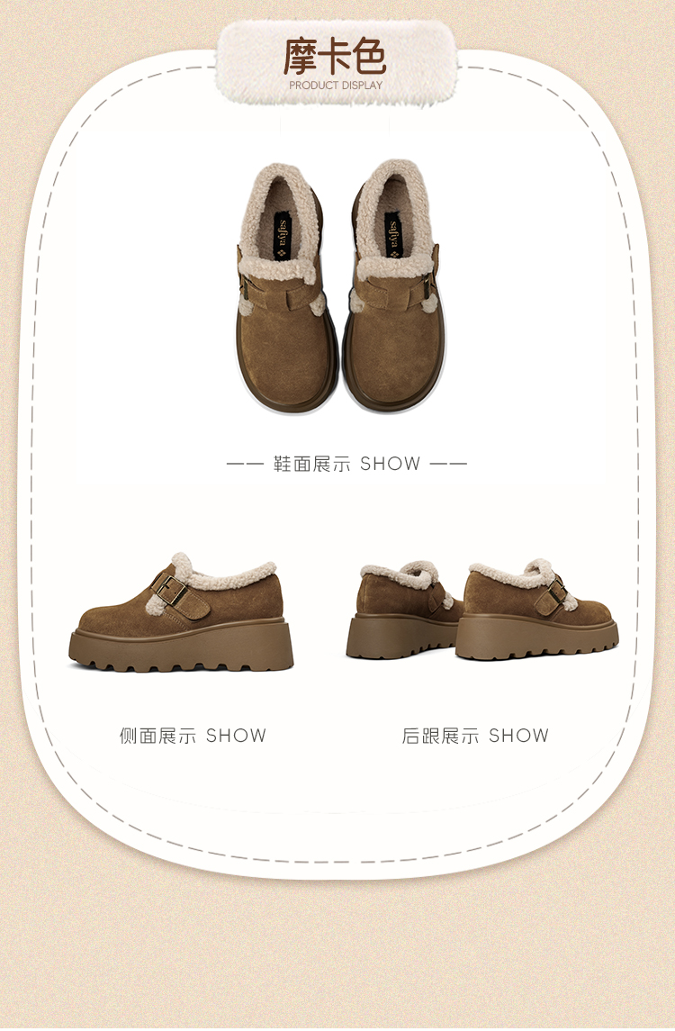 Safiya/索菲娅2025加绒一脚蹬复古百搭全包厚底毛毛增高勃肯鞋SFD4112133/SFD4112M33