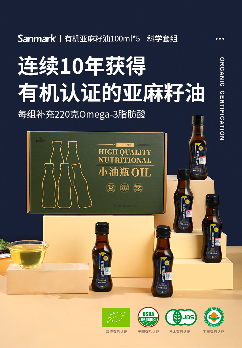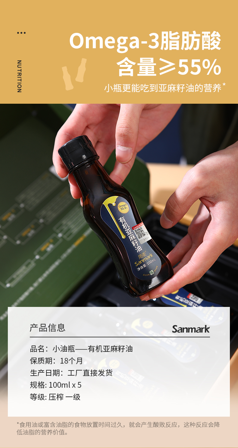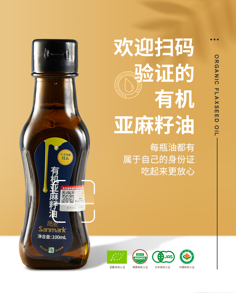 晟麦有机亚麻籽油100ml*5瓶 冷榨初榨一级食用油纯胡麻油