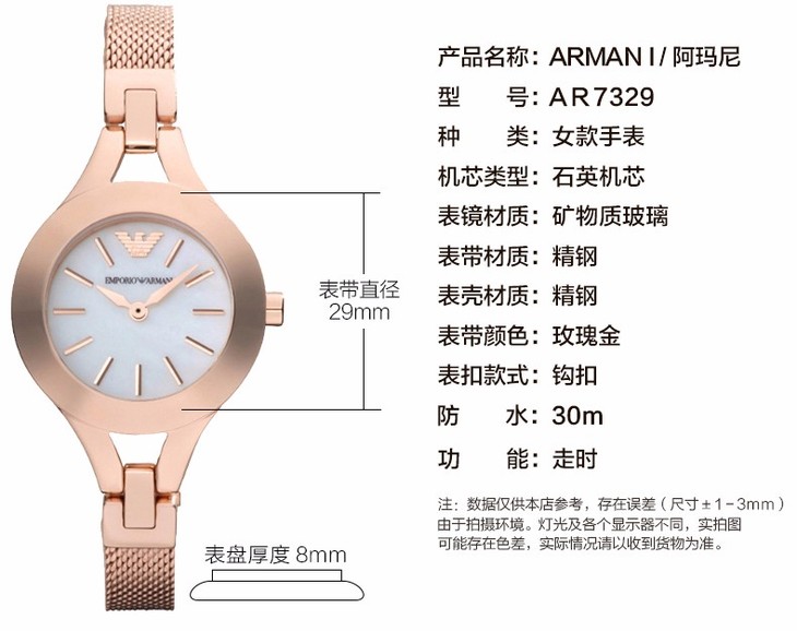 ARMANI/阿玛尼 优雅气质手链女士手表 AR7329JPY带授权招加盟代理
