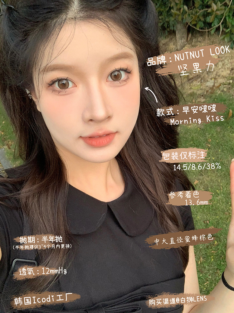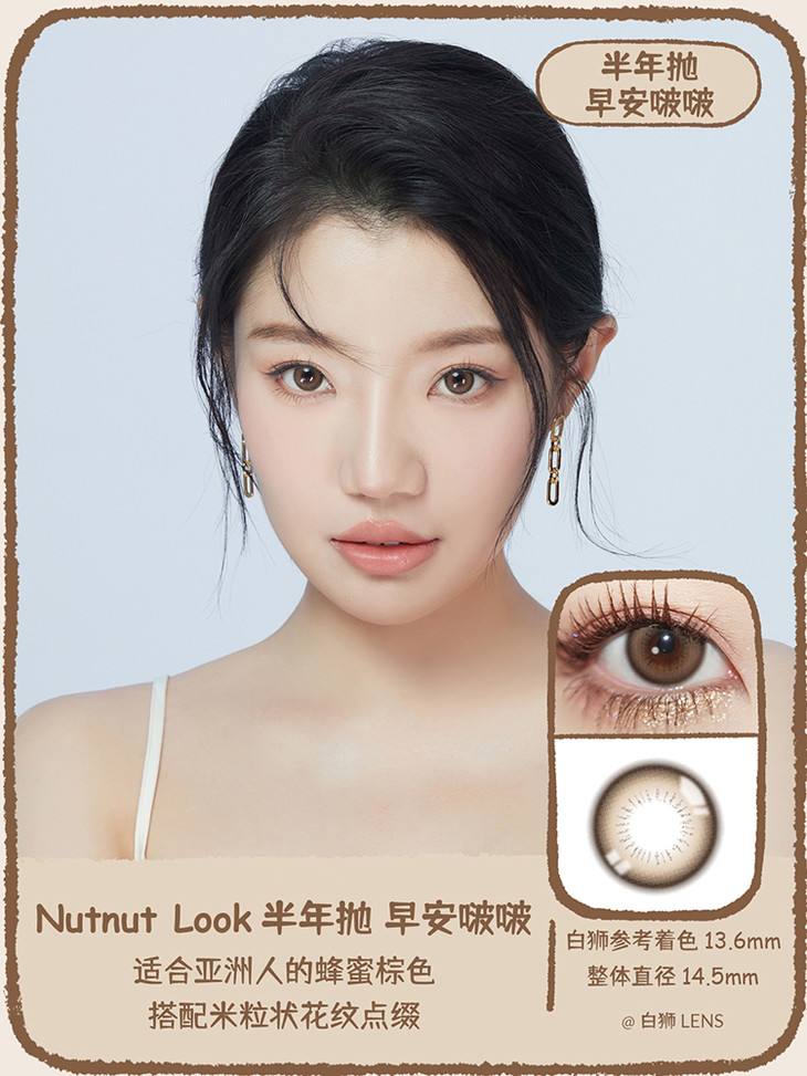 坚果力NUTNUTLOOK早安啵啵 14.5mm中大直径美瞳隐形眼镜 白狮旗下自营品牌赠送伴侣盒 半年抛2片