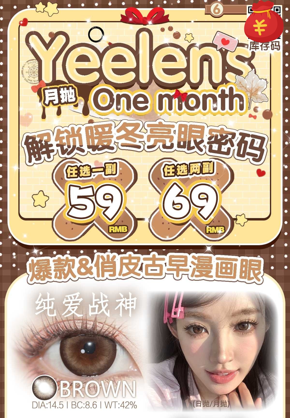 yeelens 月抛59/副69/2副,纯爱战神婴儿黑英格兰秘湖俄罗斯热巧幻紫天鹅绒,最高度数800