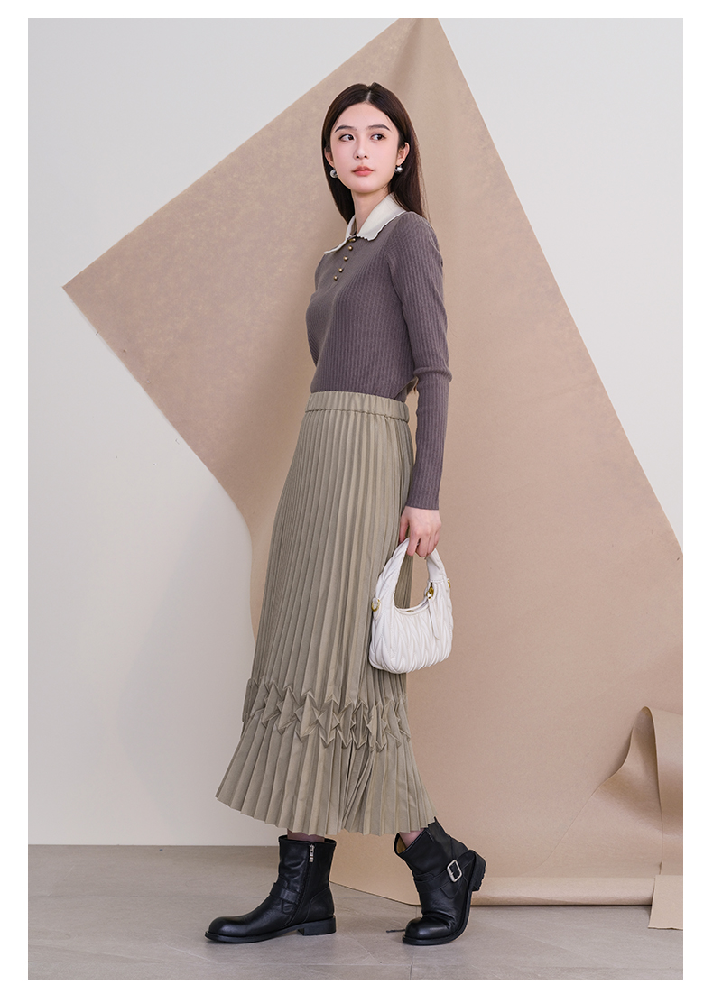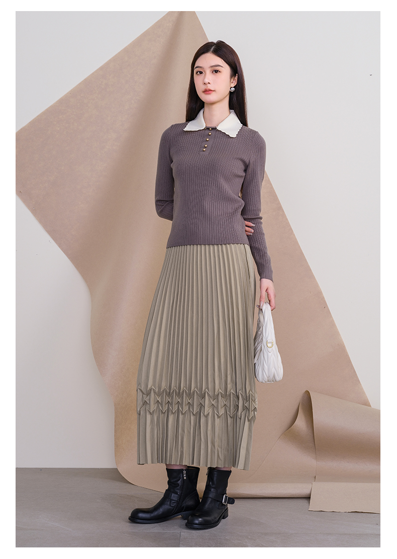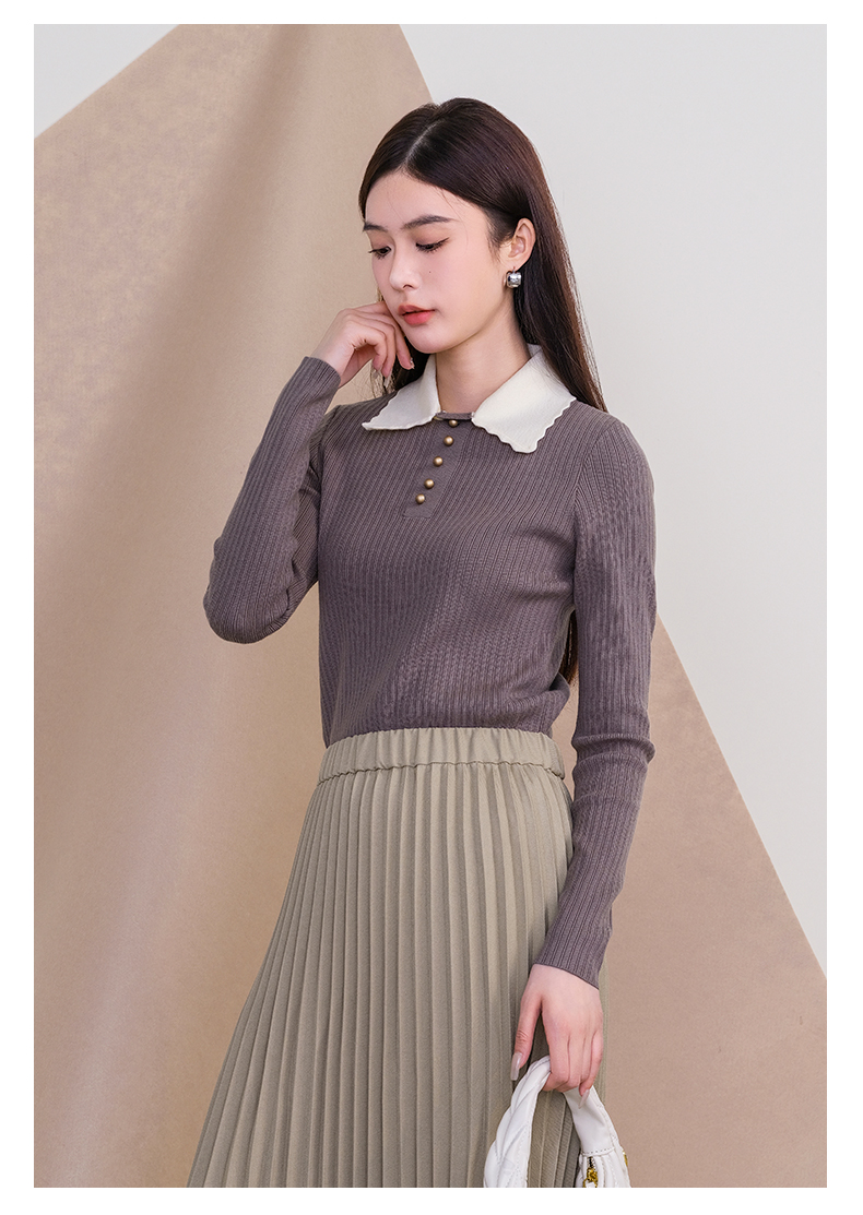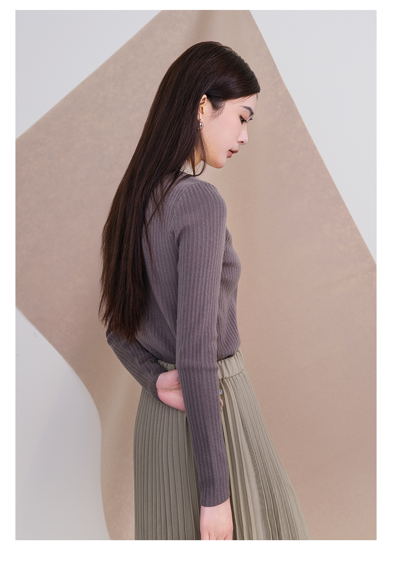 oldcolour欧珂冬季新款时尚纯色修身翻领毛织套头衫女P450504A1
