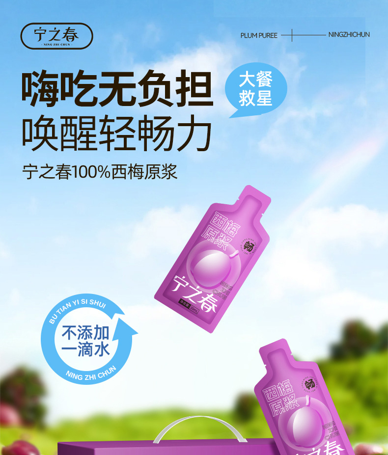 热卖!大餐救星!“支持免费试喝6袋”【超值90袋】宁之春西梅原浆 鲜果鲜榨 温和无依赖 30ml/袋*90袋