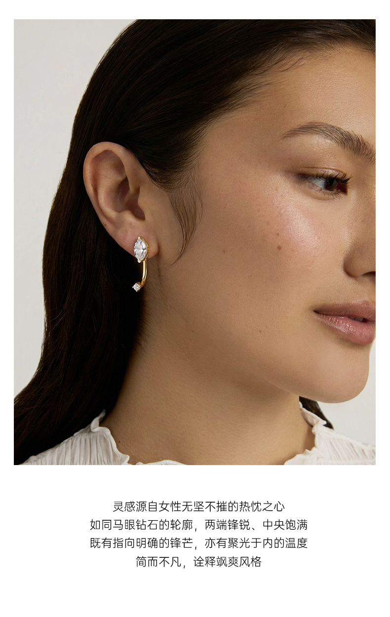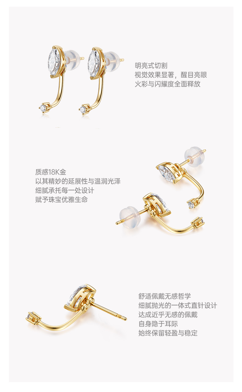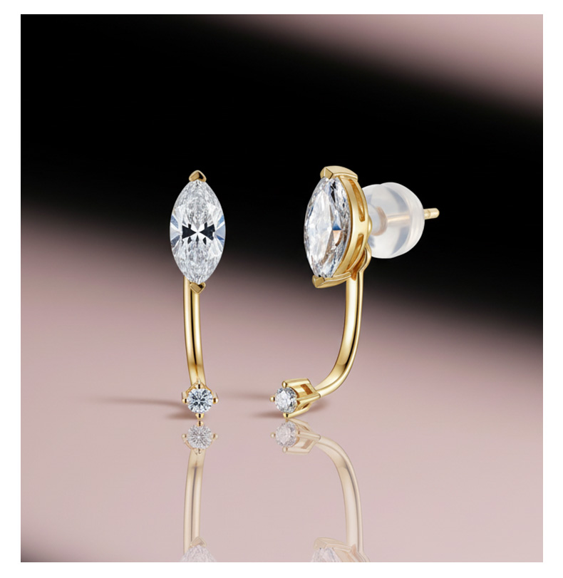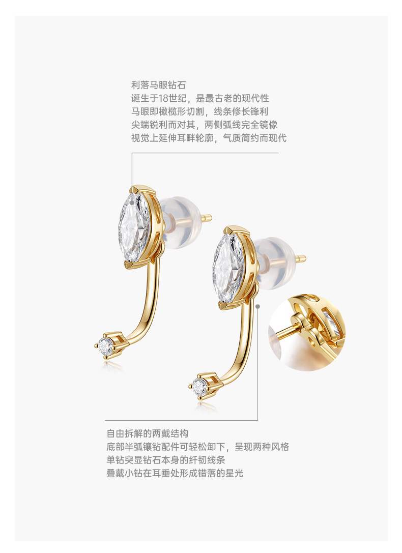 ShiningHouse[培育] 18k金钻石耳饰 橄榄形1克拉钻人工真钻人造钻石K金耳钉耳坠一款两戴耳环时尚钻石耳饰悦己送礼臻选【此商品不支持7天无理由退货退款】预计3日发货