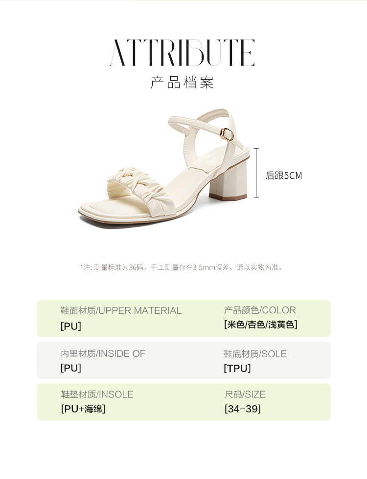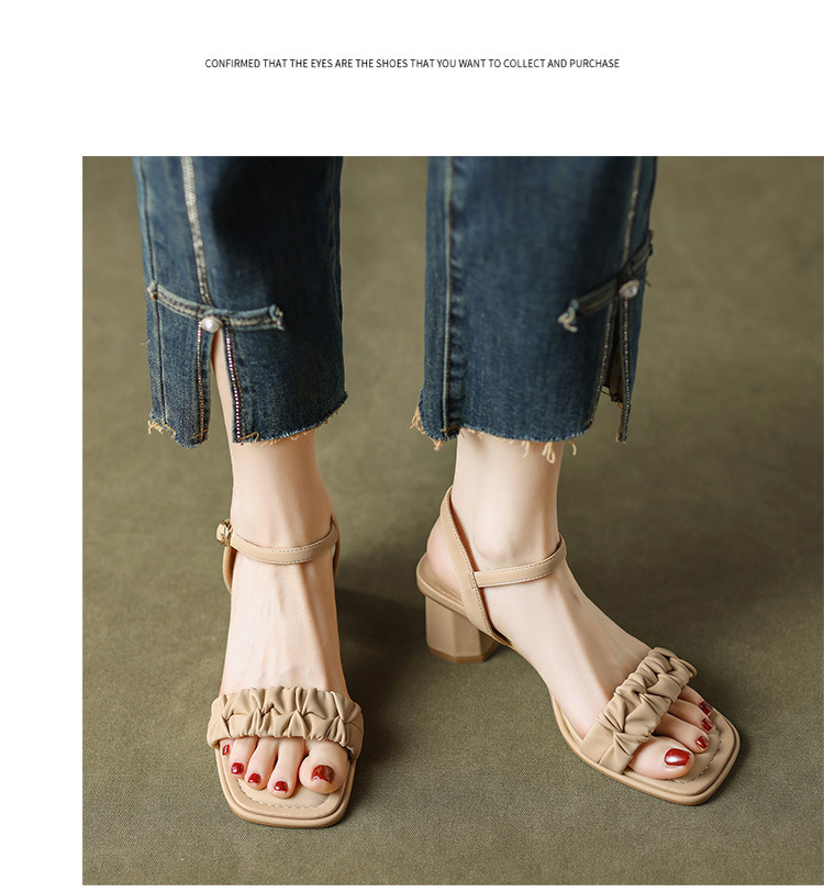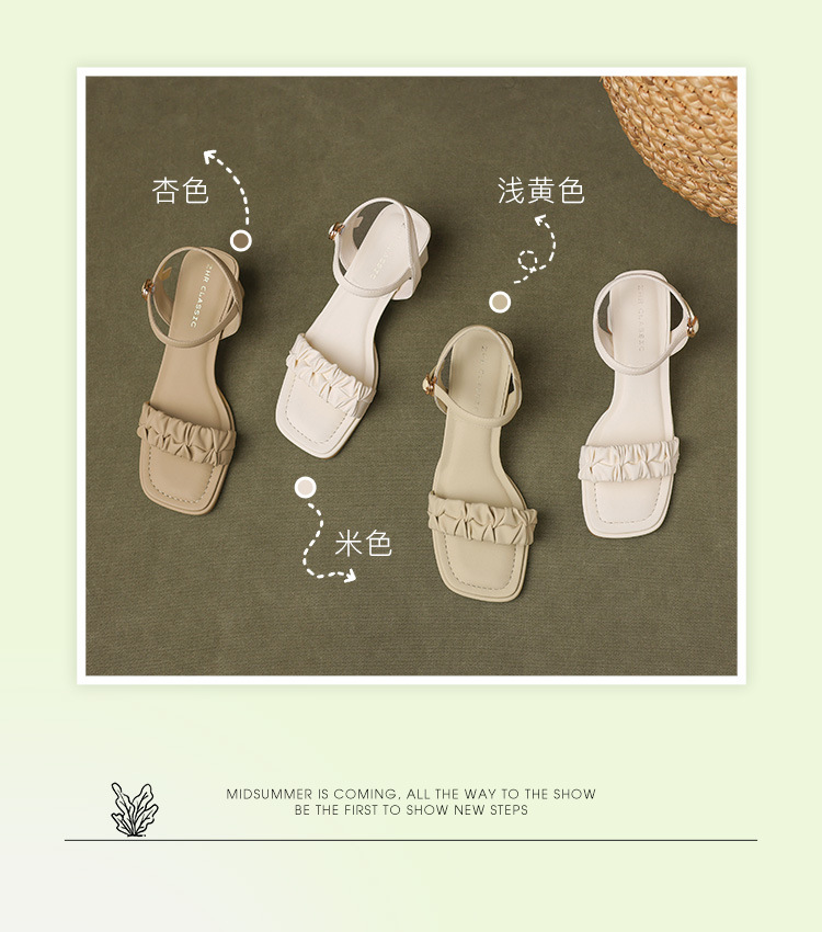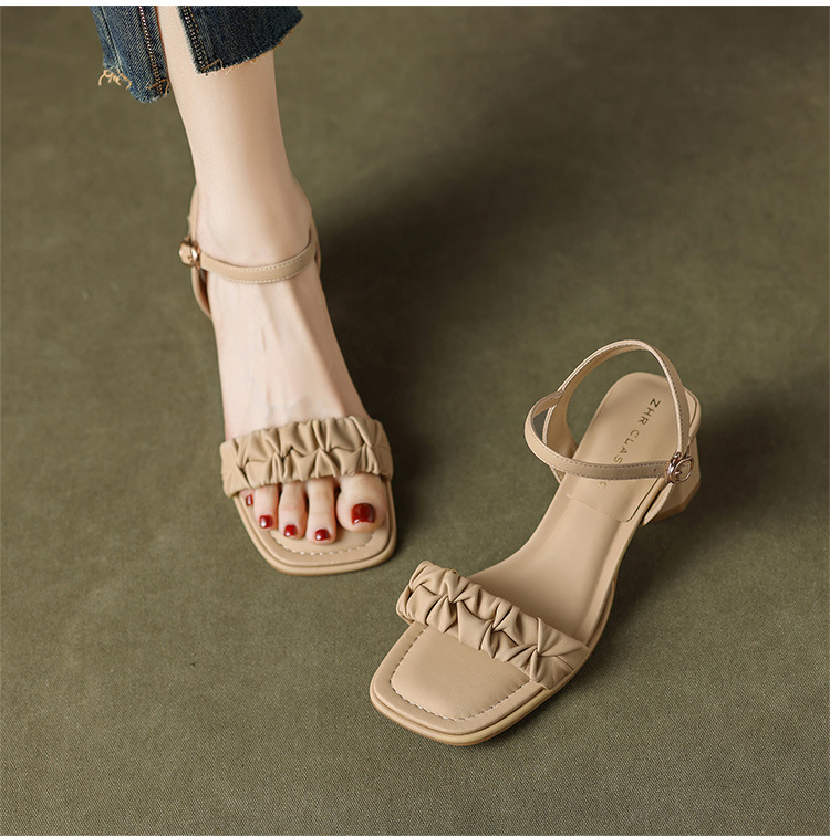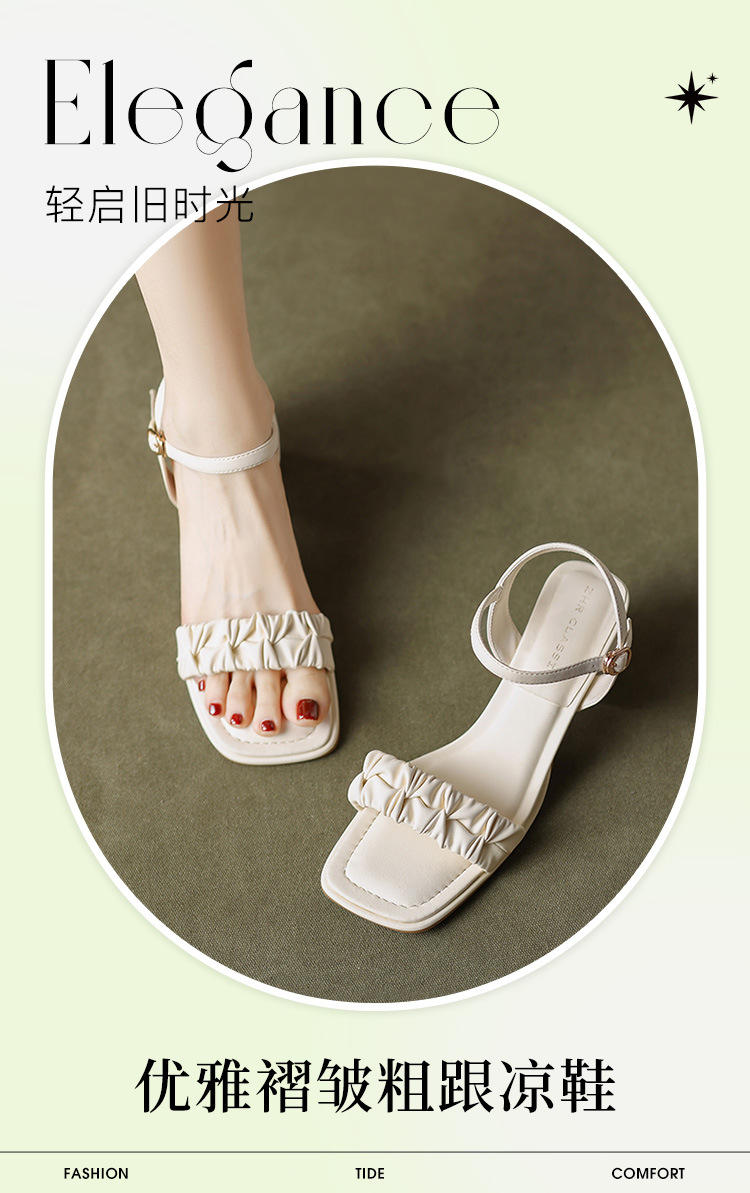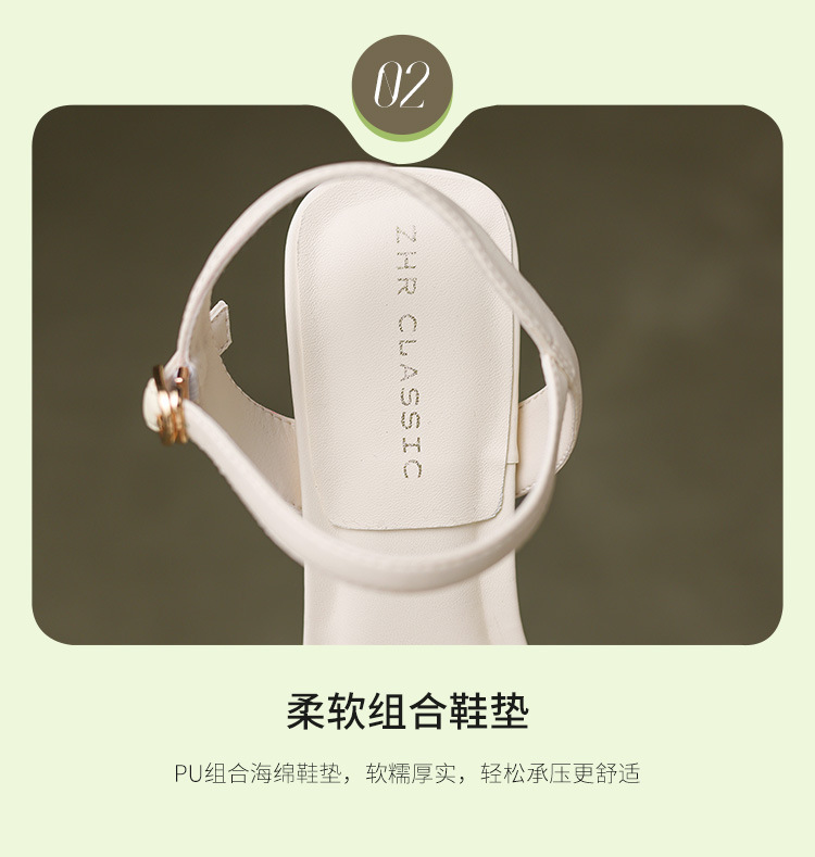 ZHR粗跟凉鞋女款2024夏季新款外穿仙女公主风高级一字带高跟女鞋