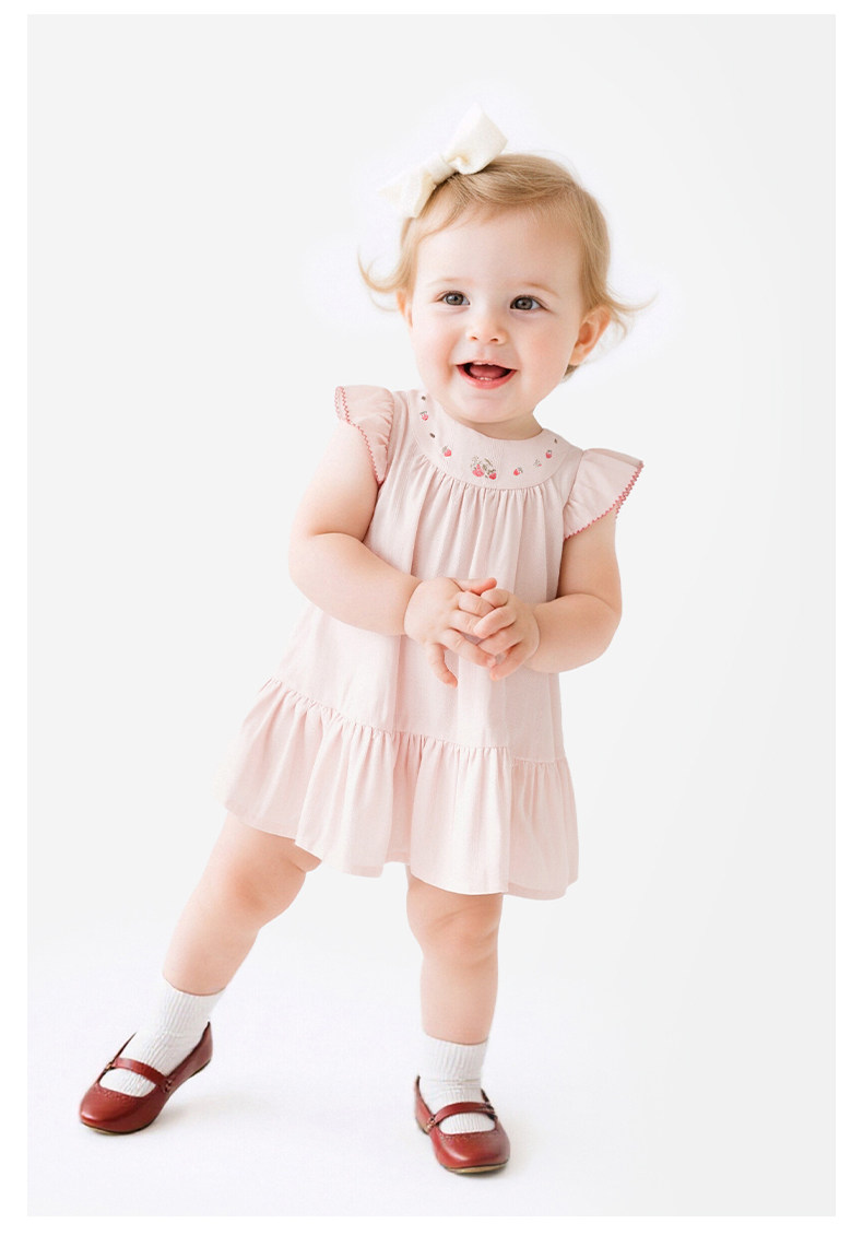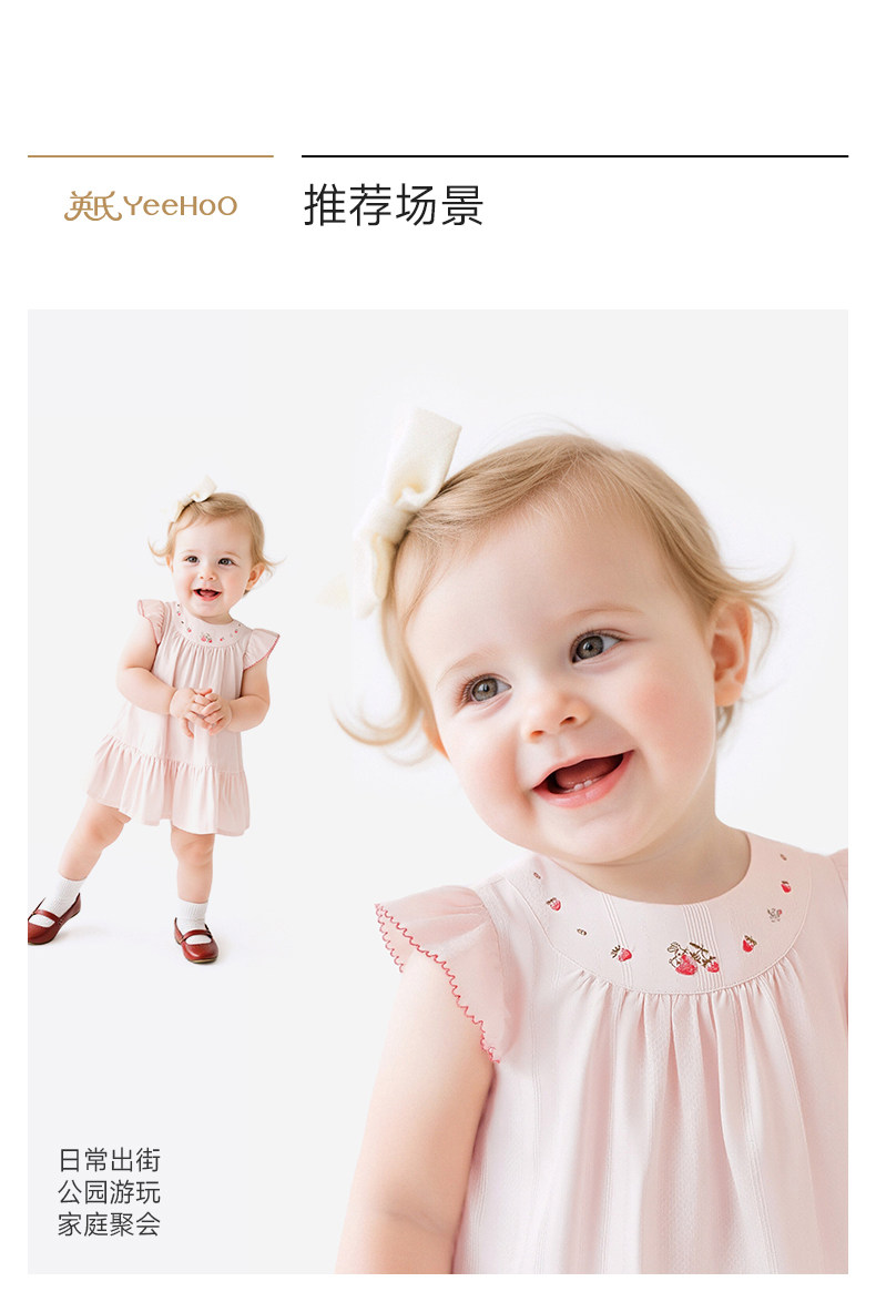 英氏女童短袖连衣裙夏新款浅粉裙子宝宝纯棉公主裙YRLCJ2S015A