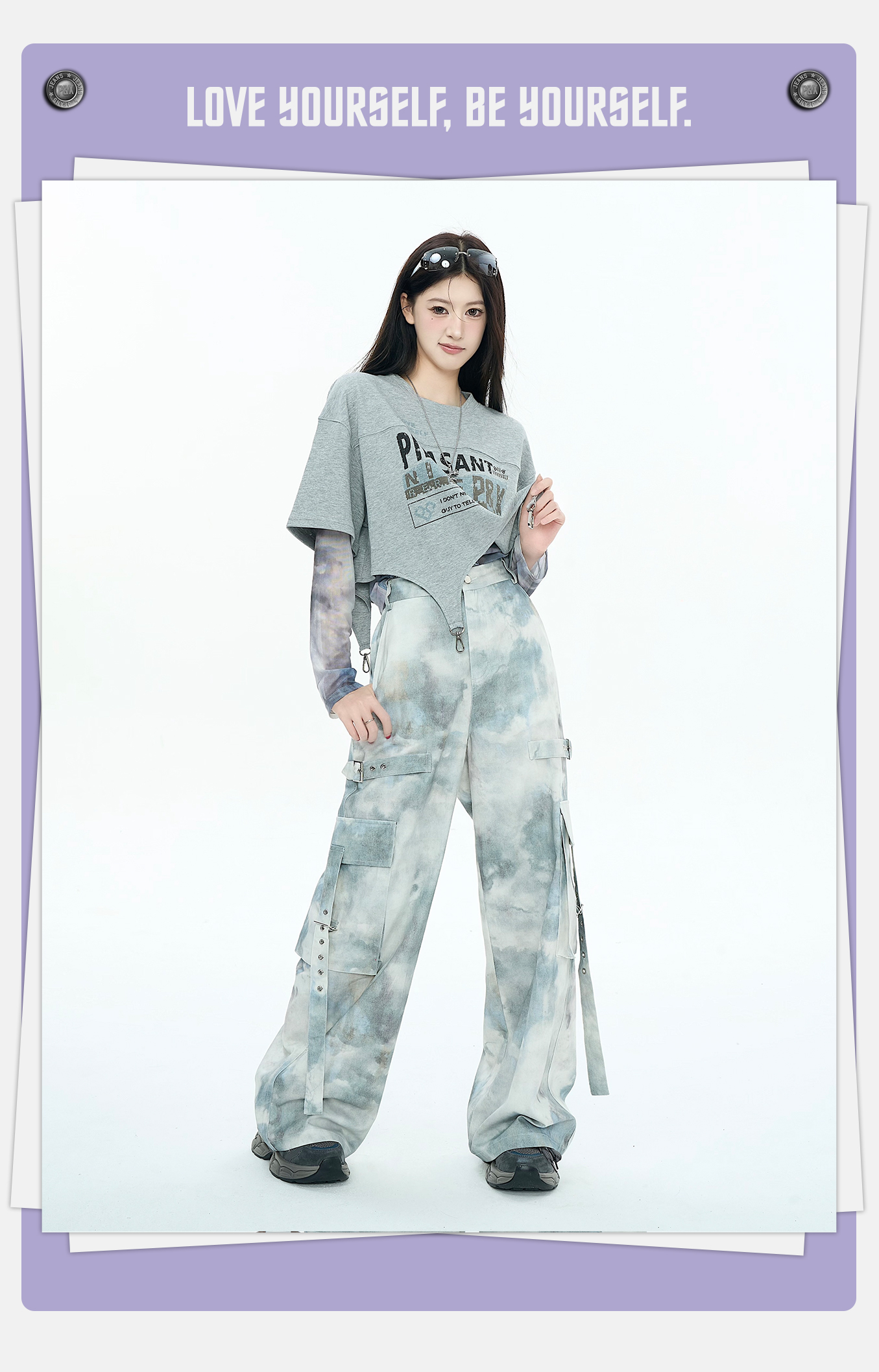 P&X设计师女装2025秋季阔腿工装裤扎染休闲长裤825309176 花色