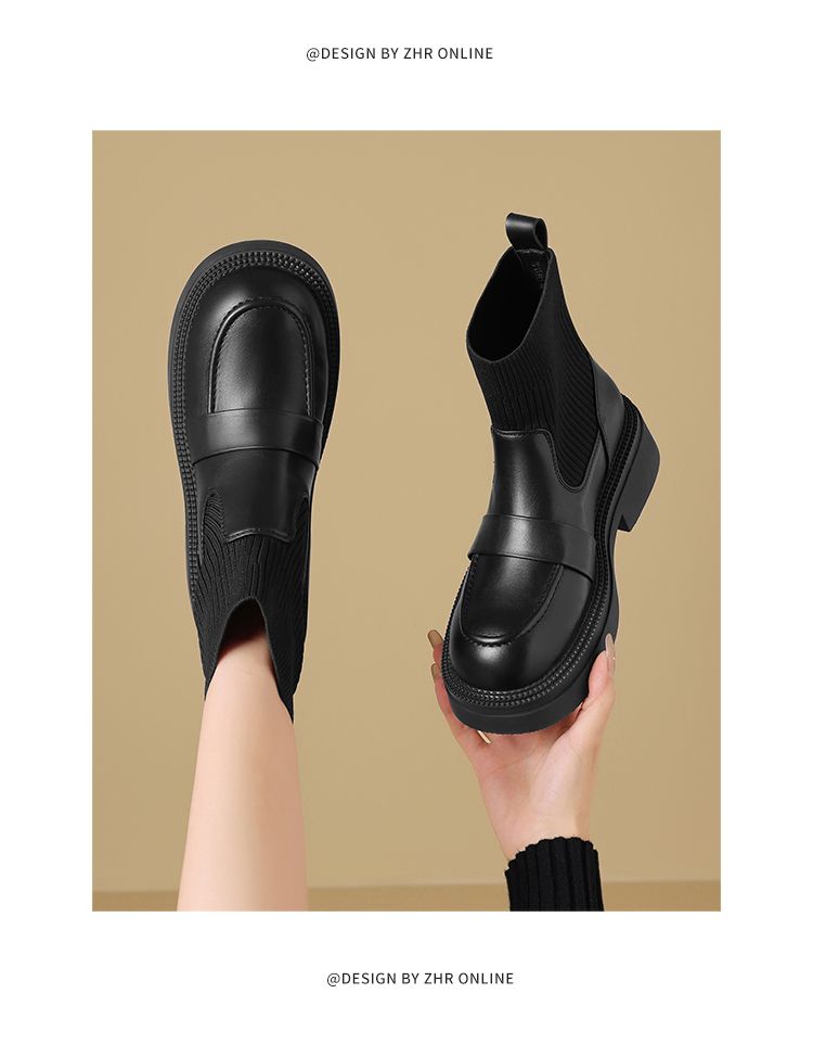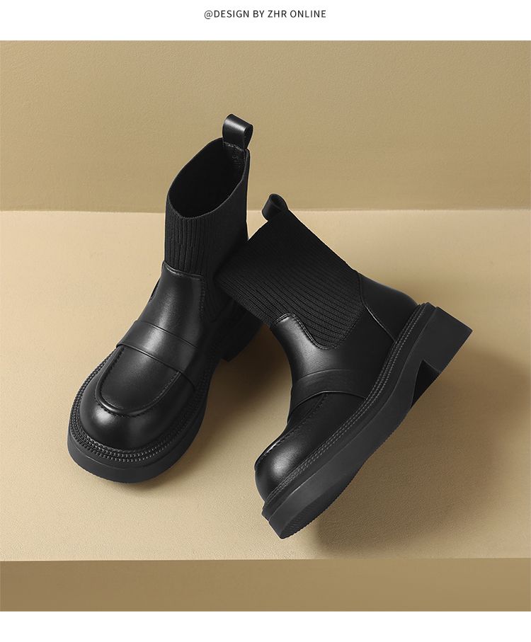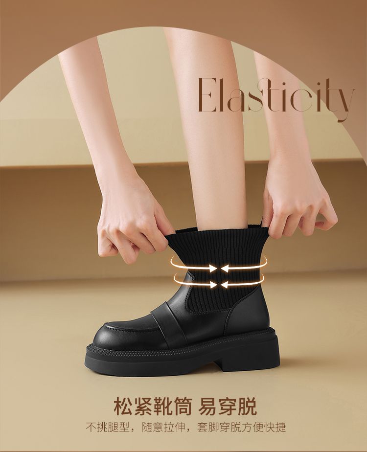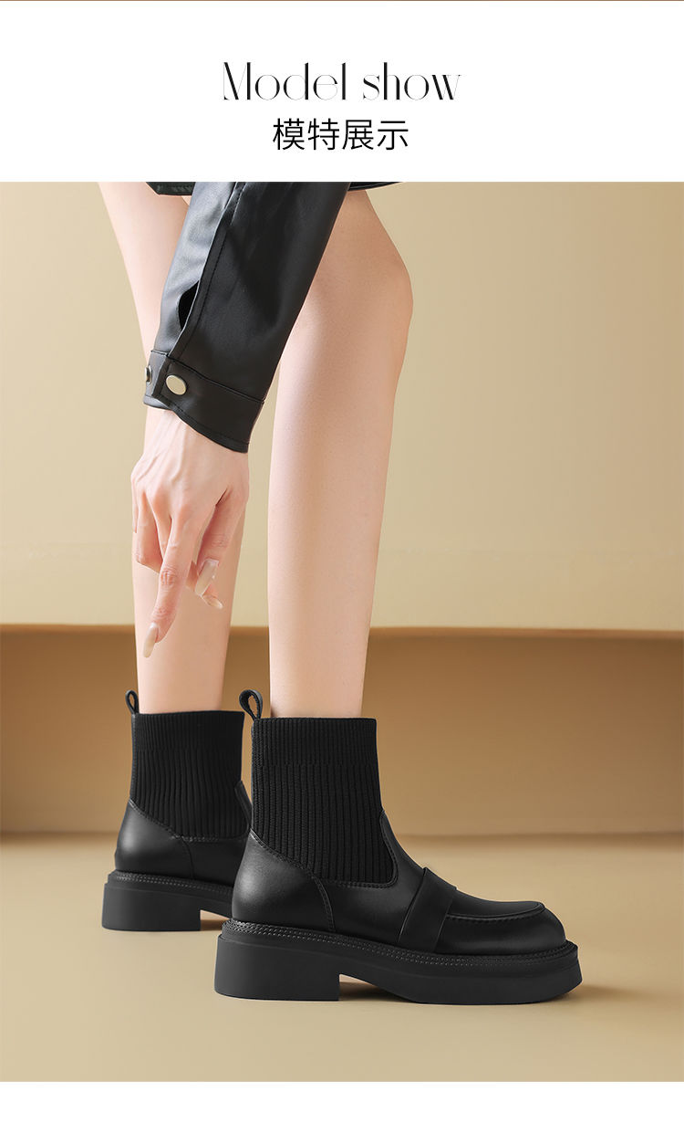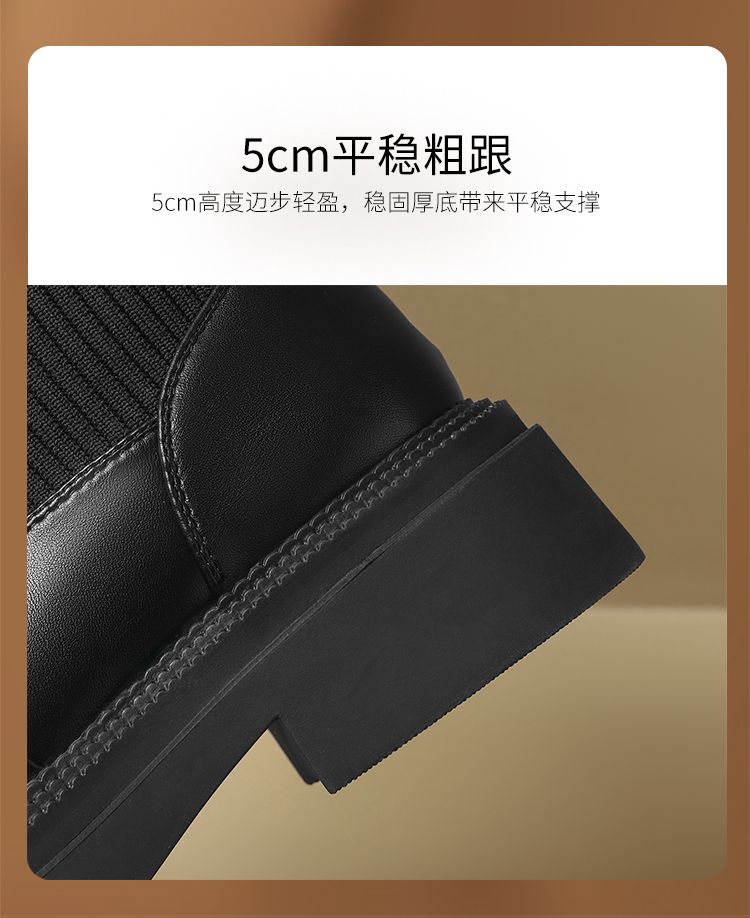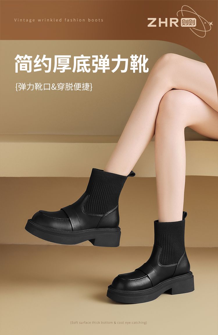 ZHR则则洋气瘦瘦靴法式复古短靴2024新款气质百搭弹力靴厚底女靴