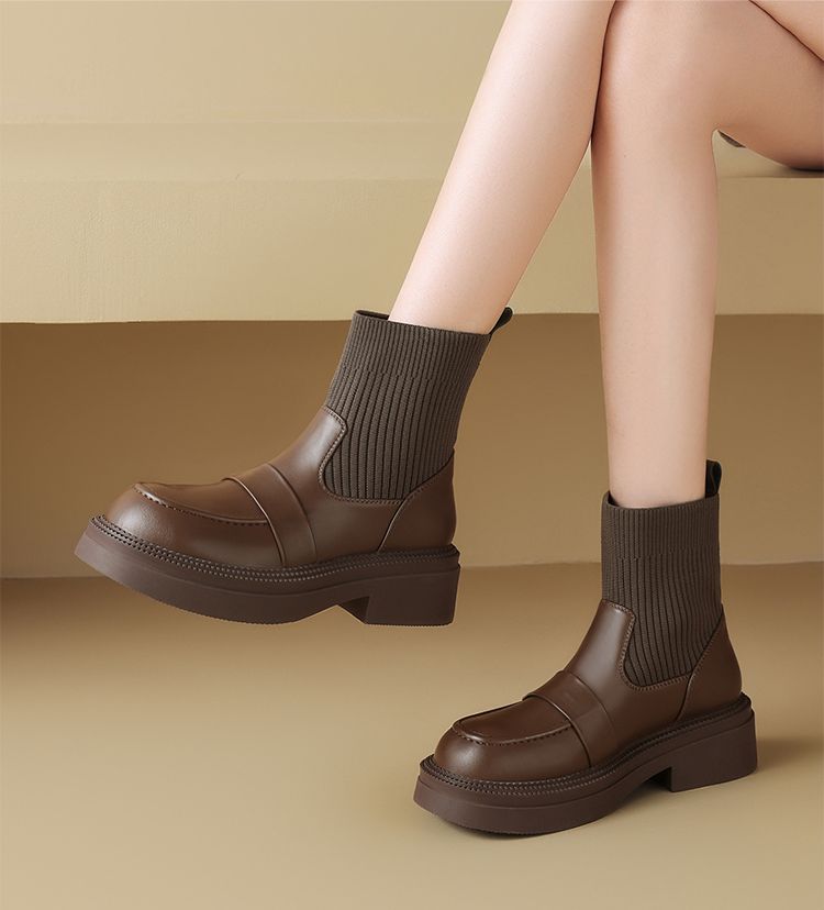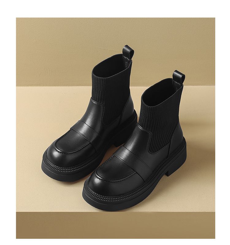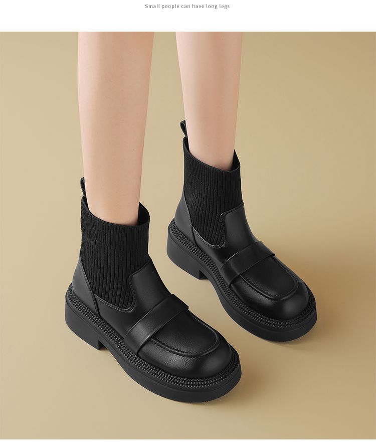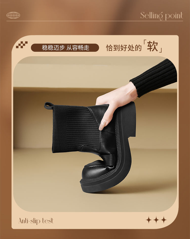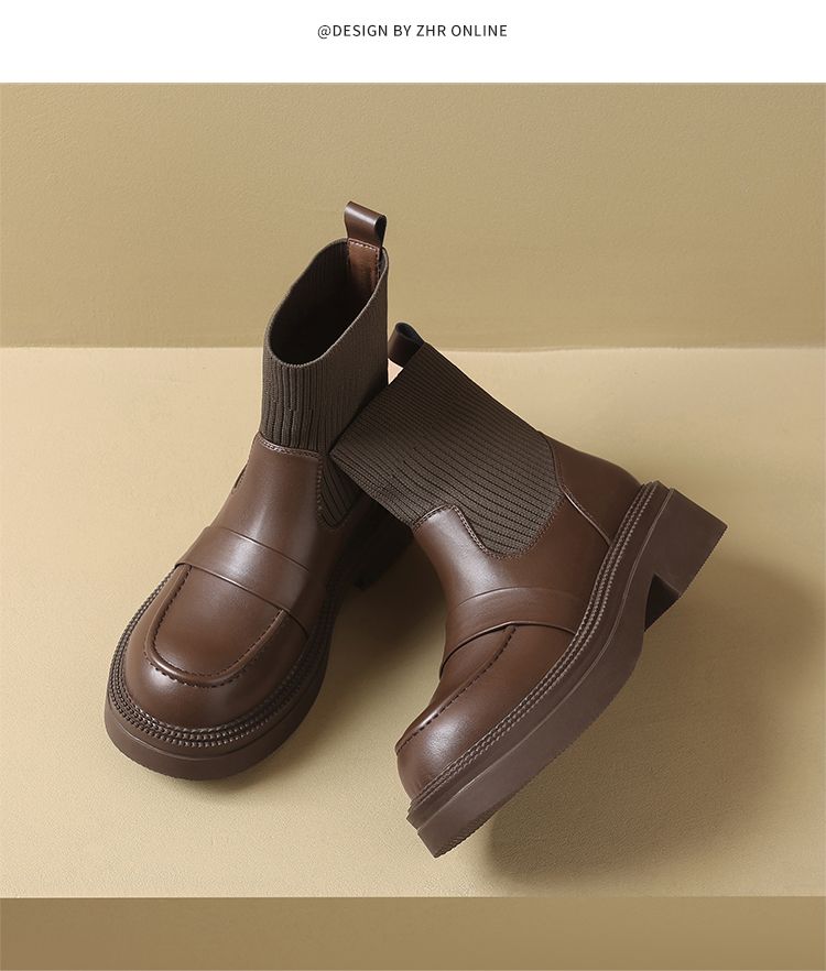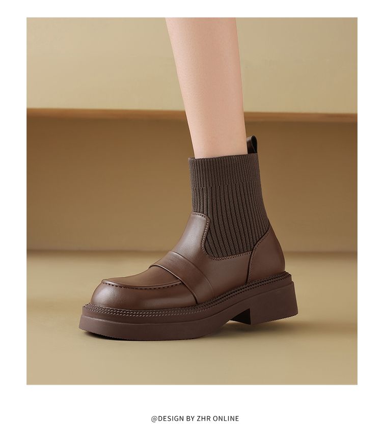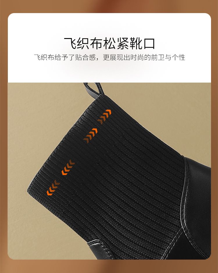 ZHR则则洋气瘦瘦靴法式复古短靴2024新款气质百搭弹力靴厚底女靴