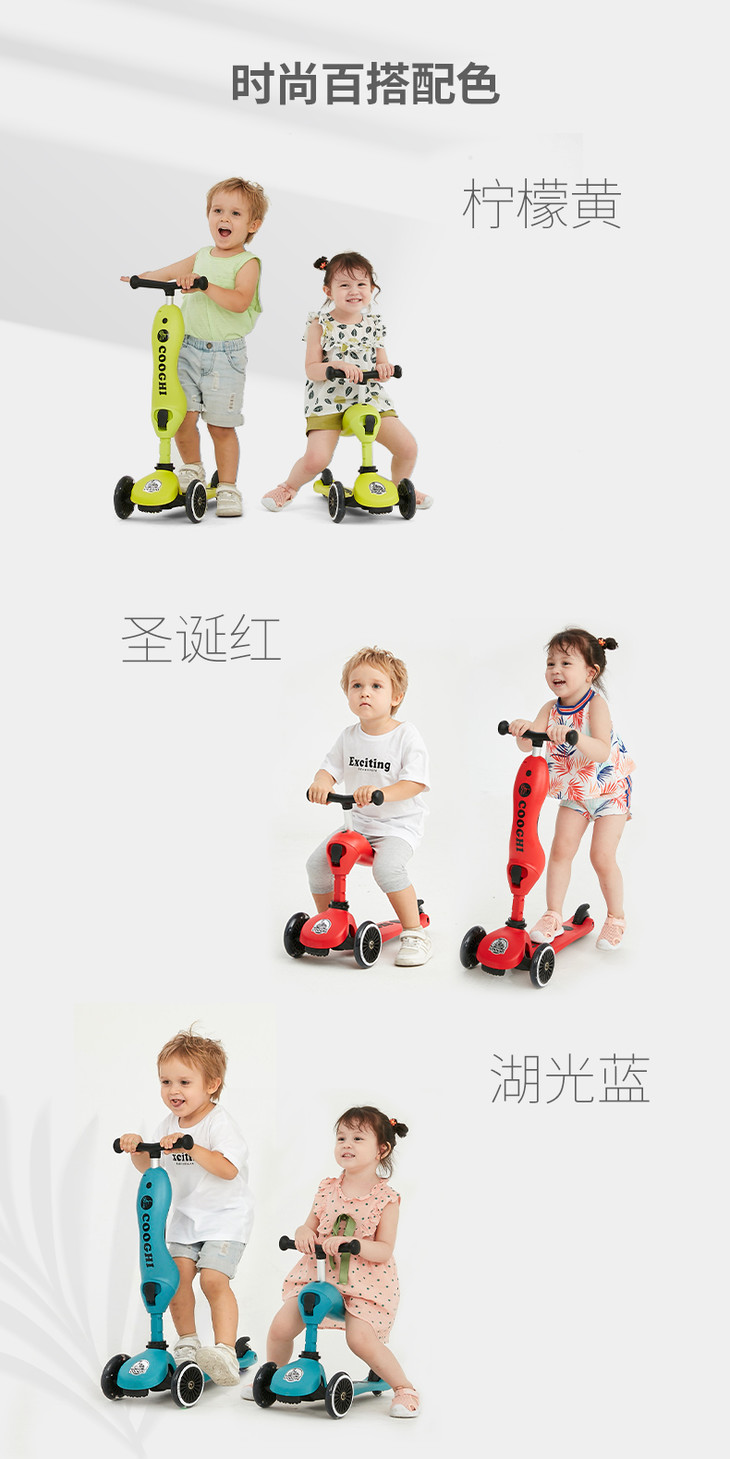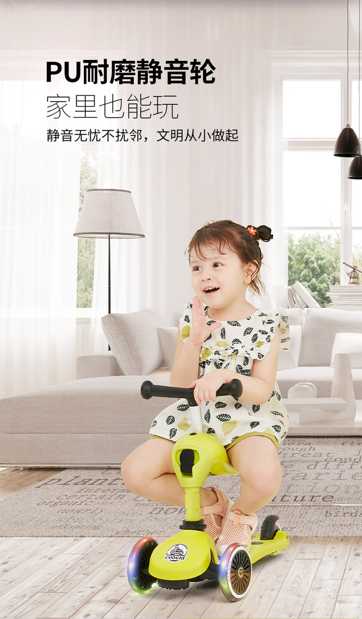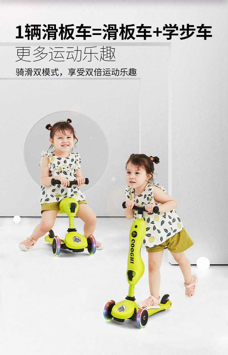 COOGHI酷骑二合一儿童滑板车发光1岁可坐初学者滑车(发光款V1/V2/V3)