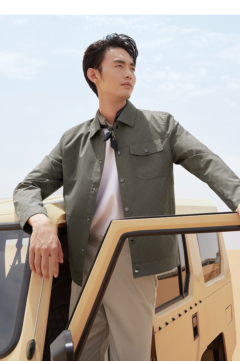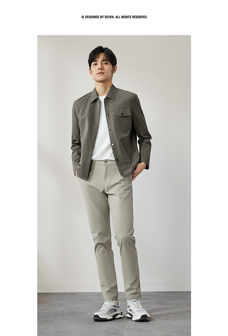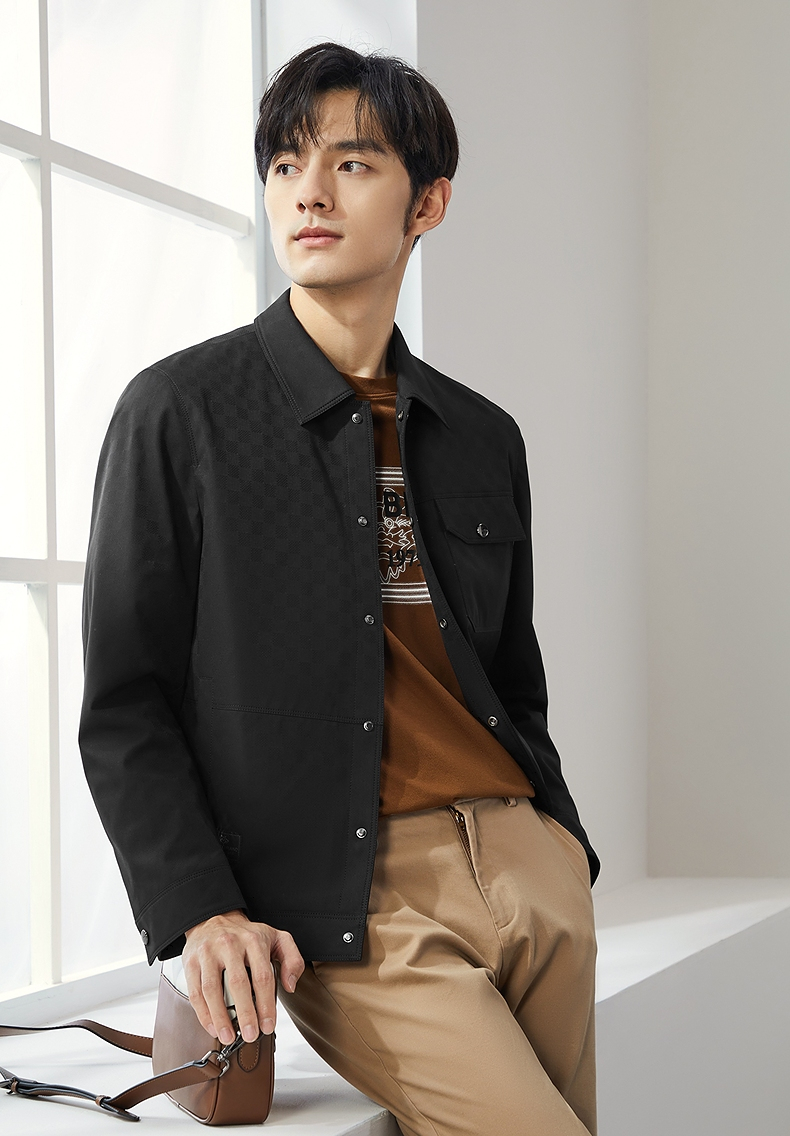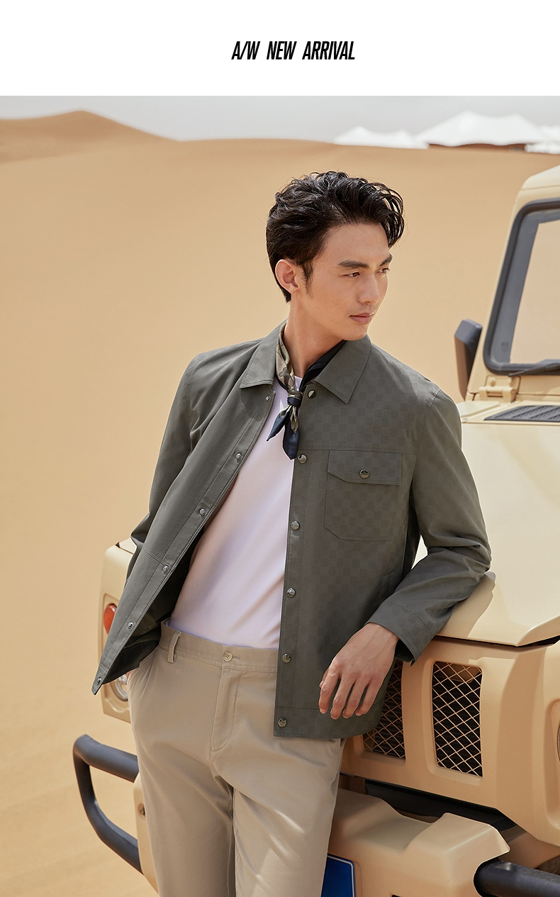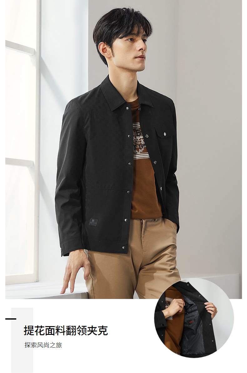 柒牌翻领夹克男秋季新款时尚休闲工装风中青年格纹提花茄克衫外套 127K70080