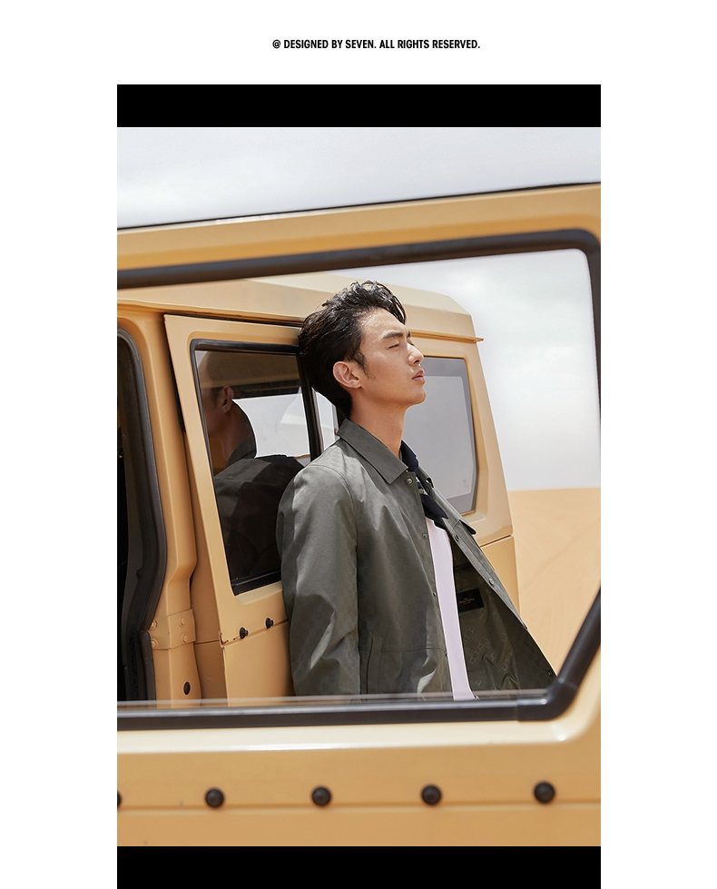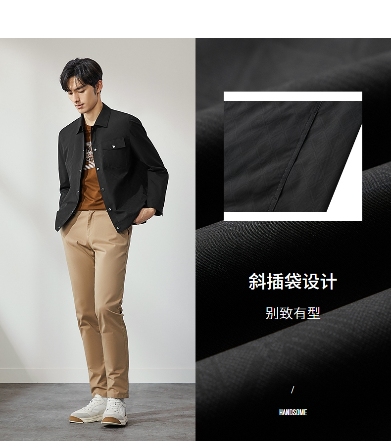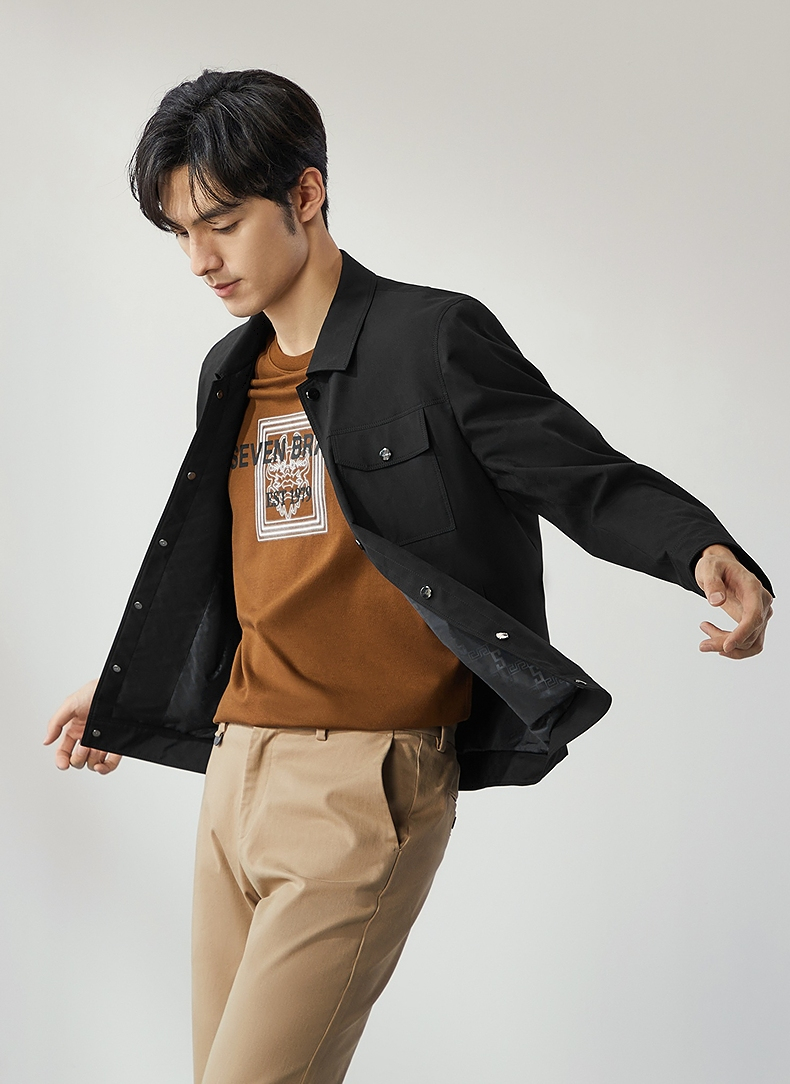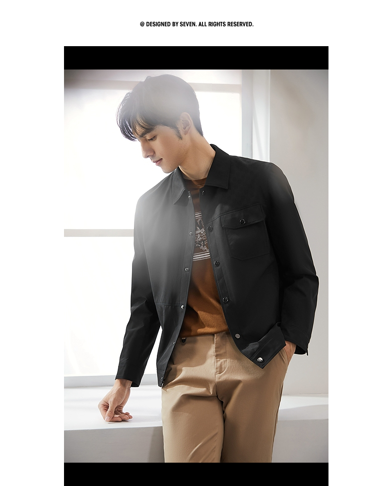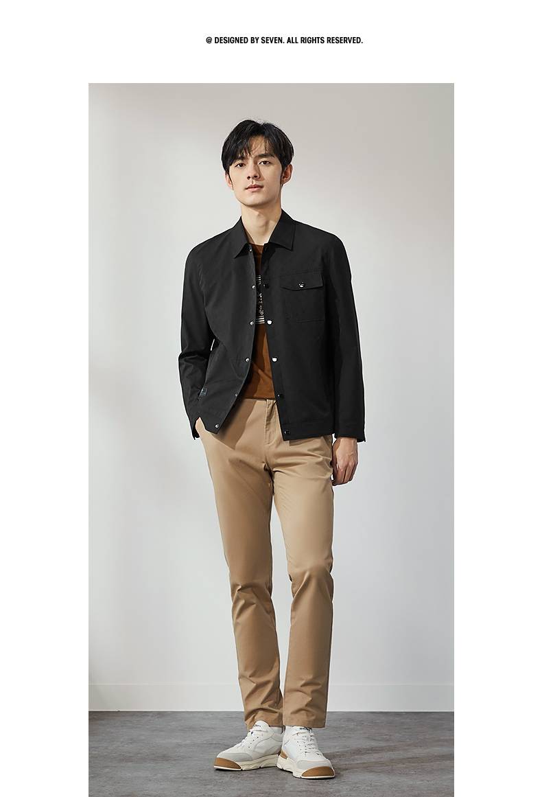 柒牌翻领夹克男秋季新款时尚休闲工装风中青年格纹提花茄克衫外套 127K70080