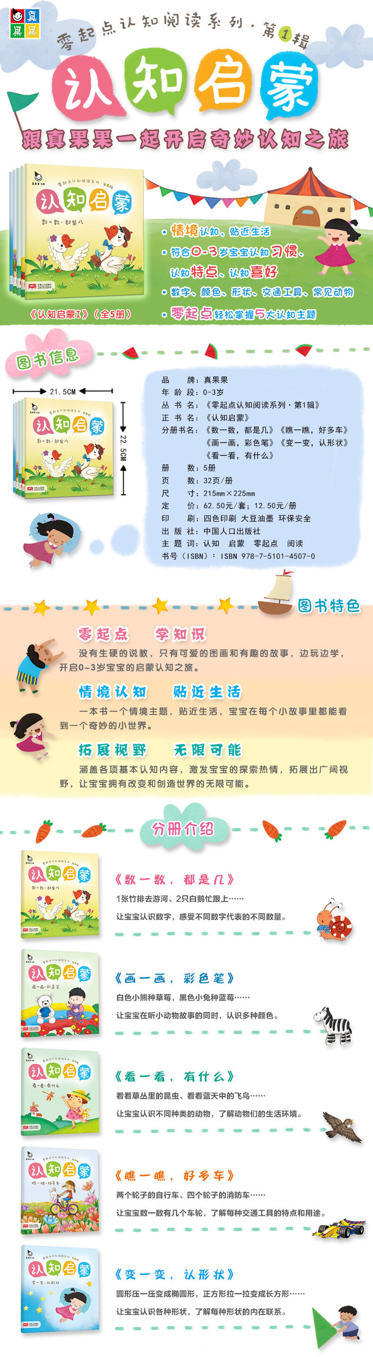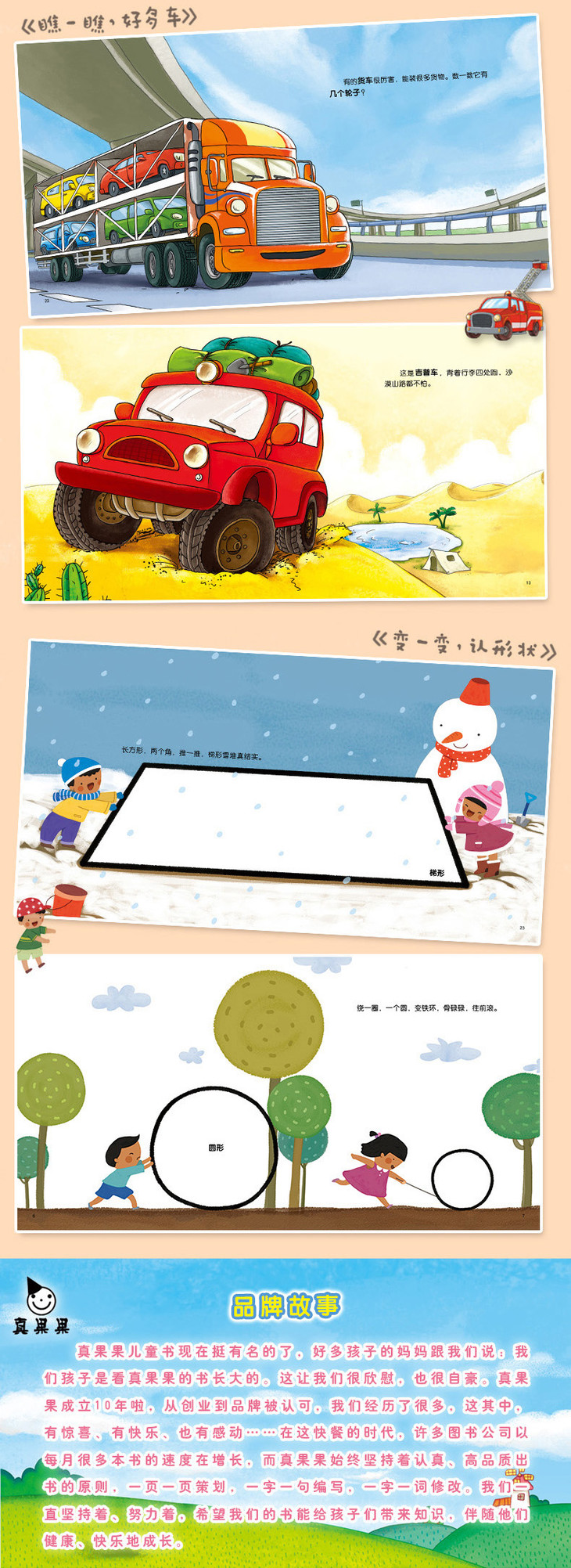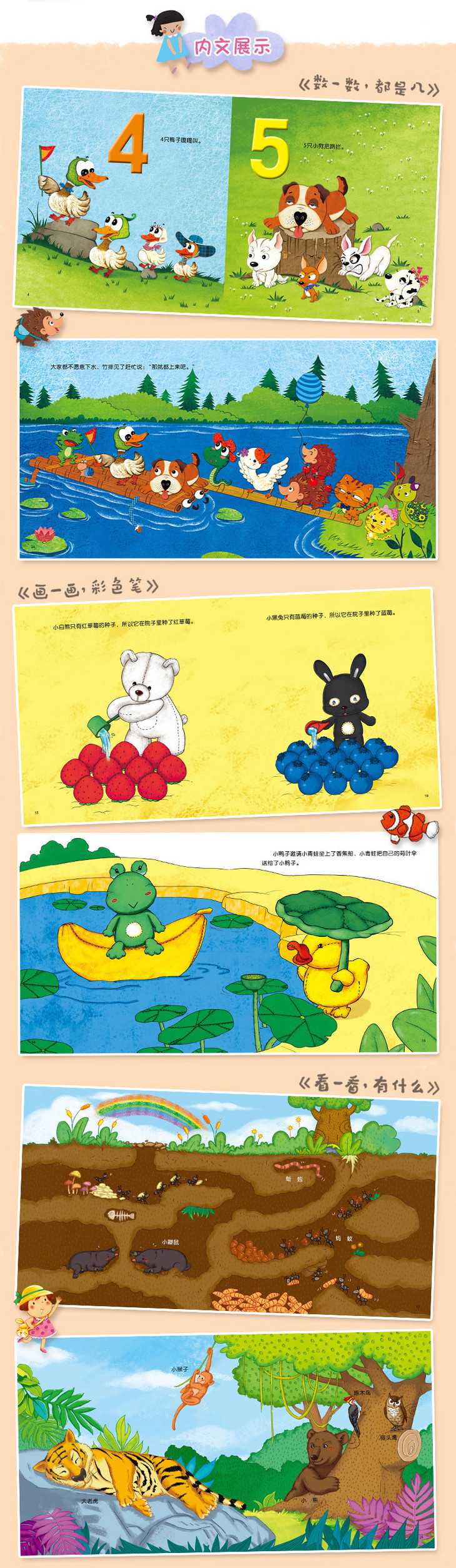 1.符合宝宝的认知习惯:按照类别进行分类,一本一个主题,将丰富的认知常识融入简单有趣的故事中,大大减少了宝宝的认知难度,让认知过程更加轻松、更加有效。