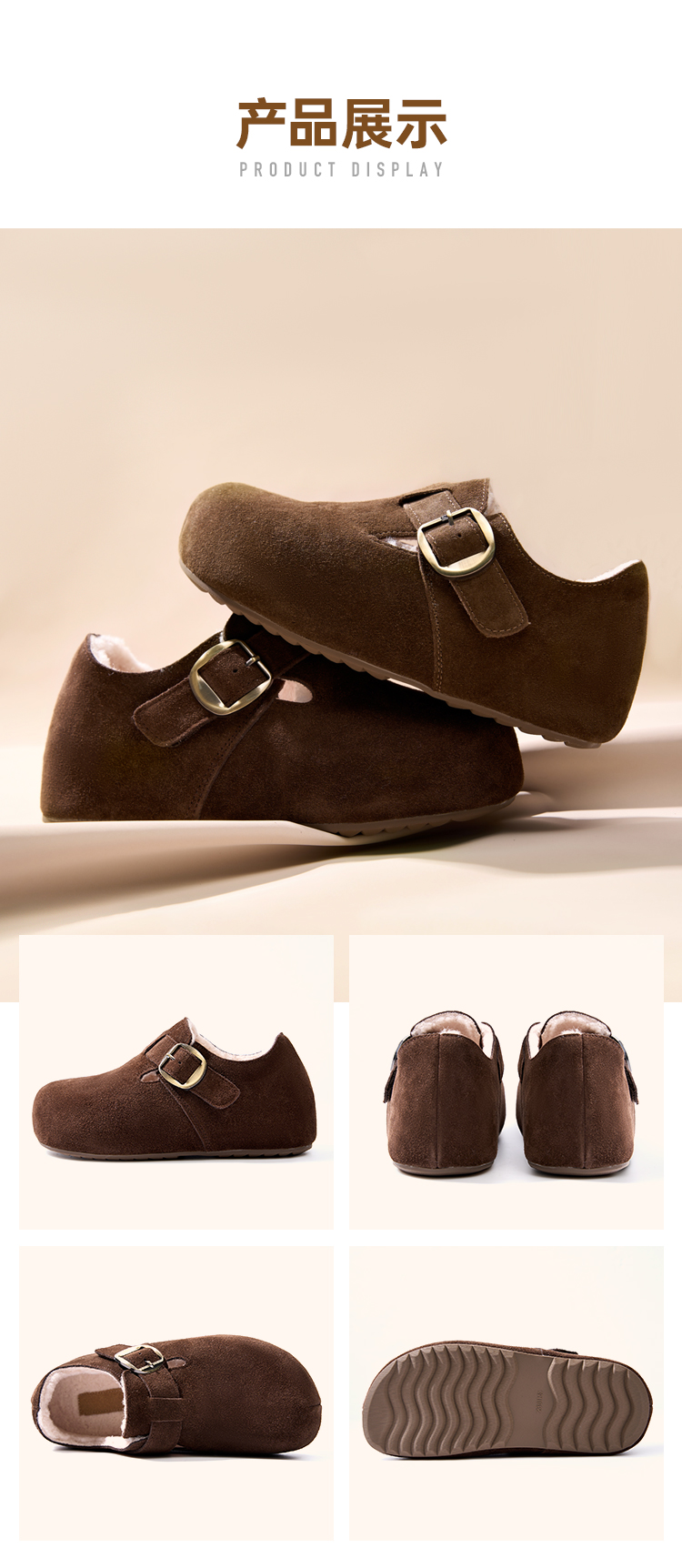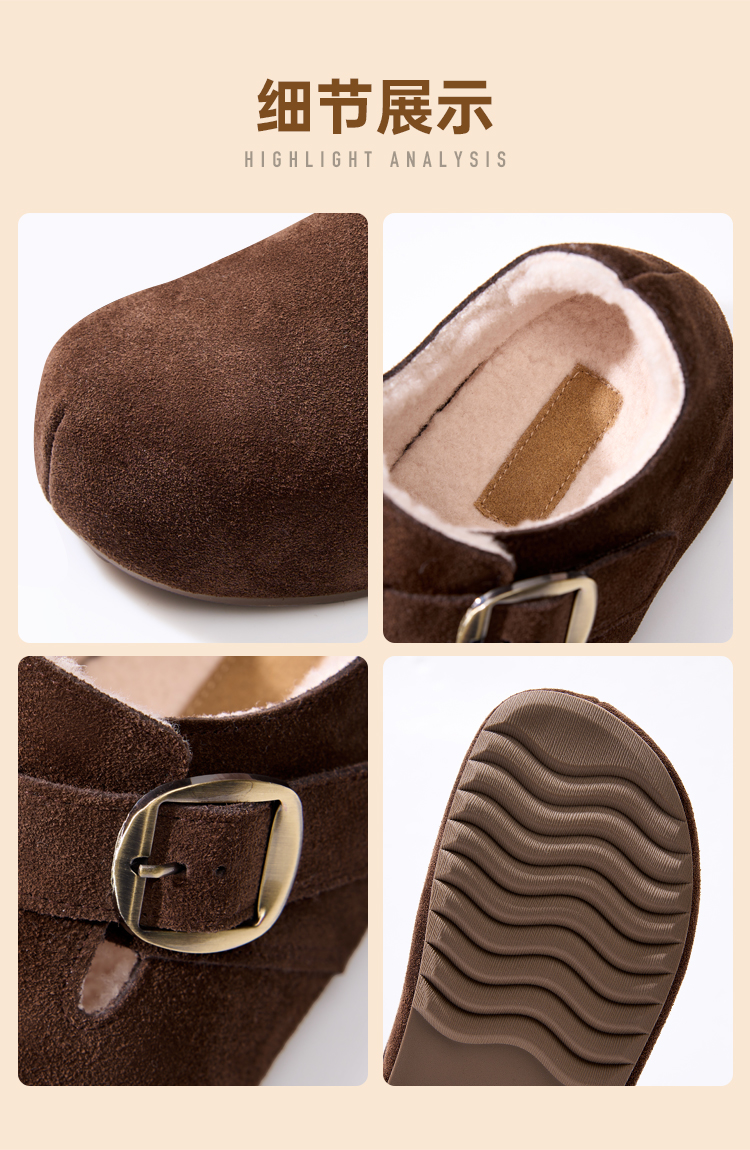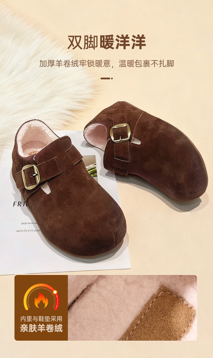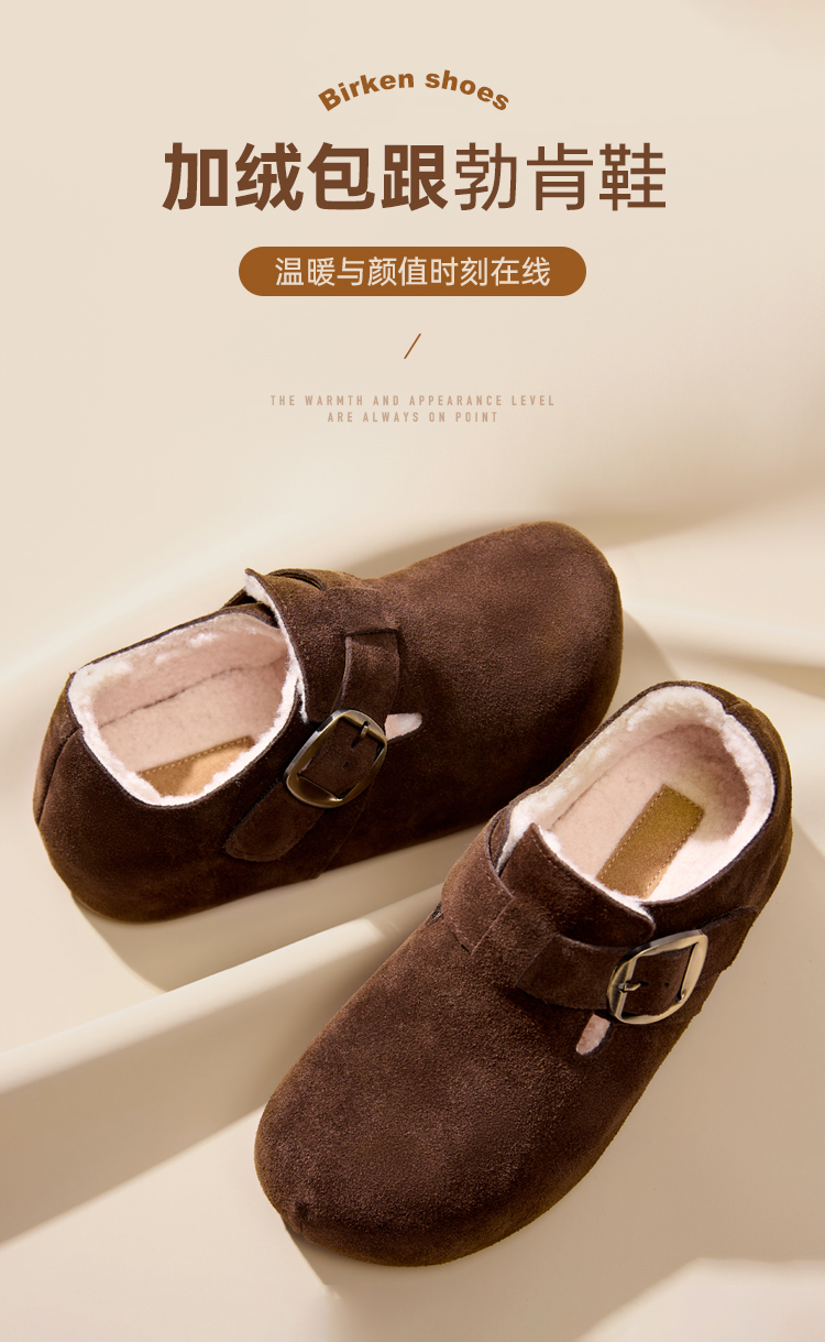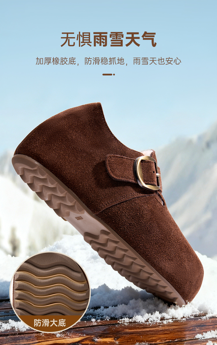 【实付满399送保温杯】【牛皮加绒包跟勃肯女鞋】加厚保暖棉鞋冬款通勤休闲鞋