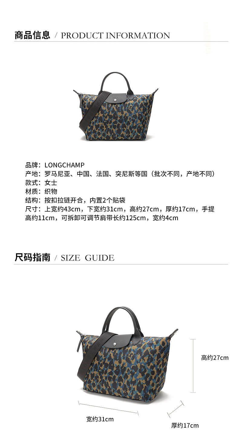 Longchamp/珑骧 2021款 女士LE PLIAGE系列中号织物短柄手提单肩包饺子包 1515 310