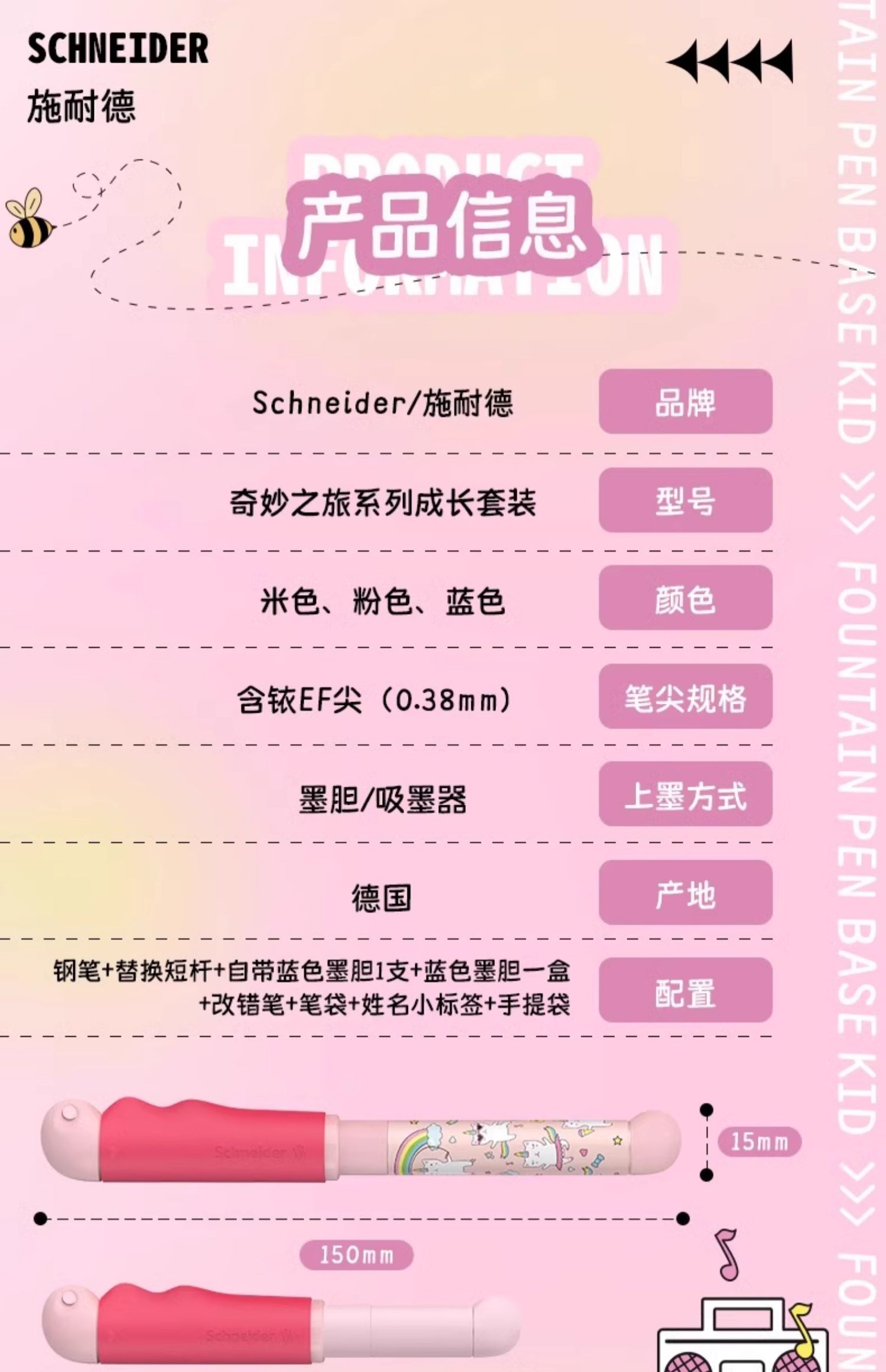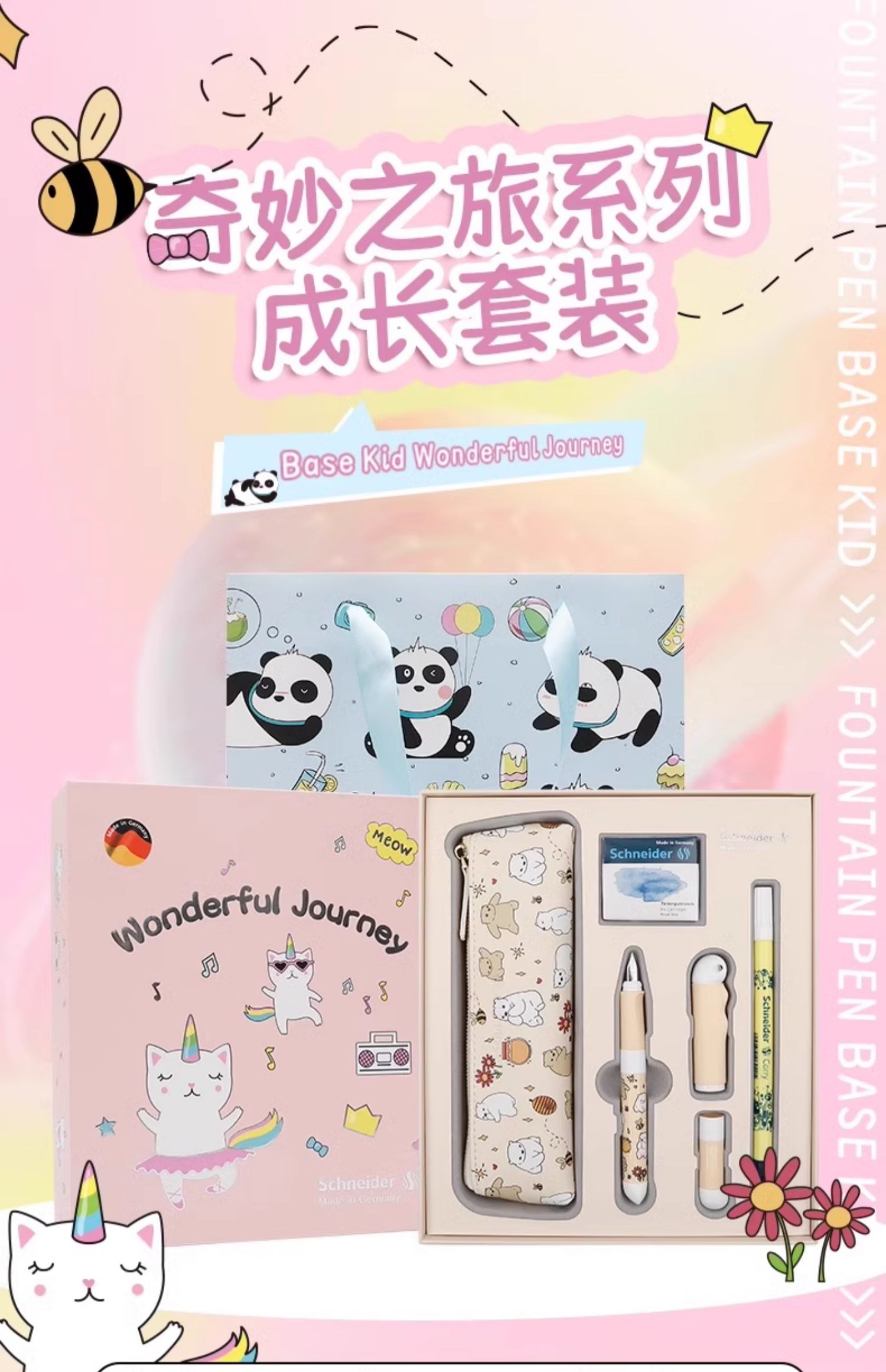 德国施耐德进口正姿钢笔学生专用成长礼盒套装小学生三年级练字EF尖0.35可擦矫女生男孩儿童文具生日送礼物品