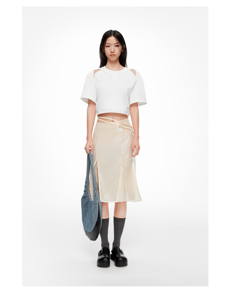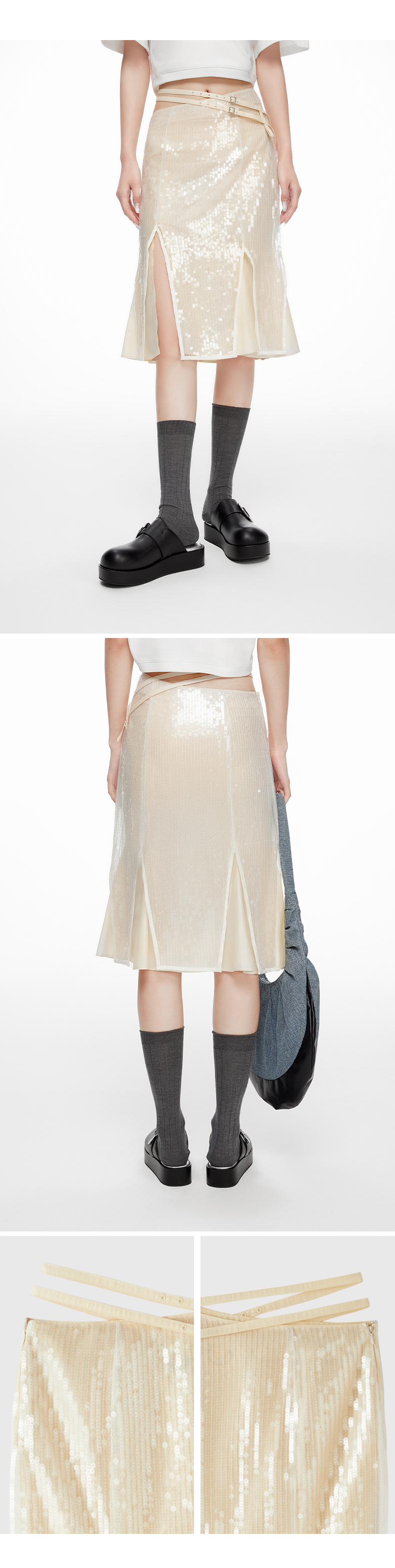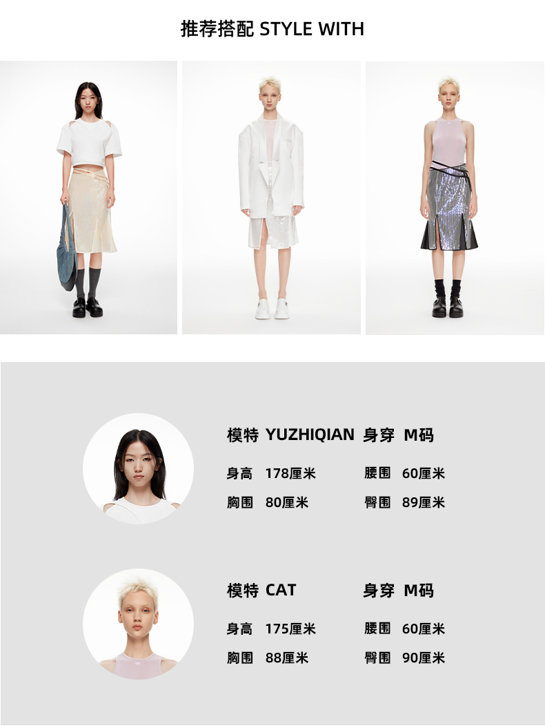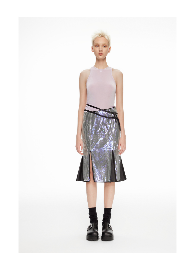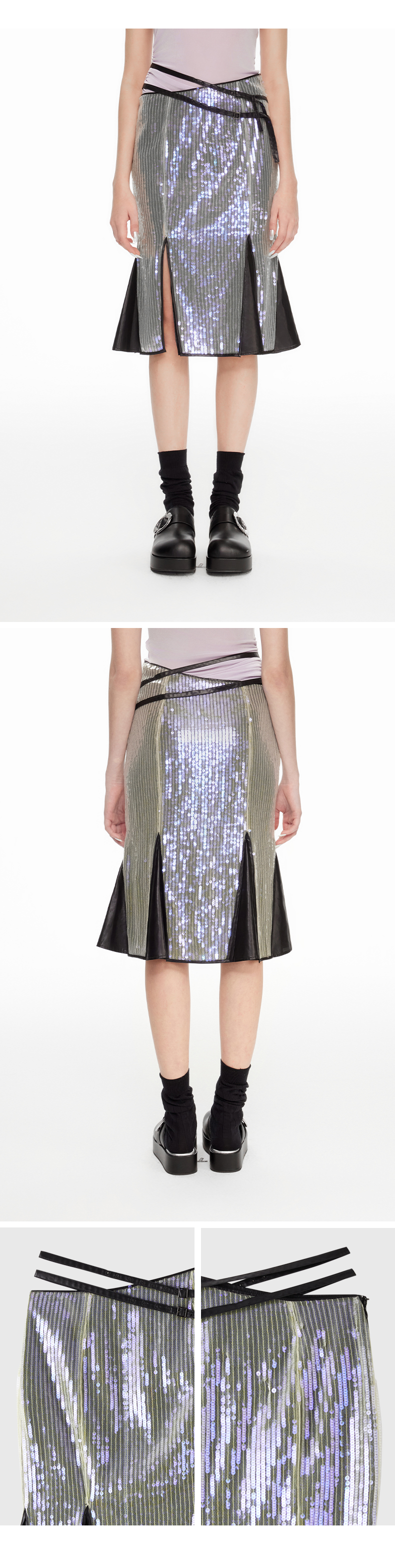 lost in echo2024春季新款设计师品牌亮片双扣带鱼尾半裙喇叭型女