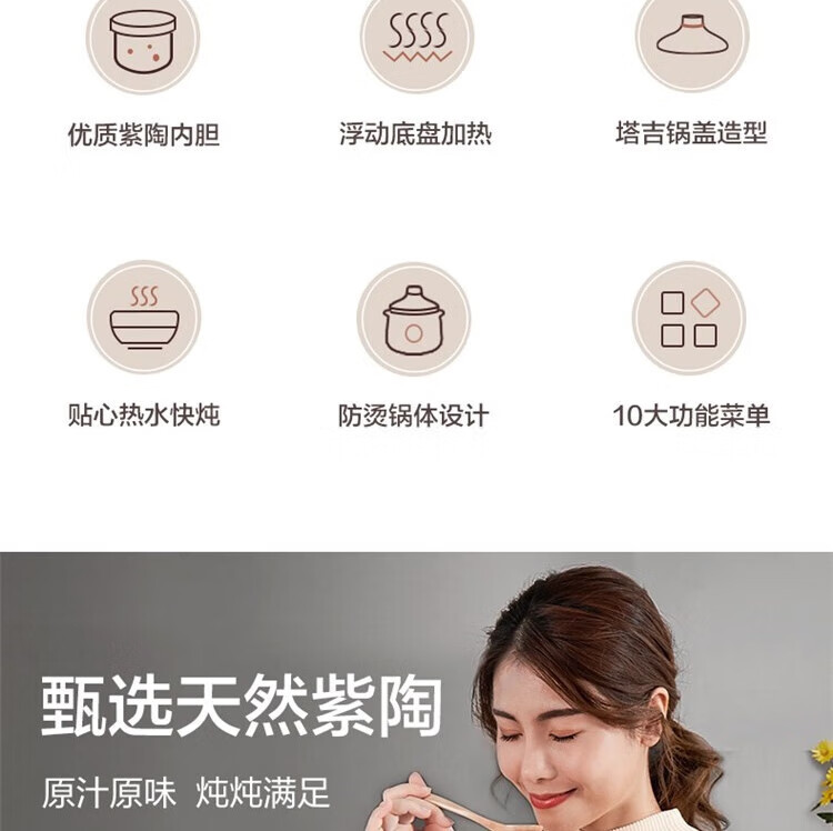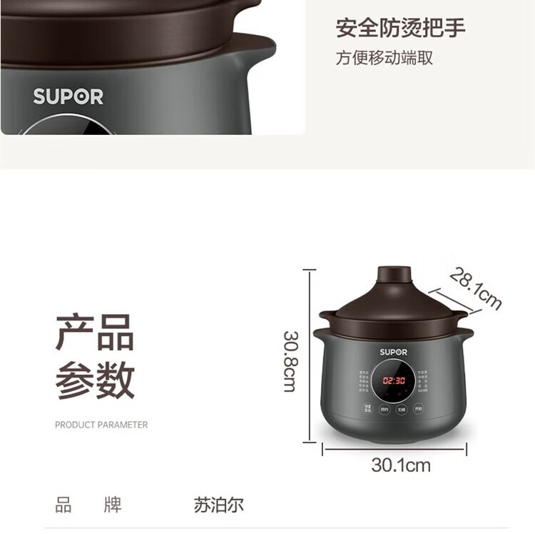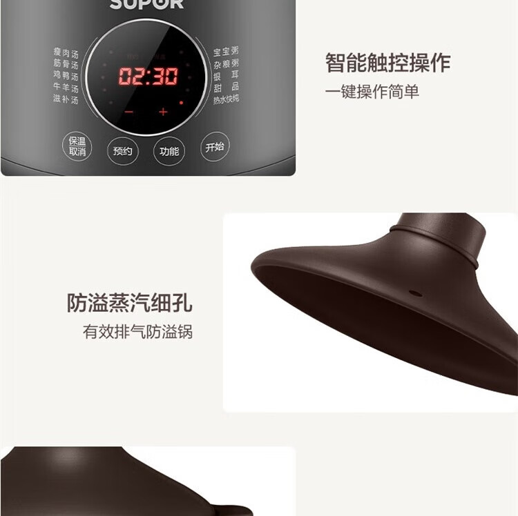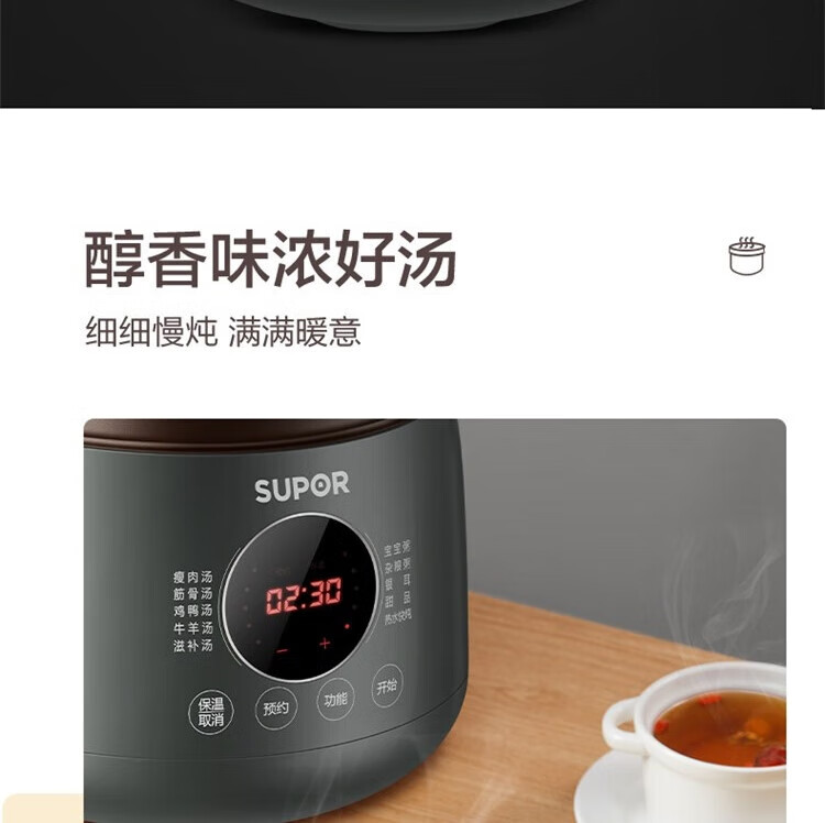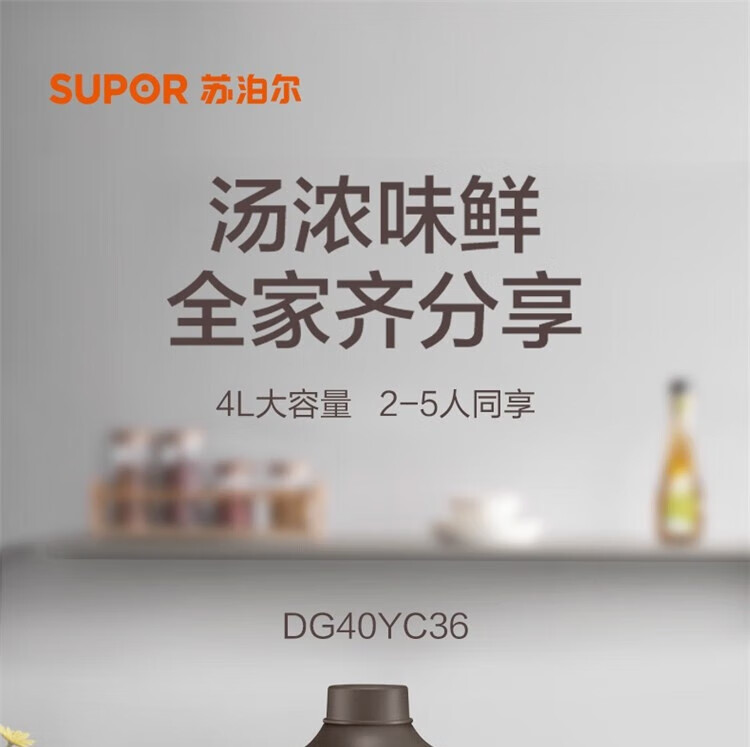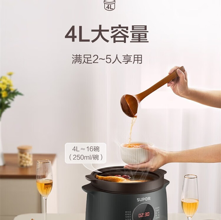 苏泊尔 SUPOR 4升电炖锅 电炖盅 煲汤锅炖汤锅 煮粥锅 紫陶内胆塔吉型锅盖 预约功能 DG40YC36