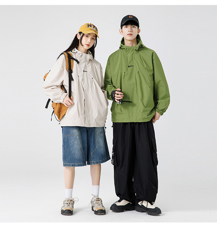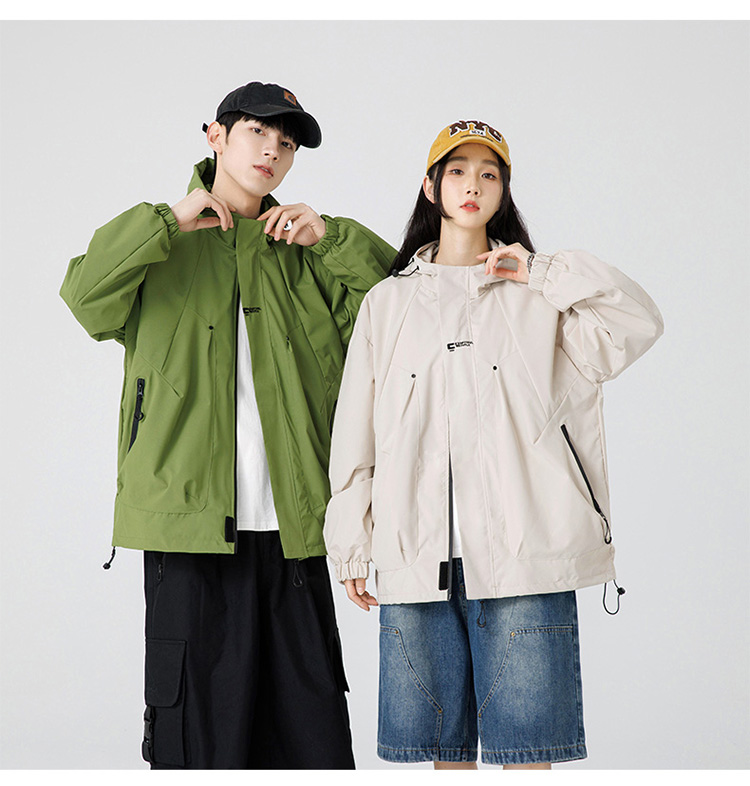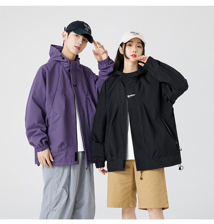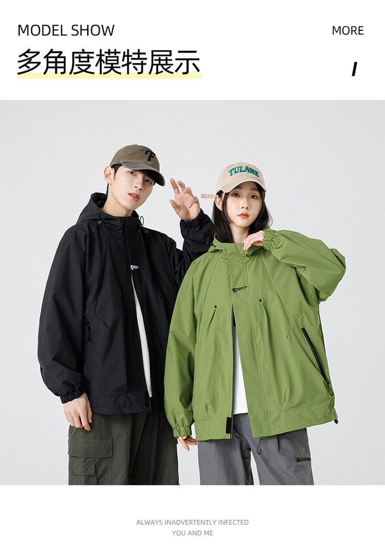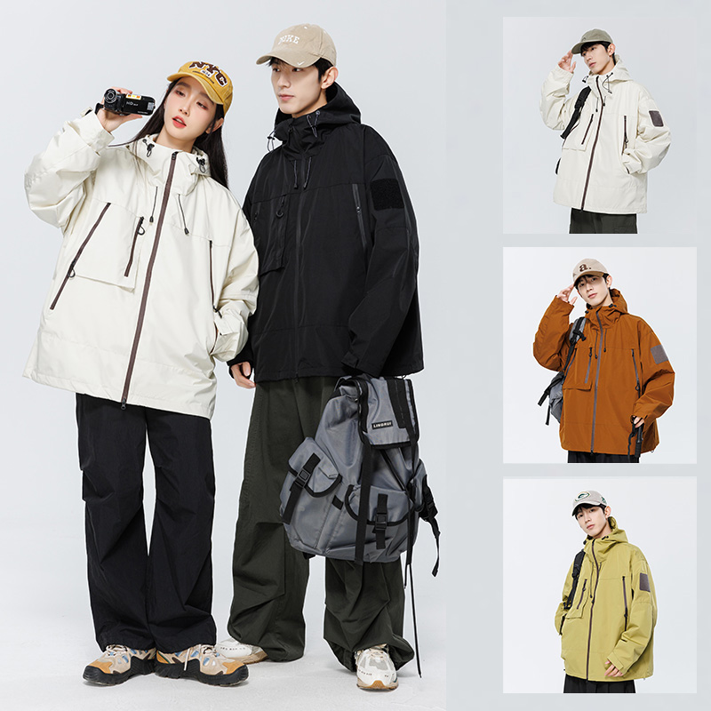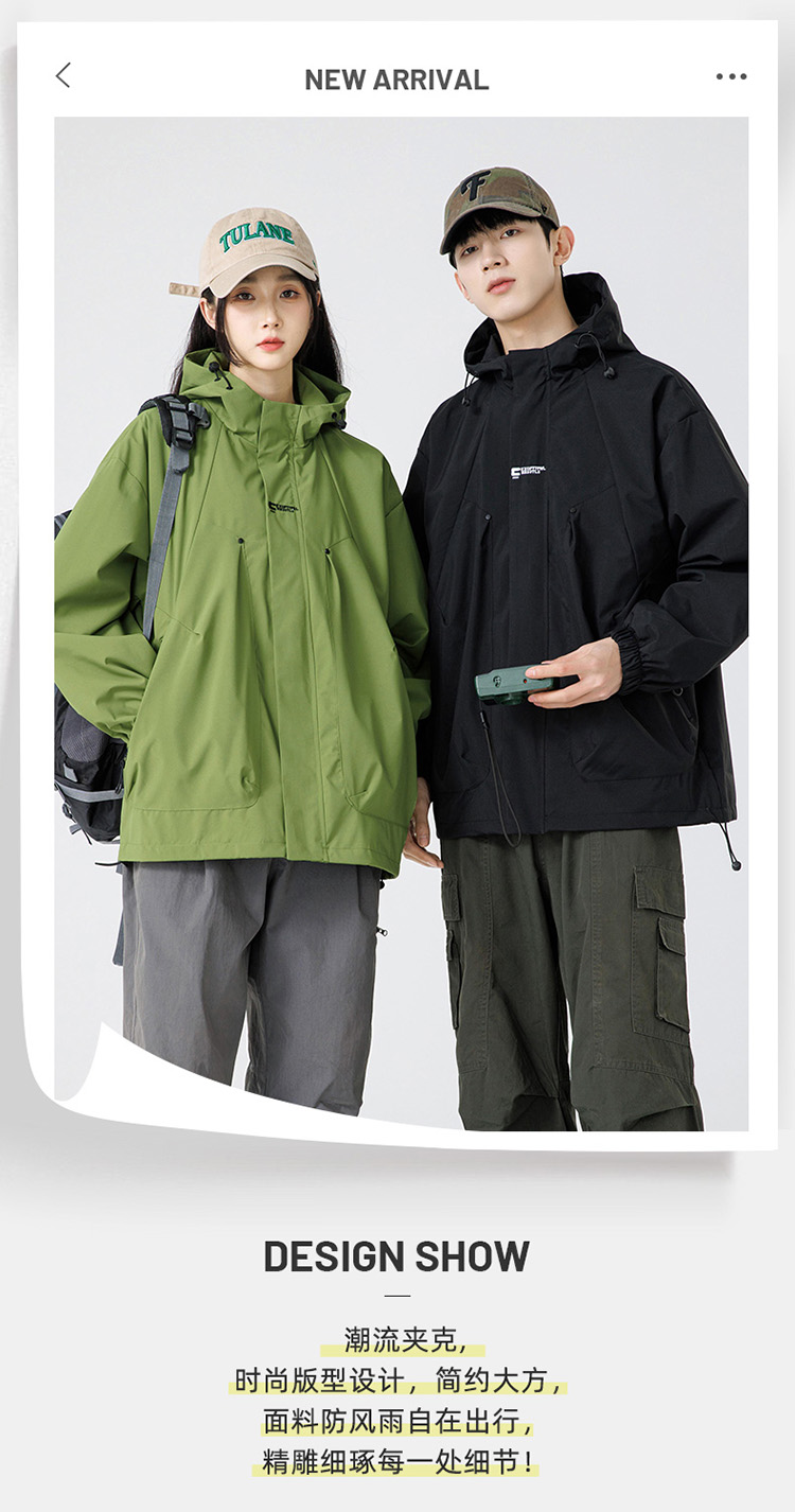 HOTDEMON春夏新款情侣款户外时尚百搭春秋季宽松工装防风防水夹克外套冲锋衣#745#J91