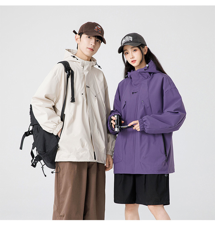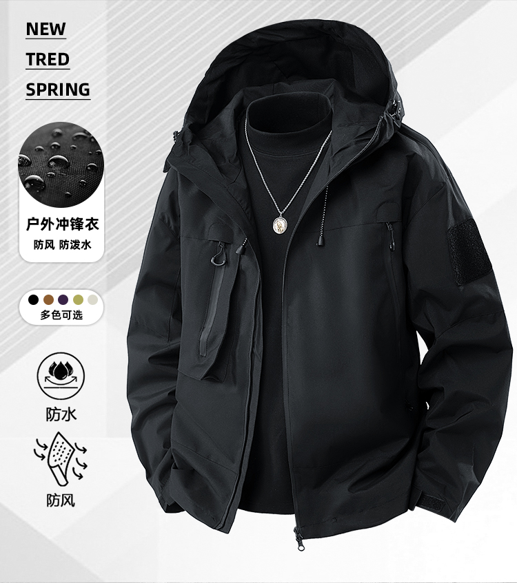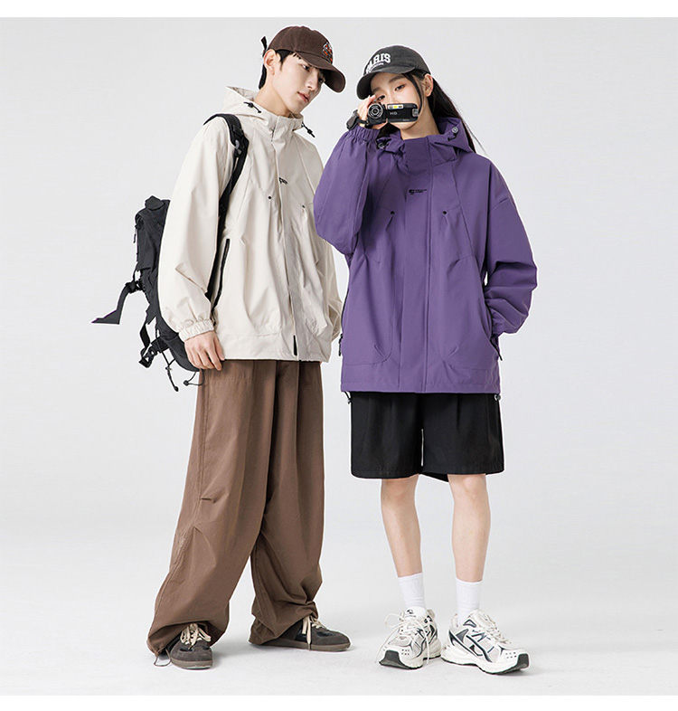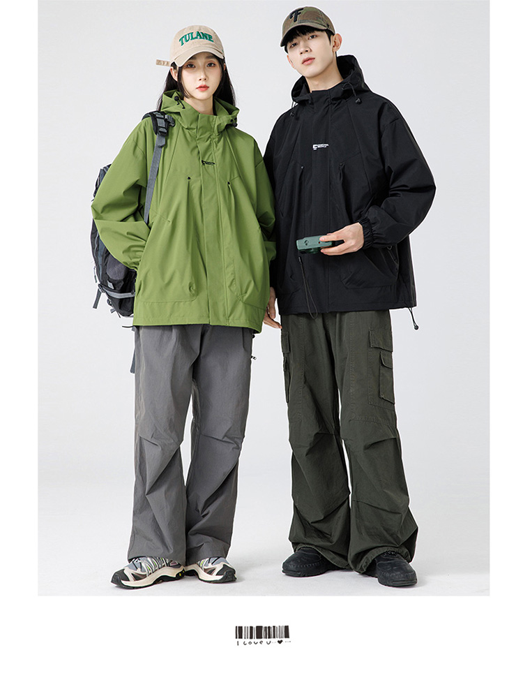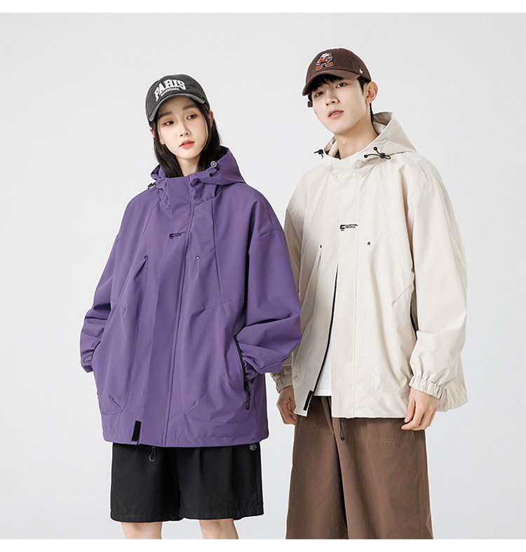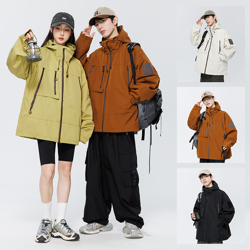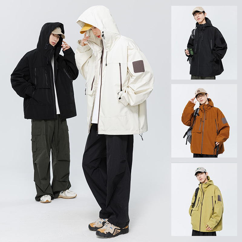 HOTDEMON春夏新款情侣款户外时尚百搭春秋季宽松工装防风防水夹克外套冲锋衣#745#J91