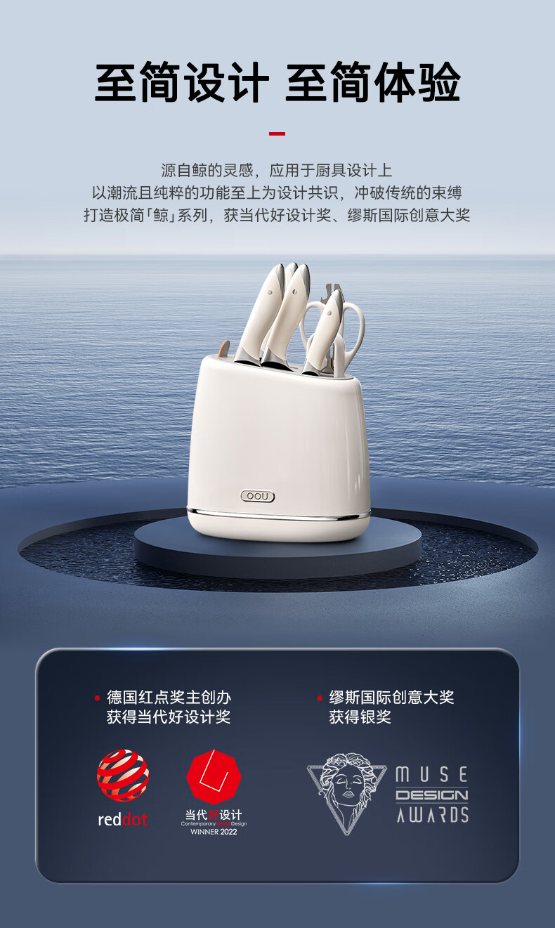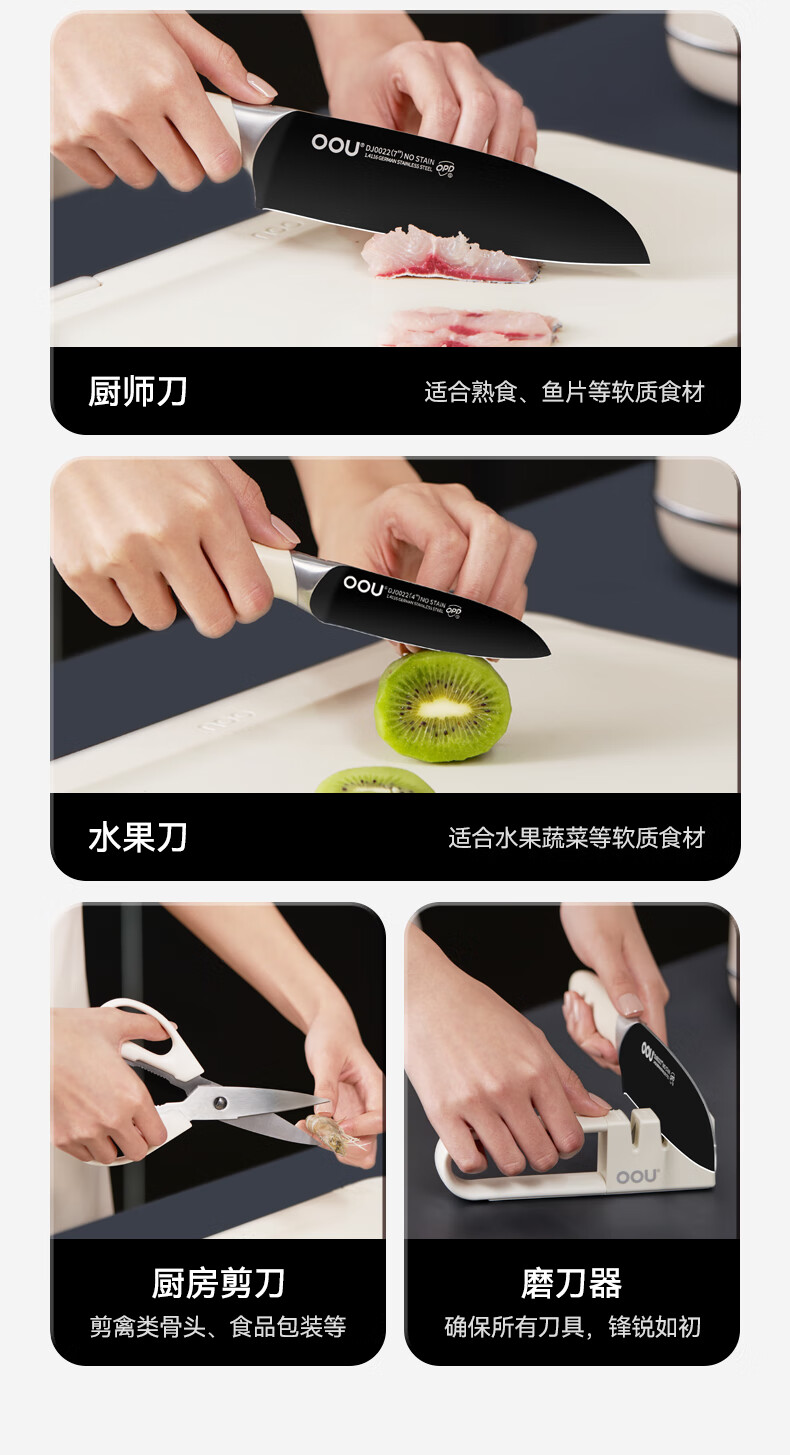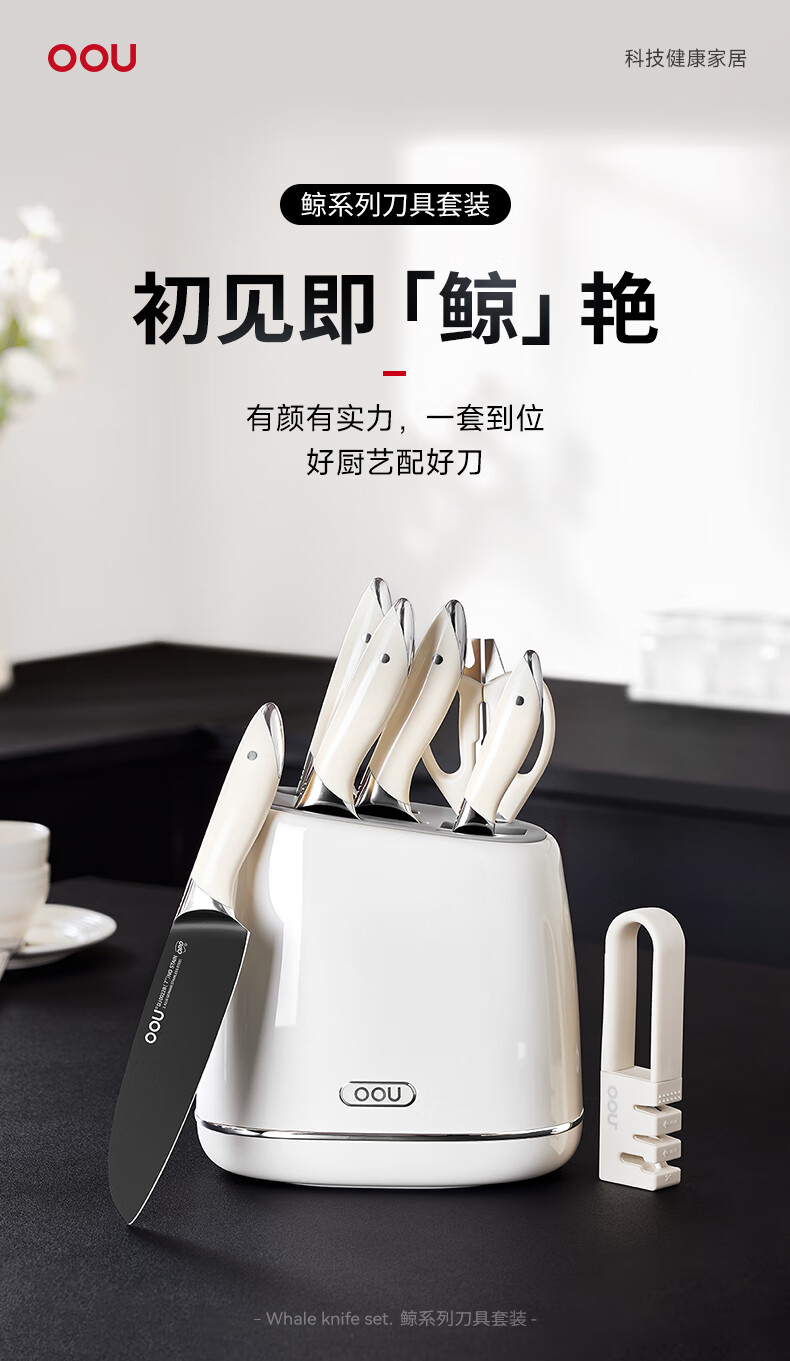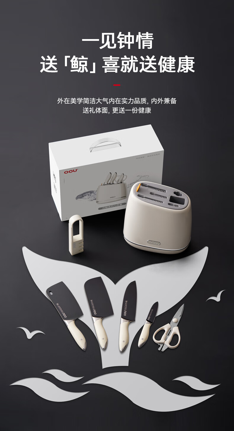 OOU!厨房全套刀具套装德国材质家用切菜刀剪刀水果刀鲸7件套