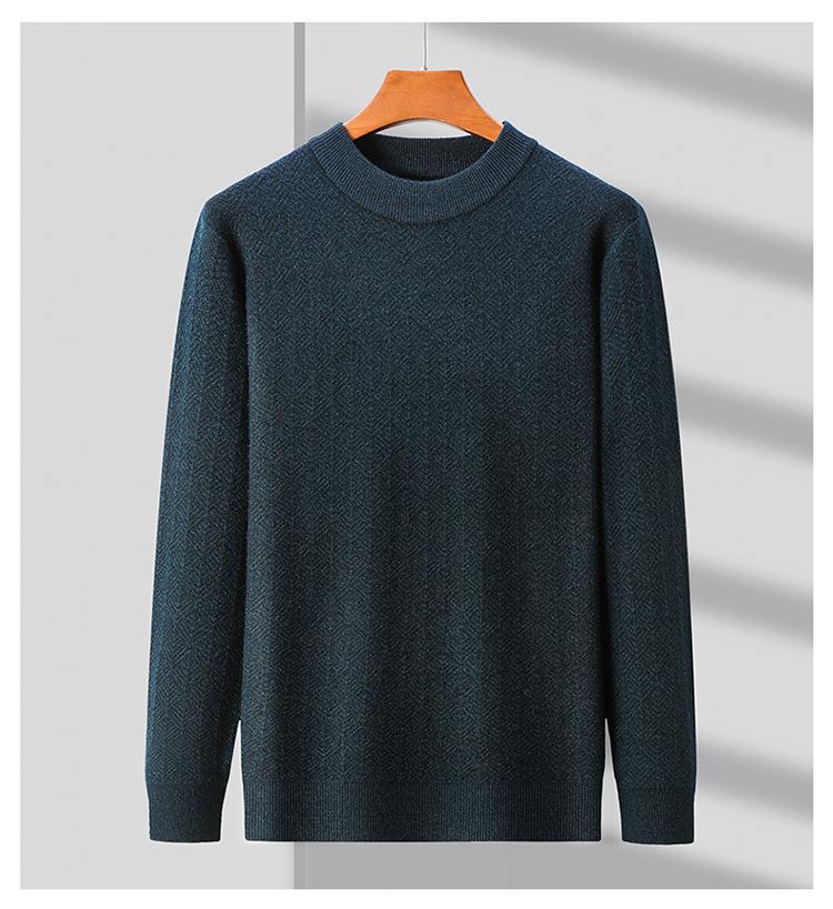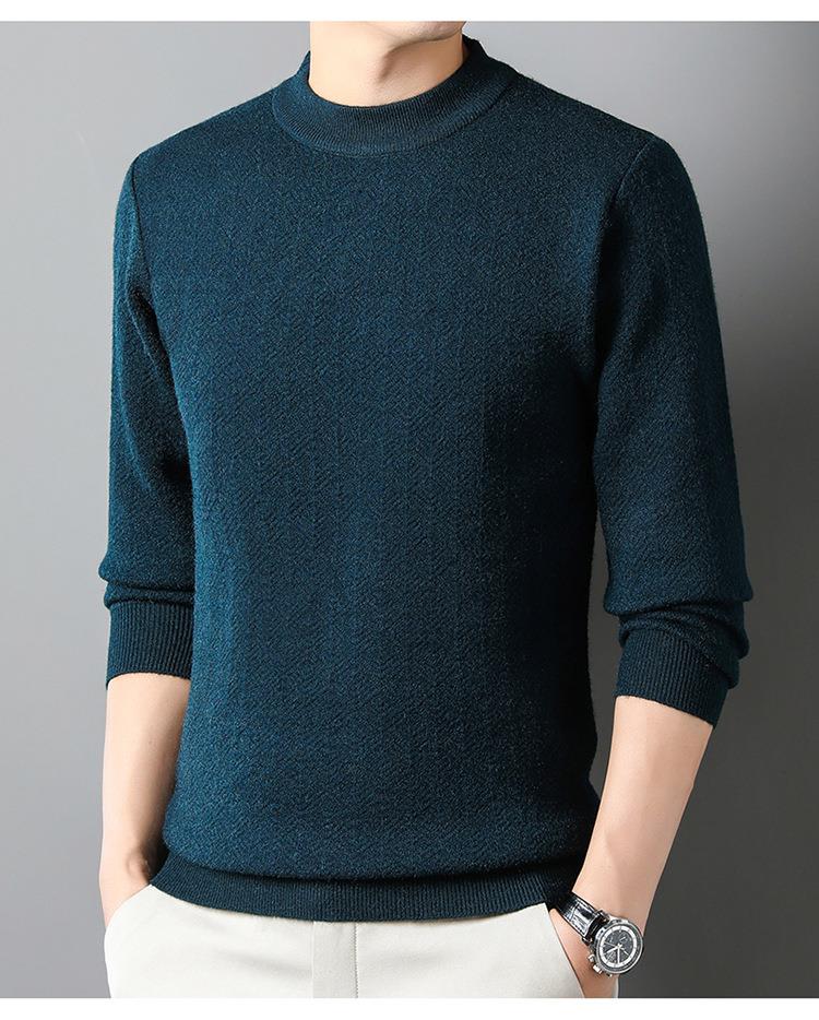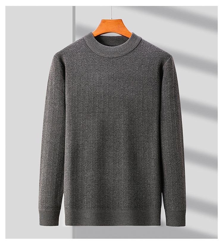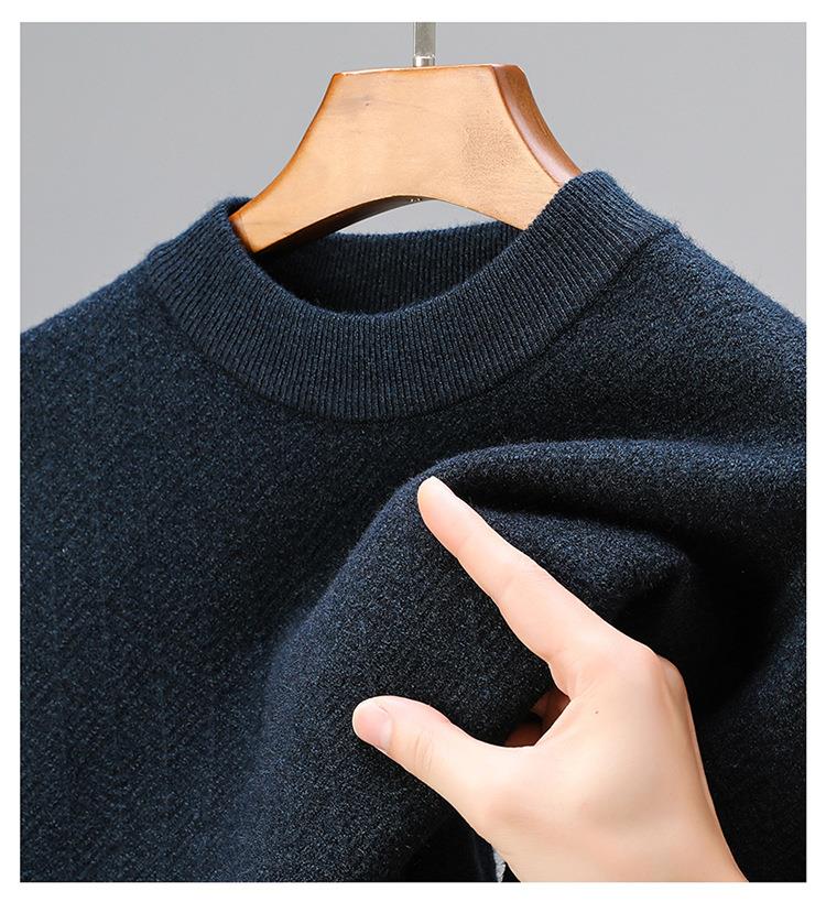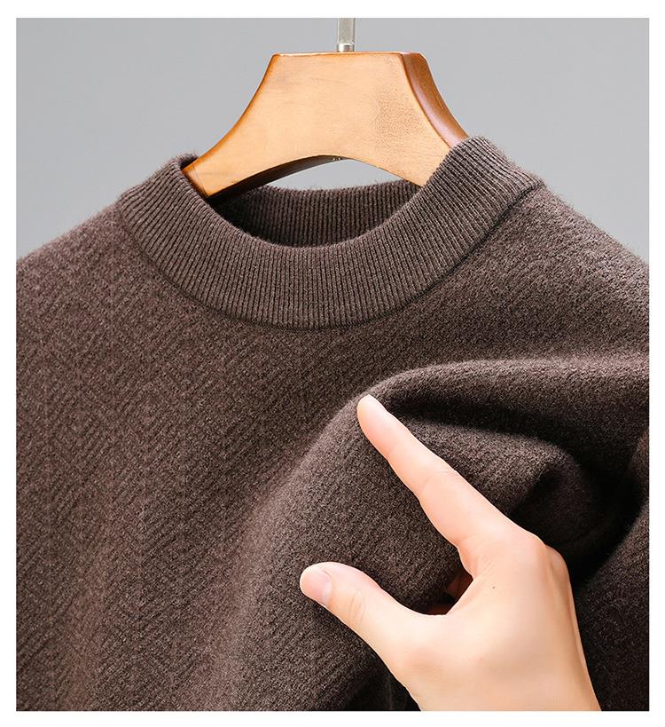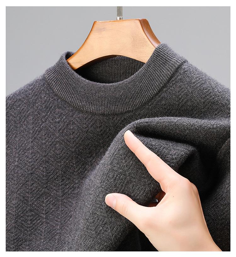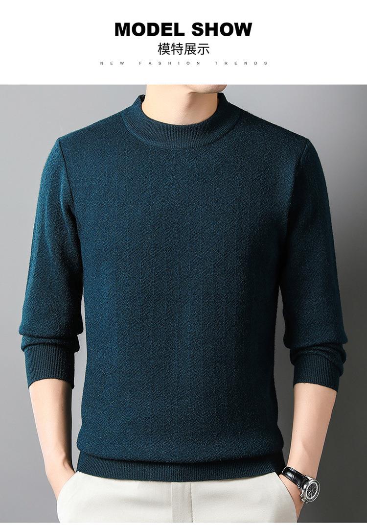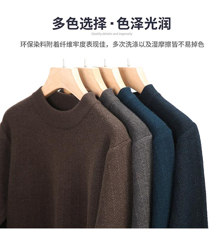 含羊毛加厚男士毛衣冬季新款提花圆领简约百搭保暖打底纯色羊毛衫