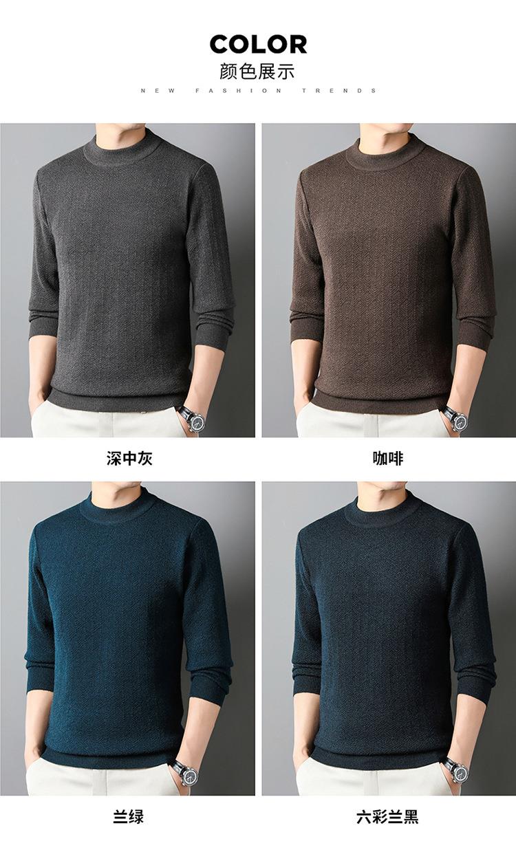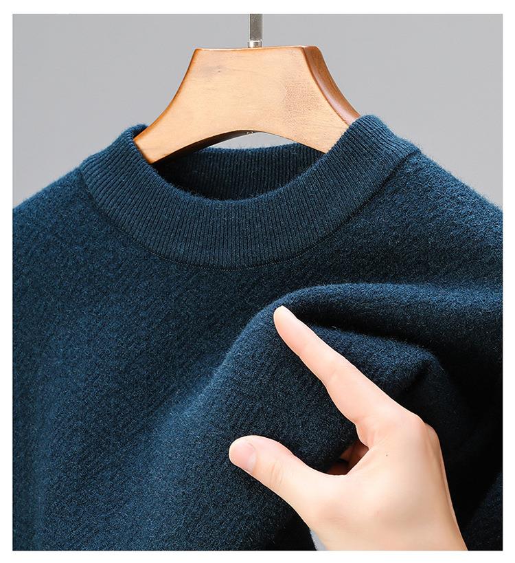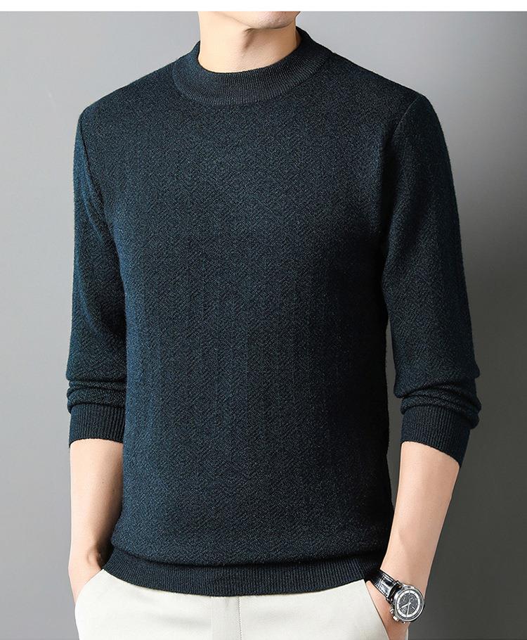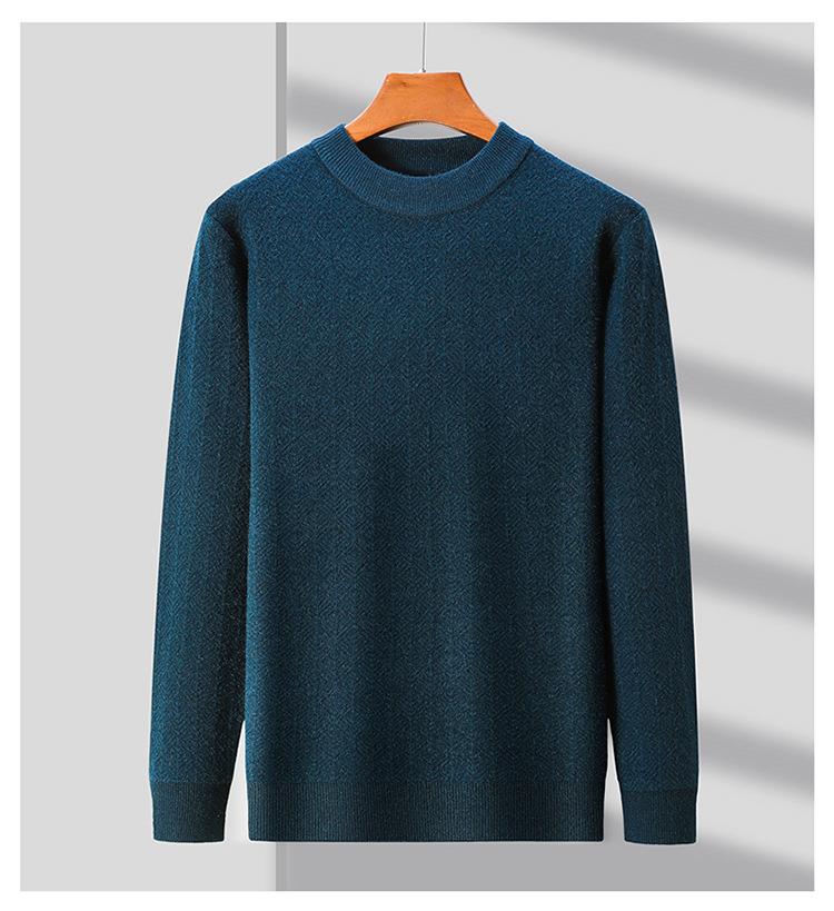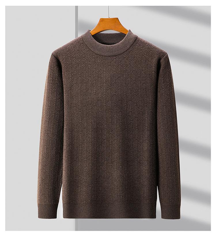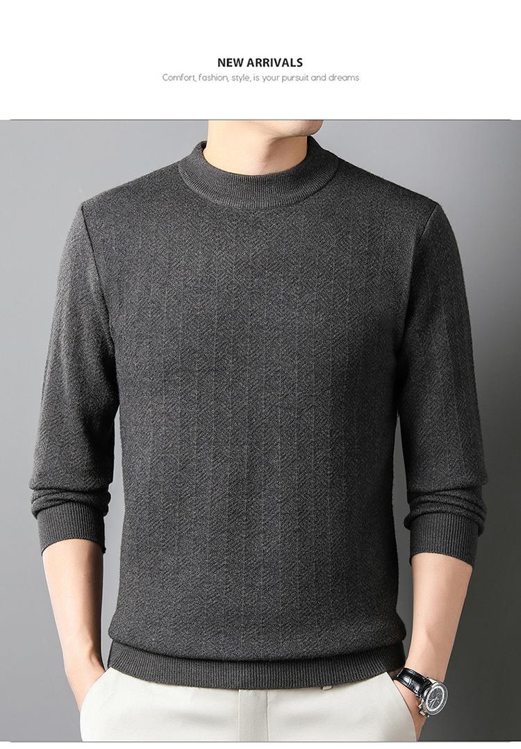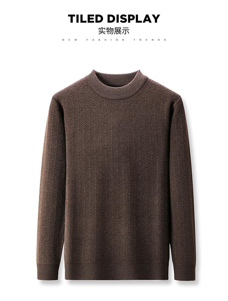 含羊毛加厚男士毛衣冬季新款提花圆领简约百搭保暖打底纯色羊毛衫