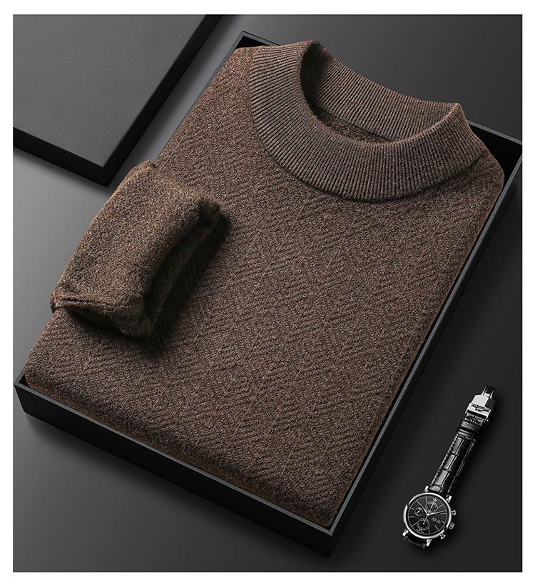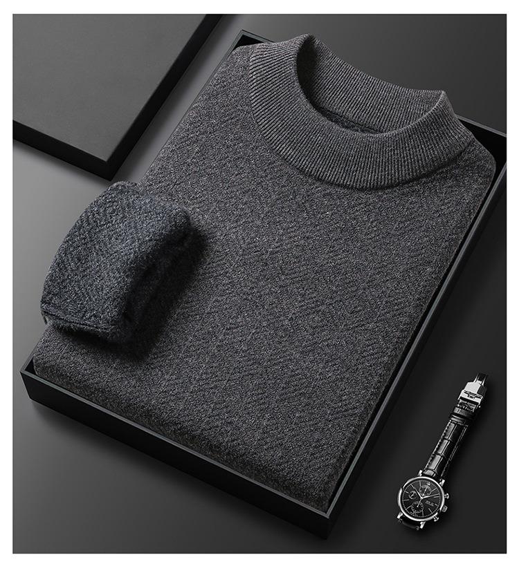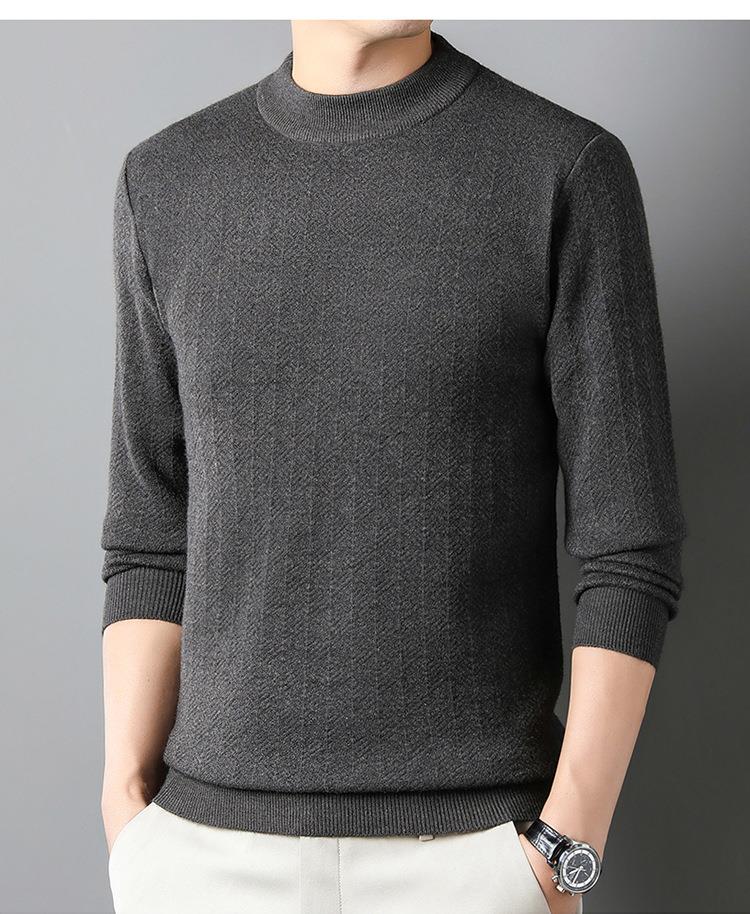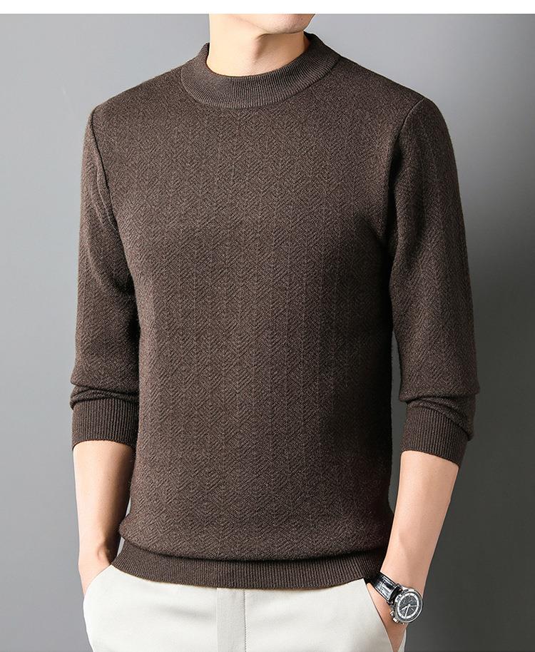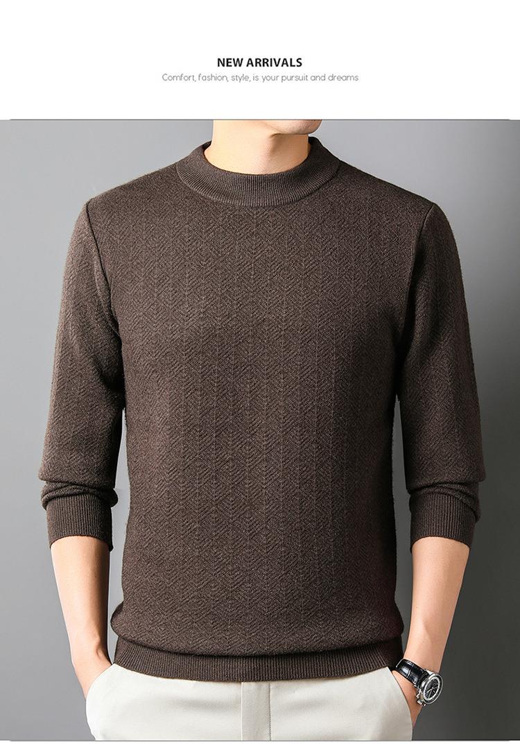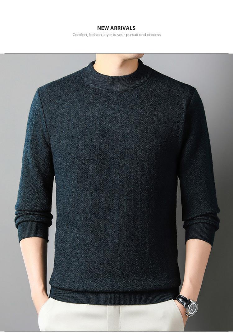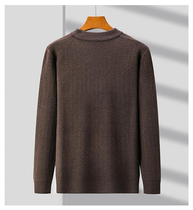 含羊毛加厚男士毛衣冬季新款提花圆领简约百搭保暖打底纯色羊毛衫