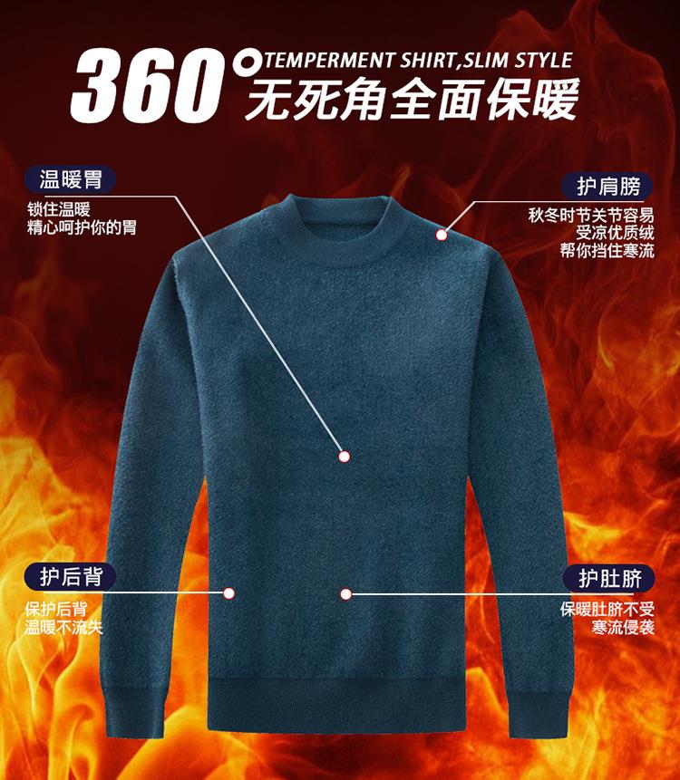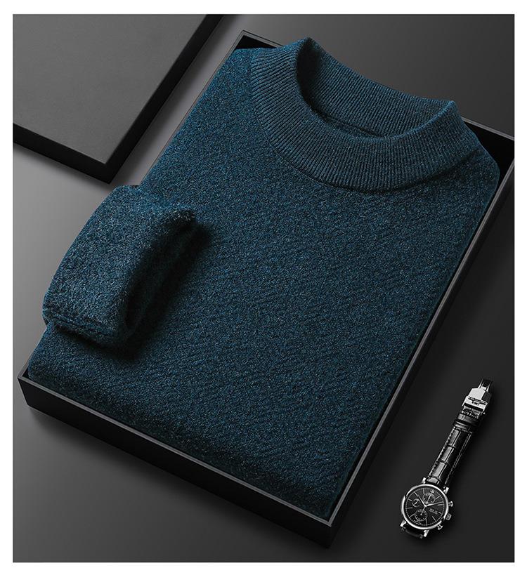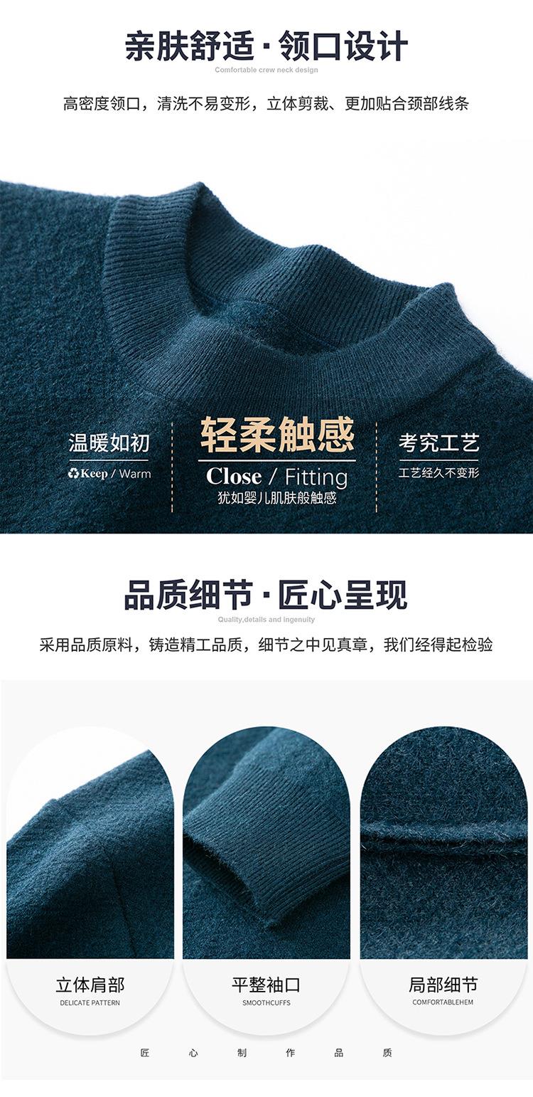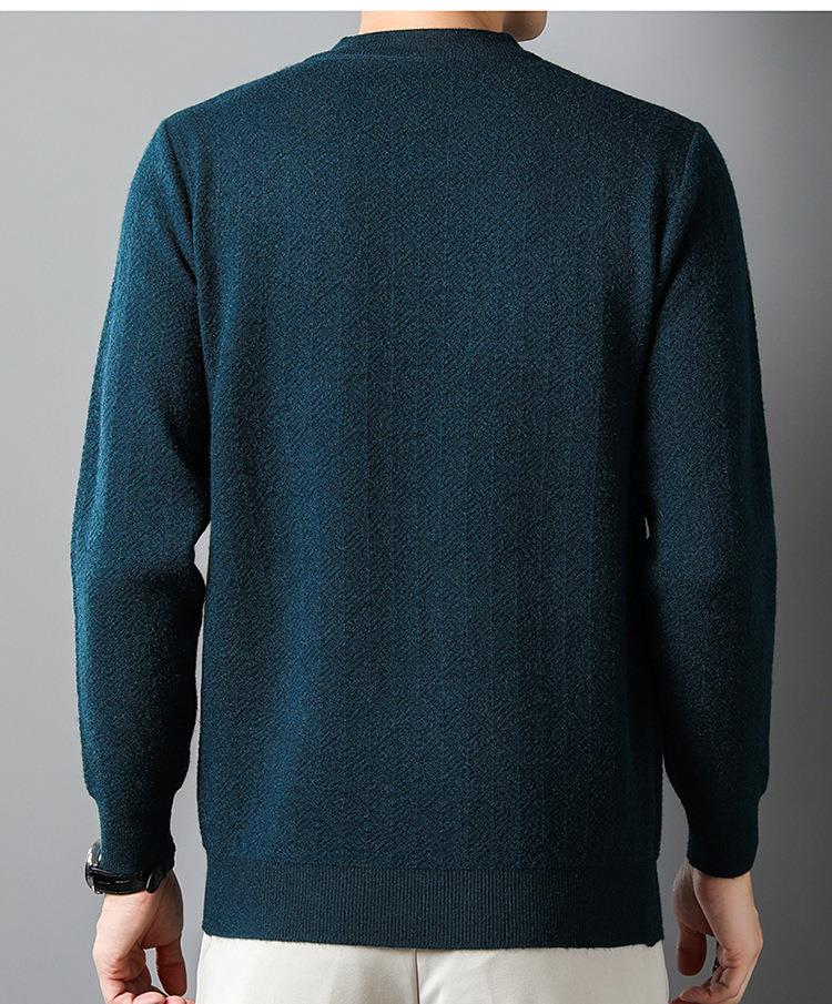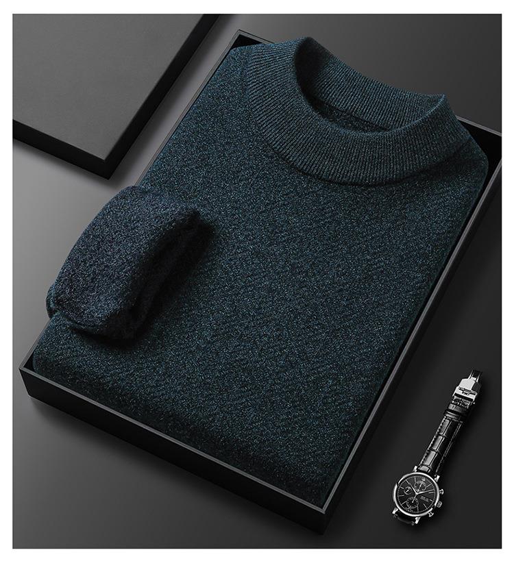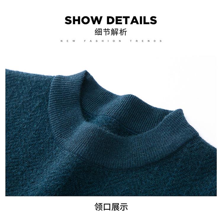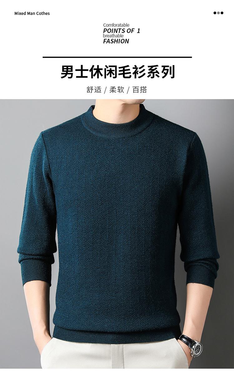 含羊毛加厚男士毛衣冬季新款提花圆领简约百搭保暖打底纯色羊毛衫