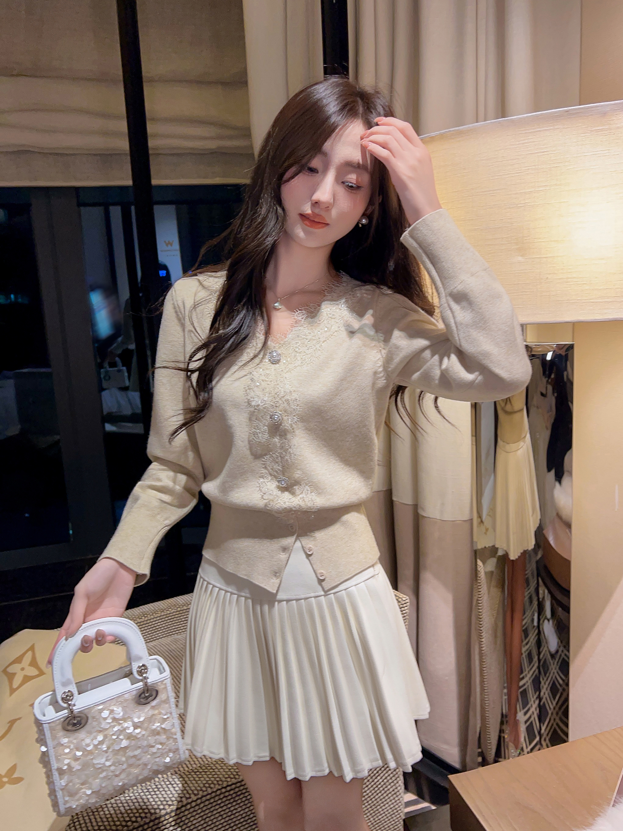 张心子【miu系千金】miu系减龄少女镂空手袖亮片开衫上衣 U2602021