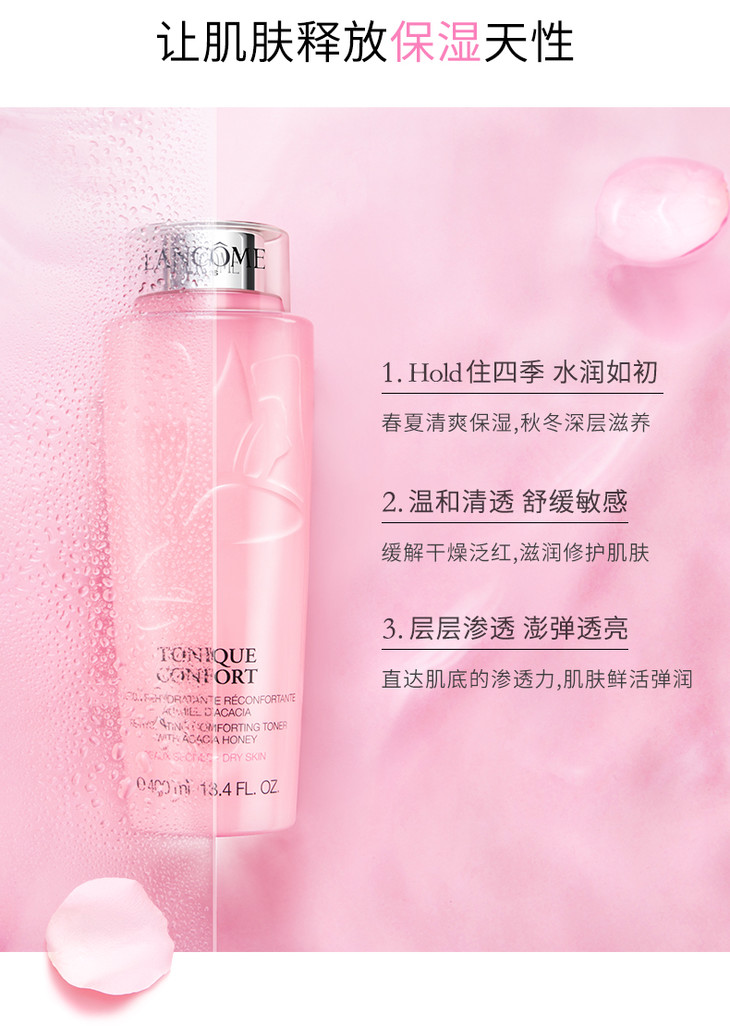 兰蔻粉水 Lancome 清滢柔肤 水玫瑰精华 化妆水舒缓爽肤大粉水保湿